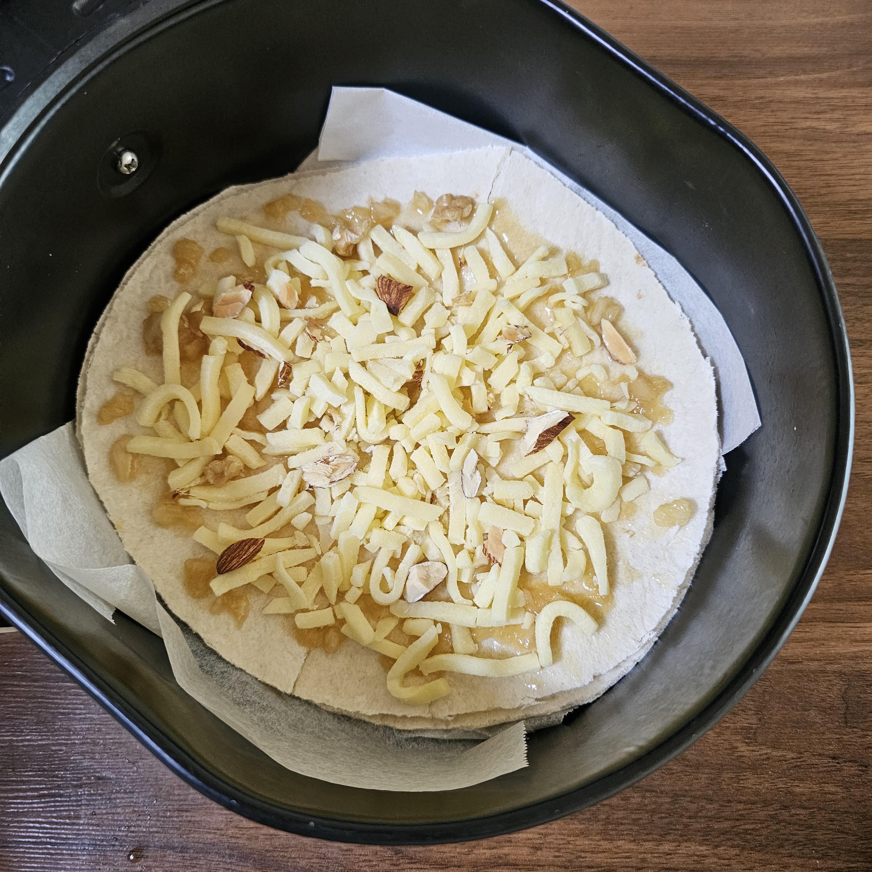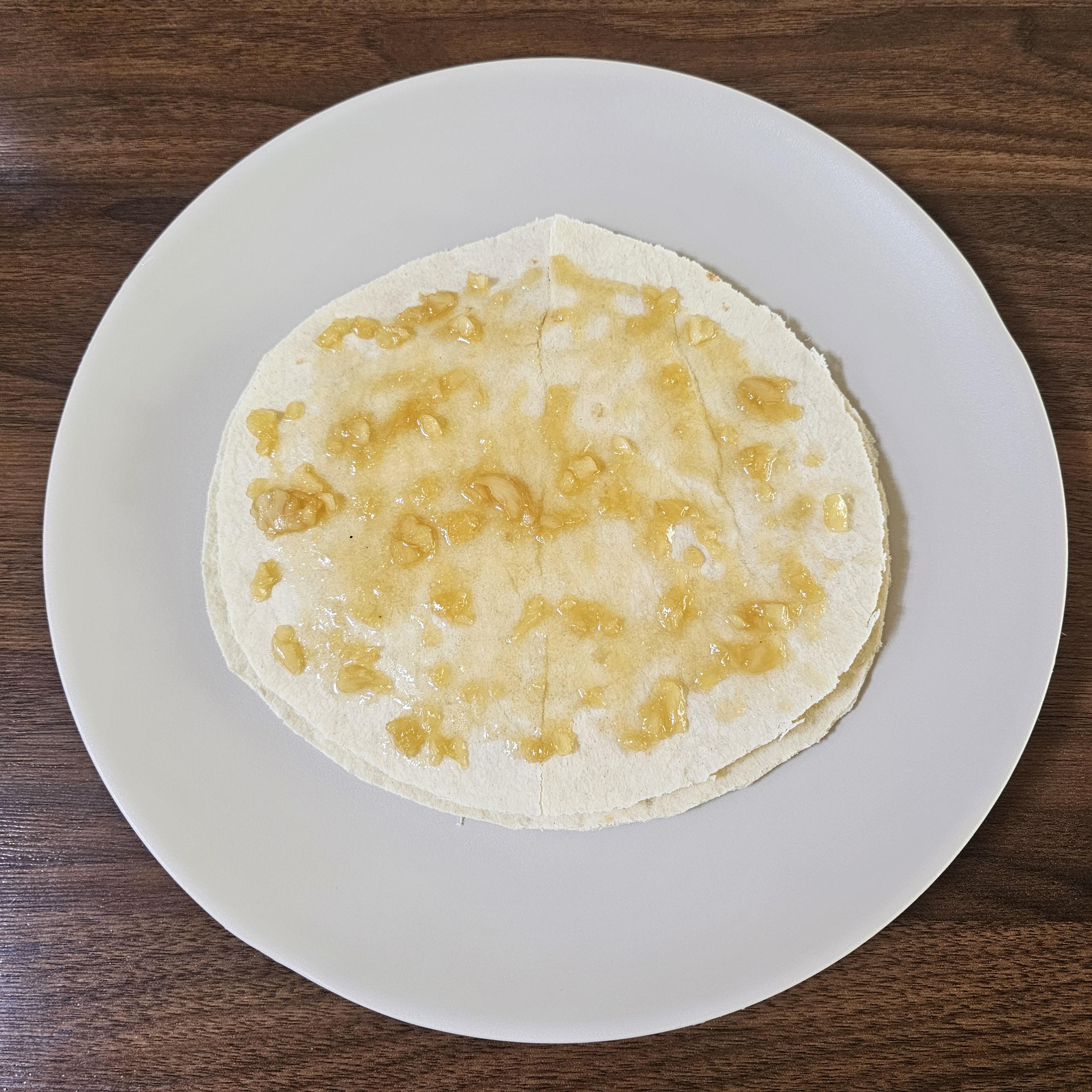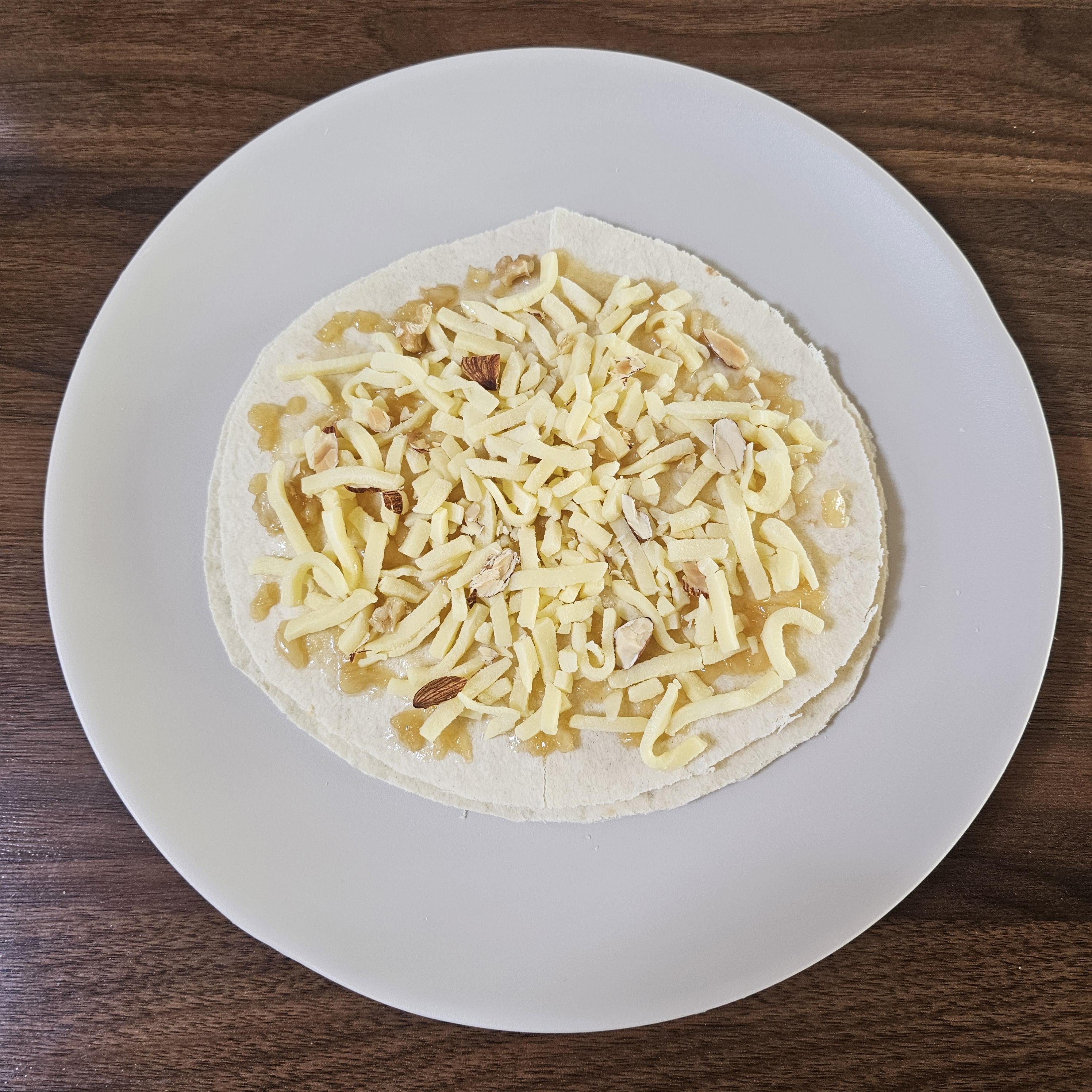 또띠아, 피자치즈, 견과류, 꿀, 올리브 오일, 다진마늘