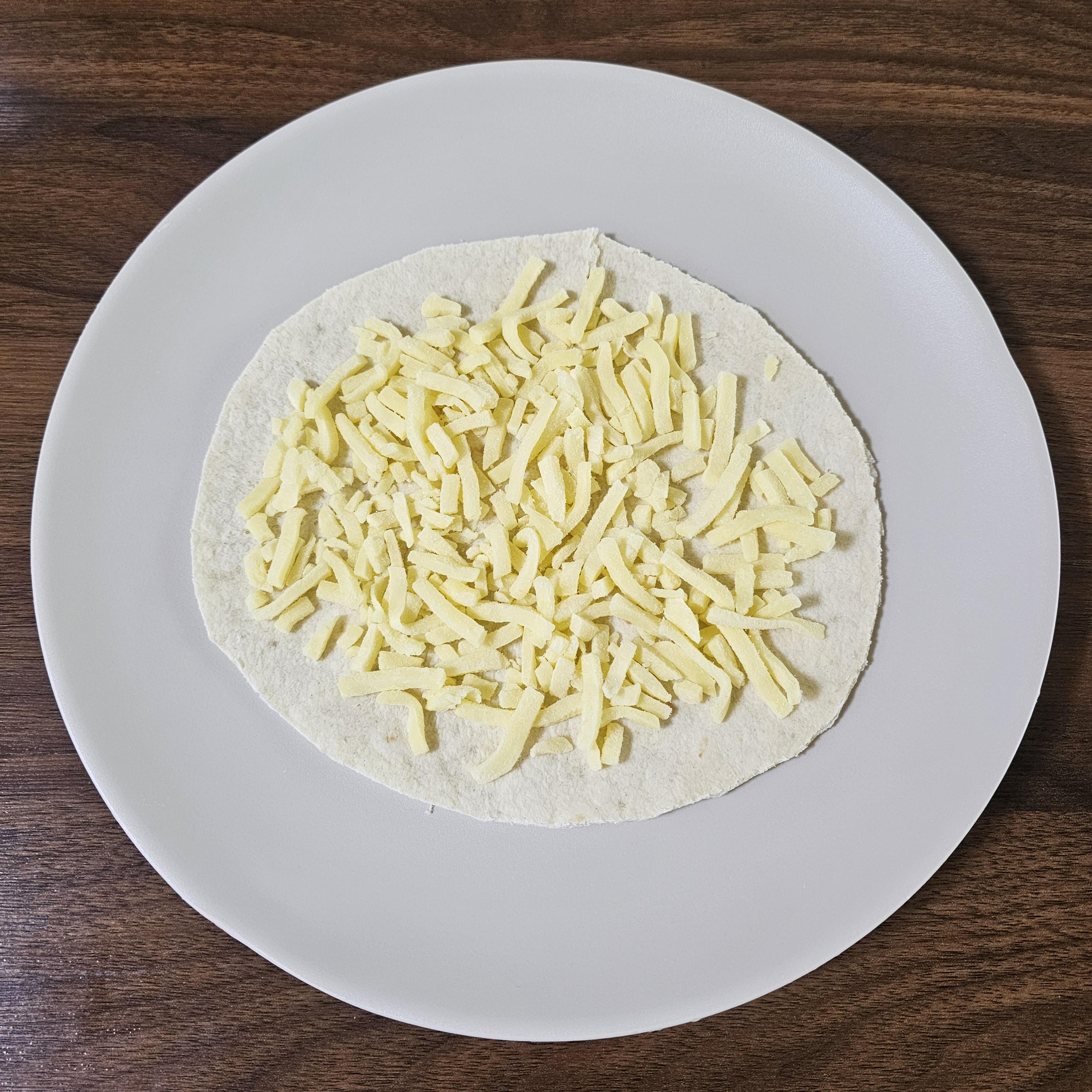 또띠아 위에 피자치즈를 듬뿍 올려줍니다.