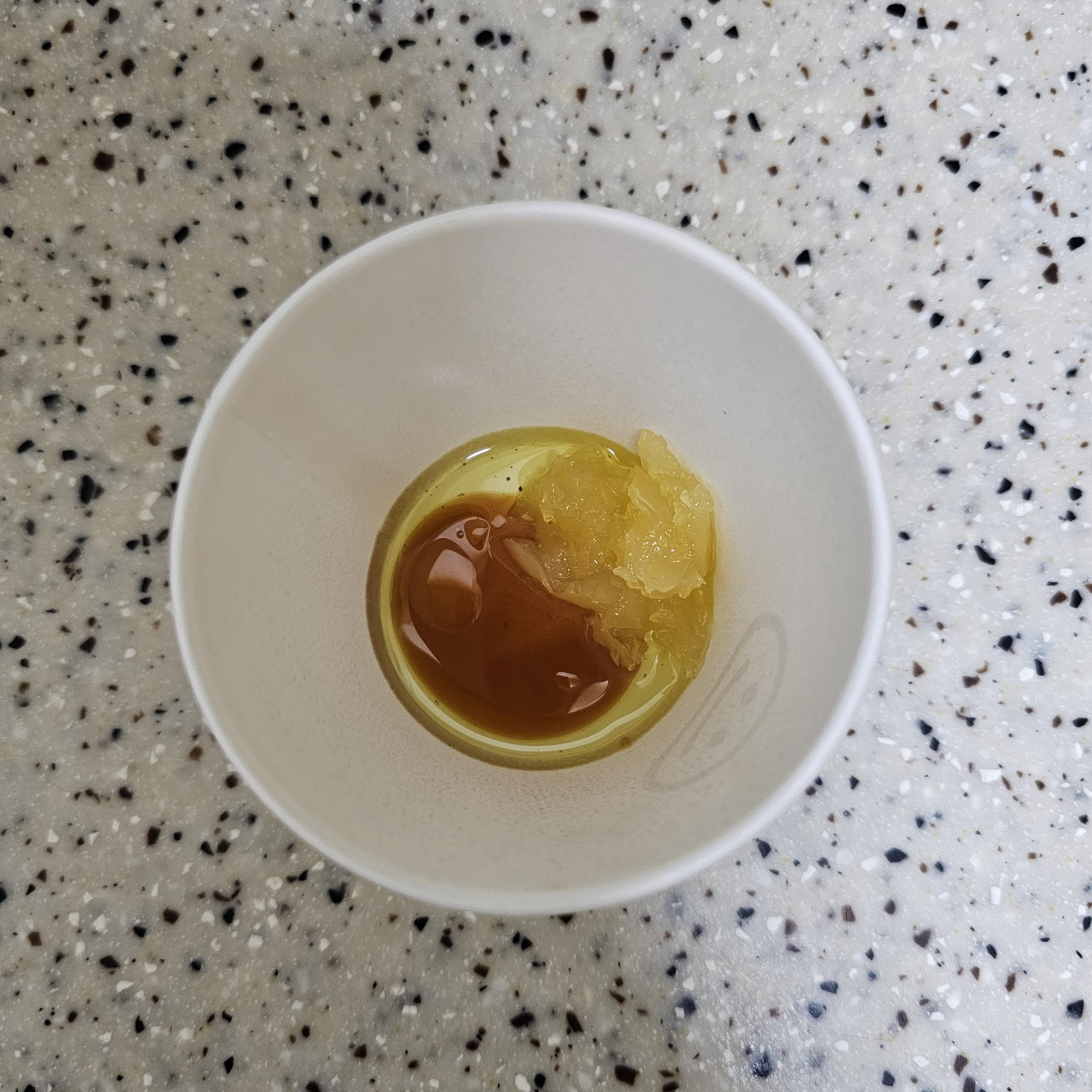 올리브오일 2, 꿀 1, 다진마늘 1을 넣어 잘 섞어줍니다.