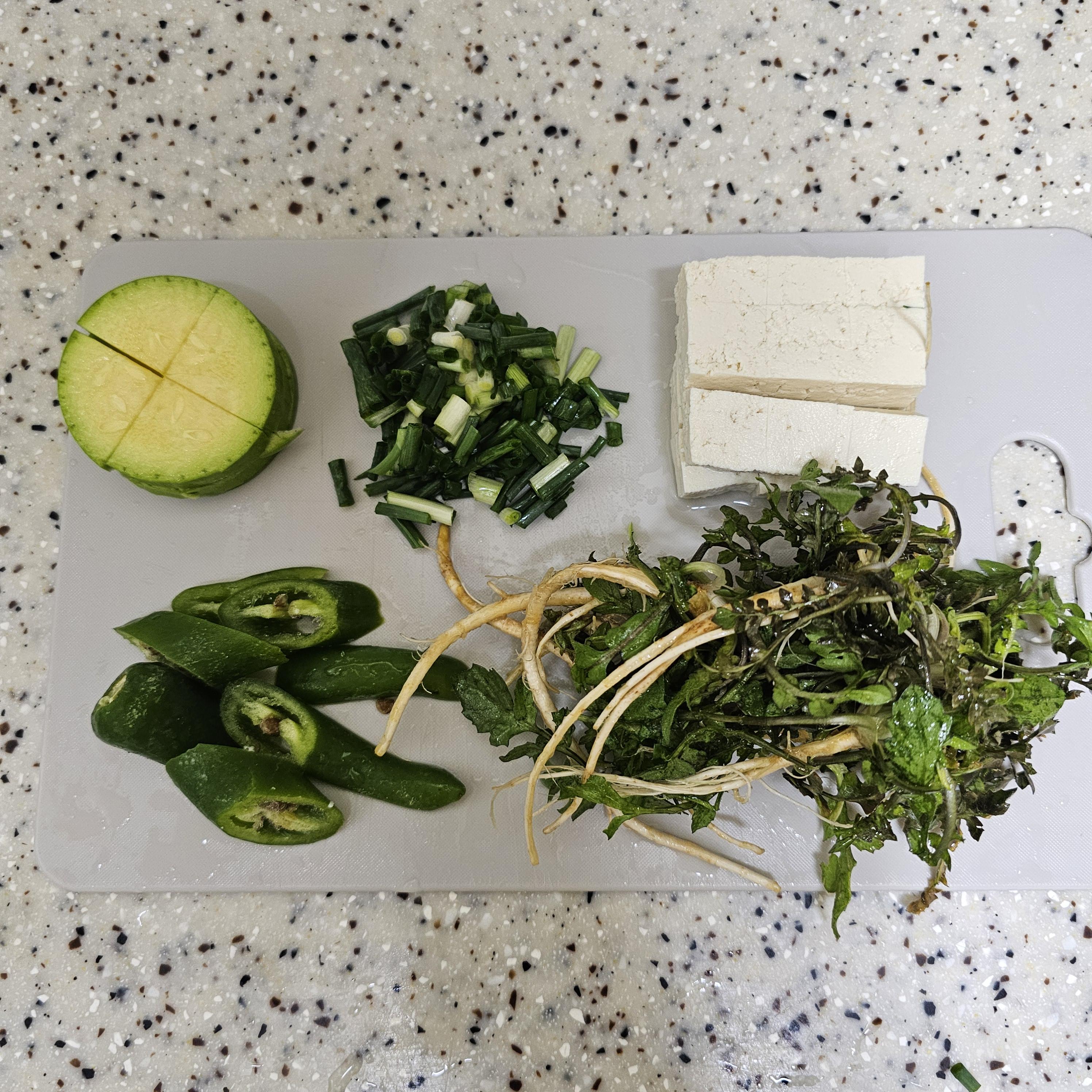 냉이, 두부, 호박, 쪽파, 고추, 된장, 파, 멸치가루