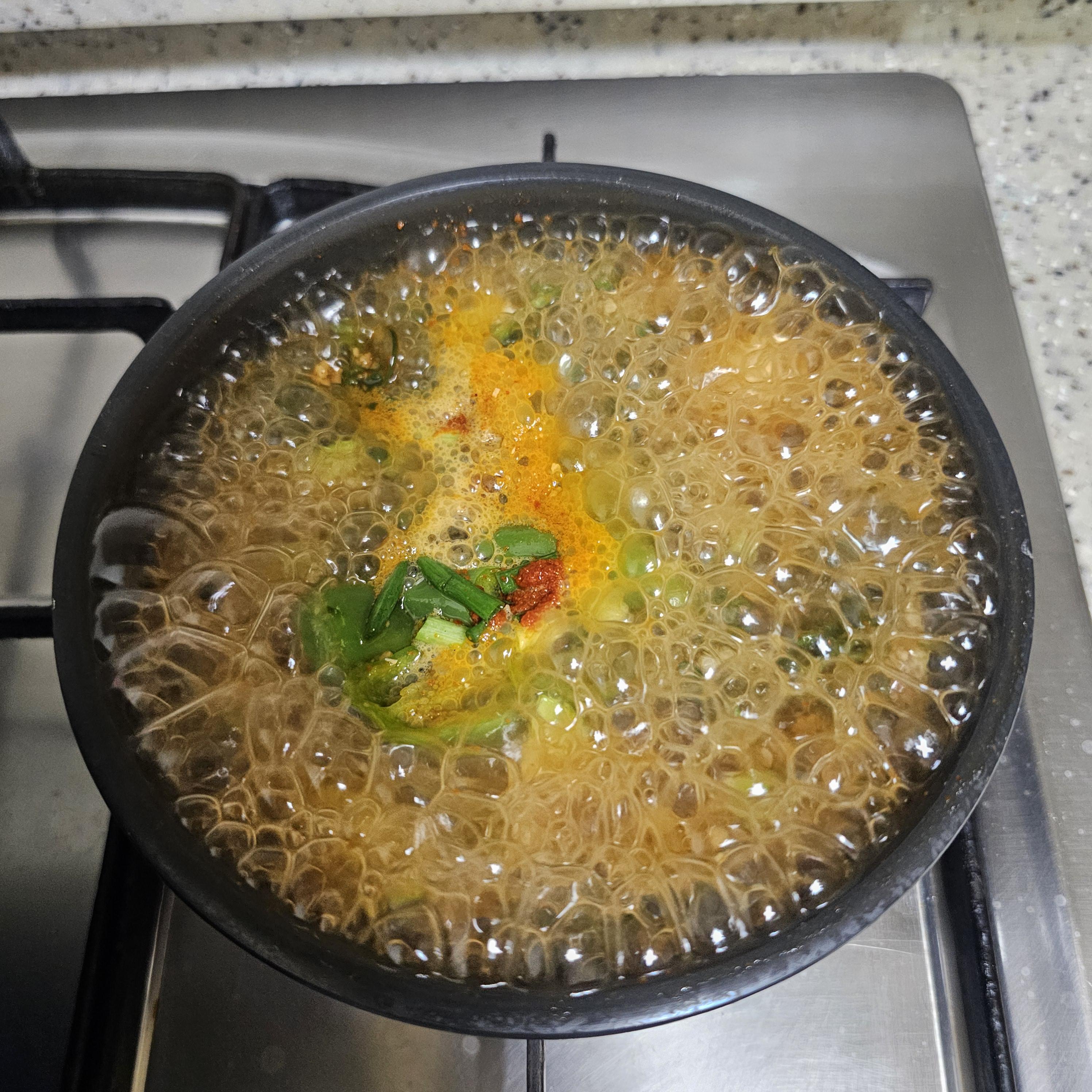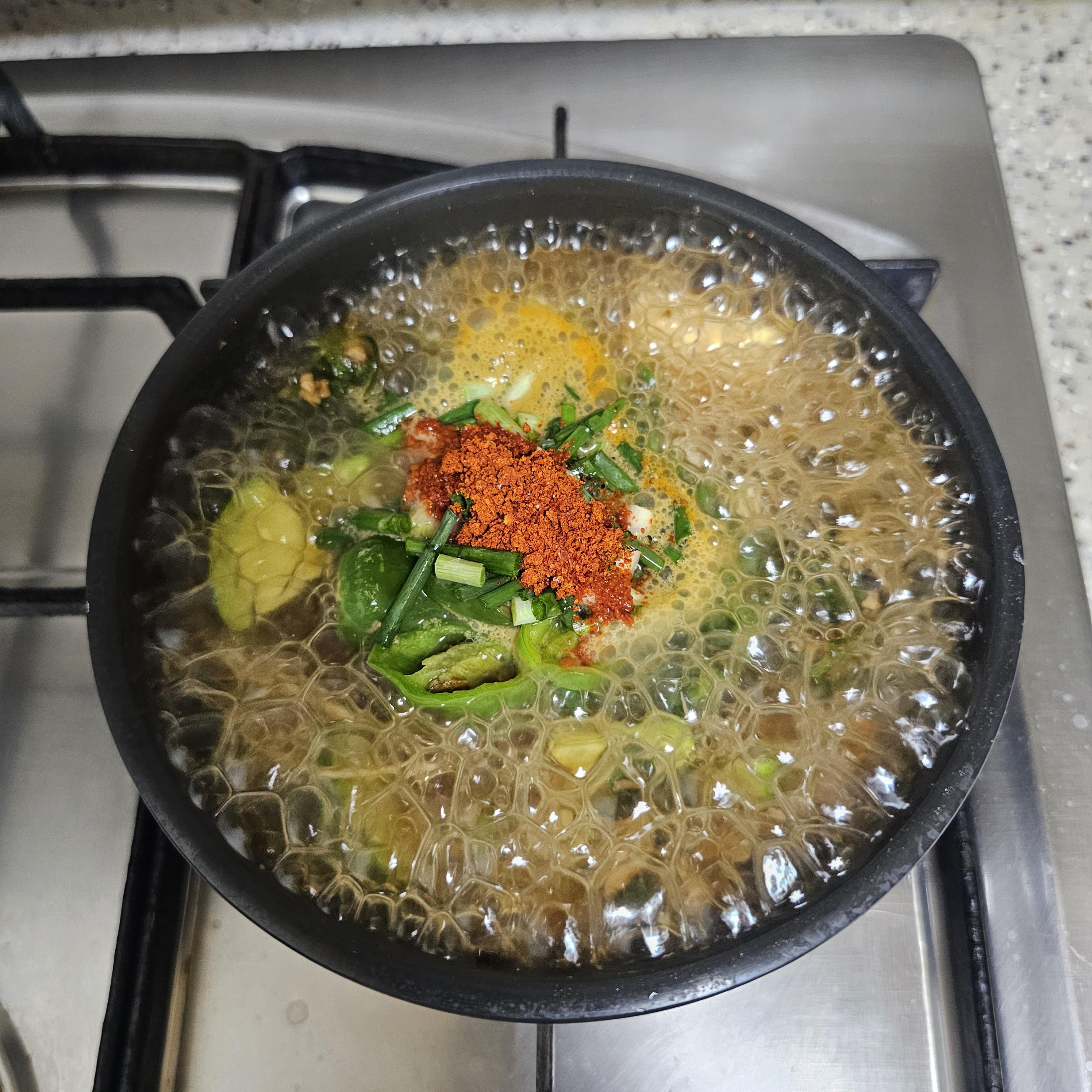 먼저 물이 끓기 전에 멸치가루나 코인육수를 넣어 끓여줍니다.