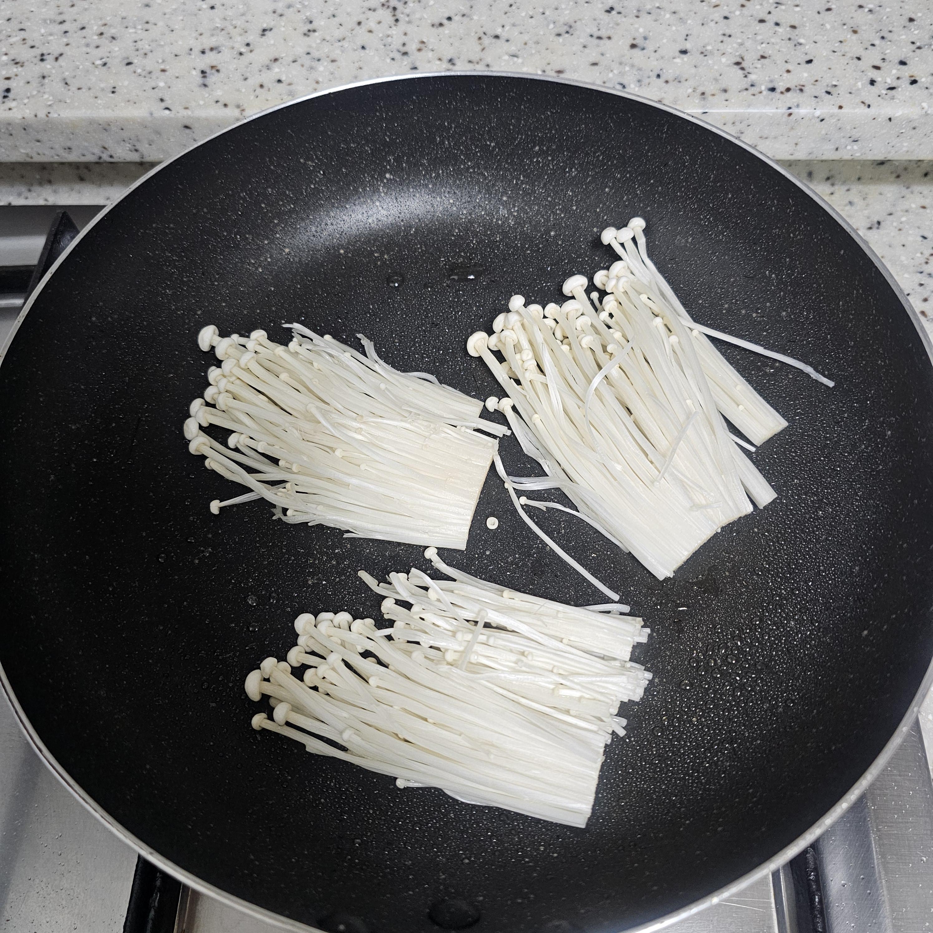 가볍게 세척한 팽이버섯을 얇게 썰어줍니다.