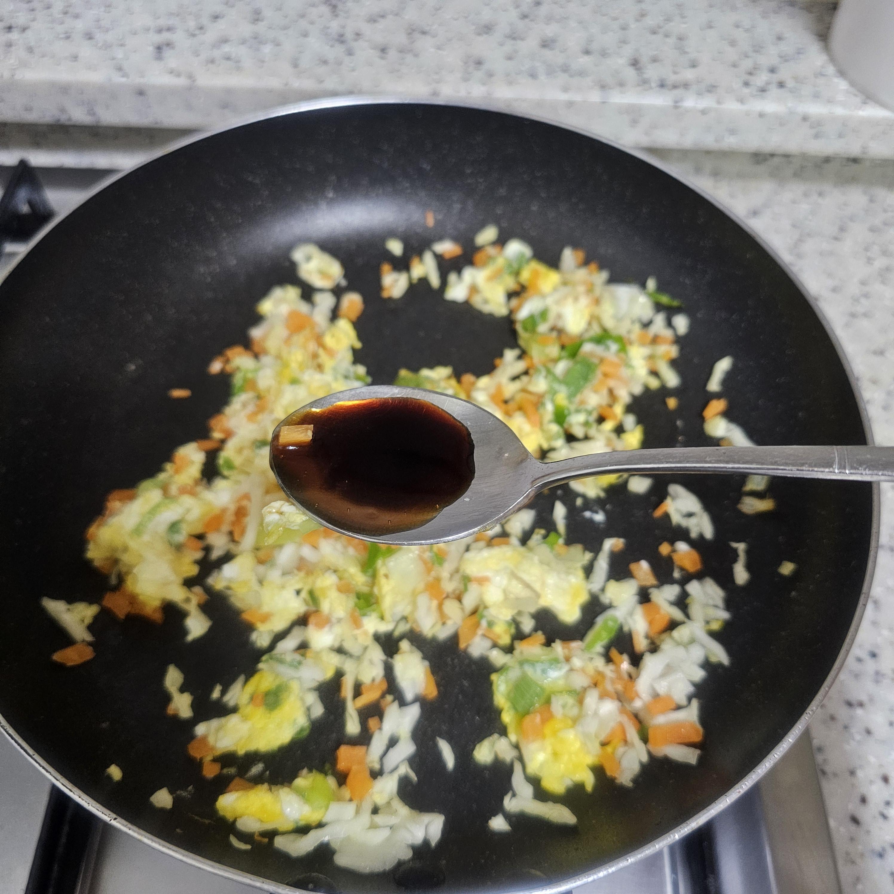 계란이 익기 전에 미리 다져놓은 양배추와 당근을 넣어줍니다.