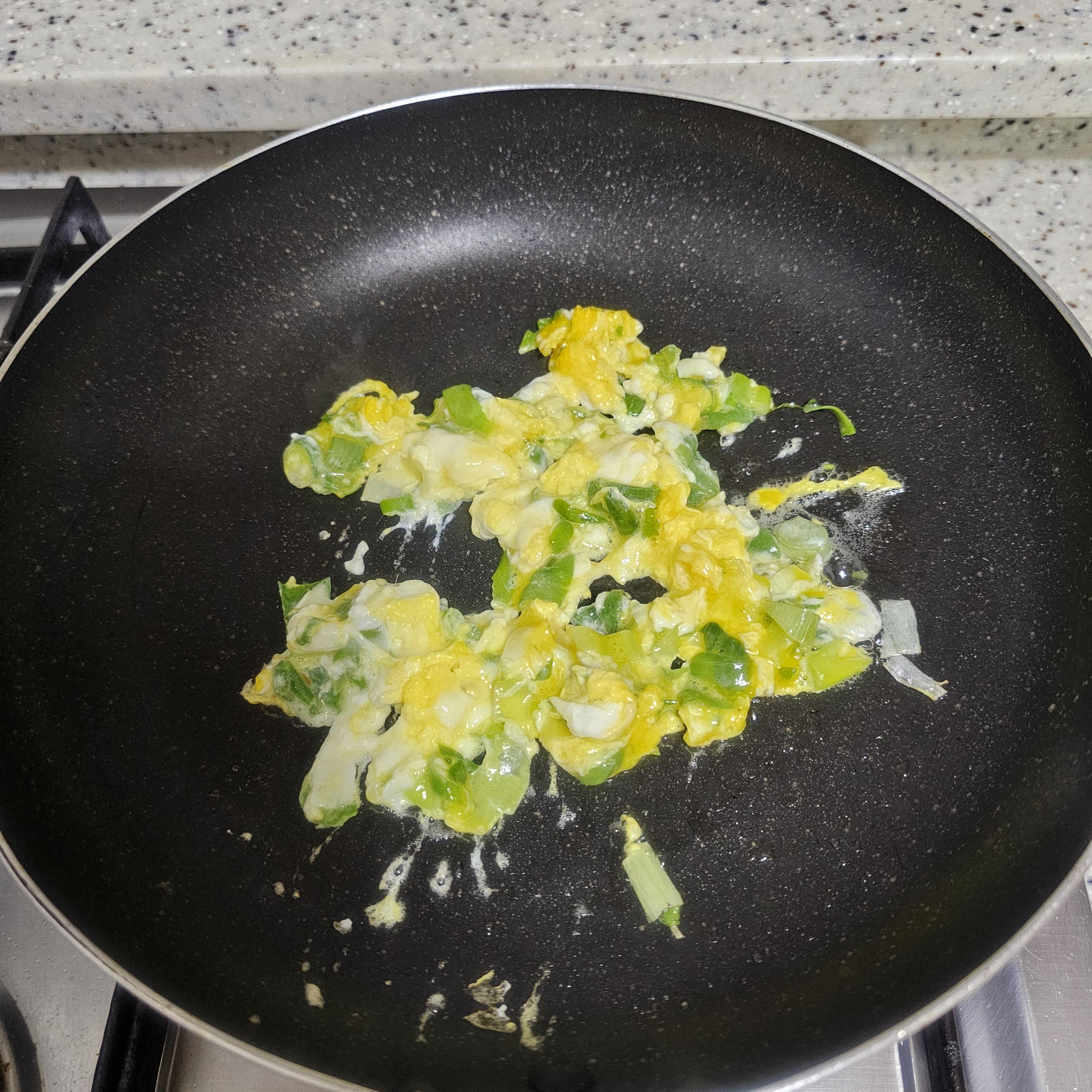 프라이팬에 기름을 두른 뒤 대파 기름을 내주세요.