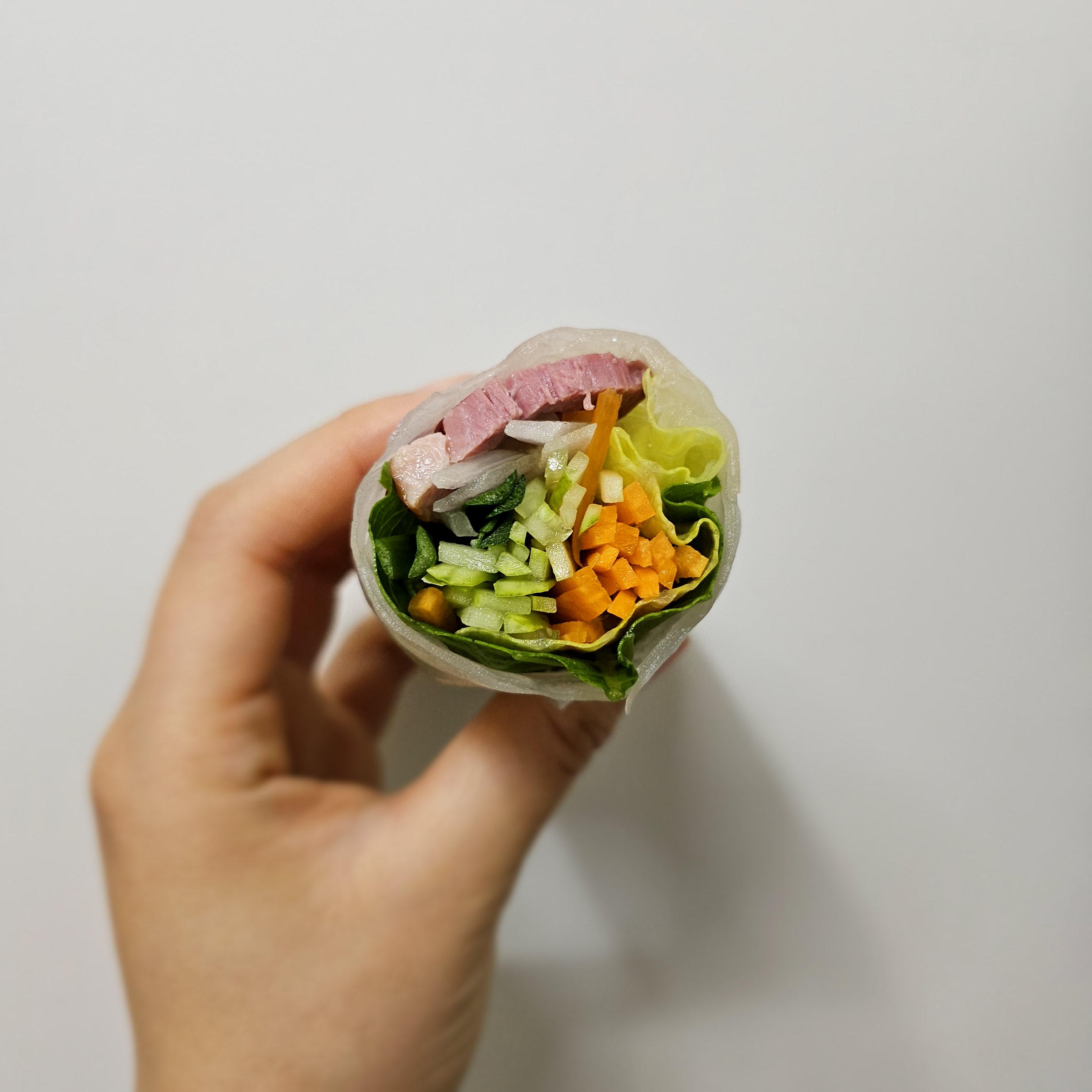 라이스페이퍼가 잘 늘어나지만 얇아서 터질 수 있으니 조심조심 말아주세요!