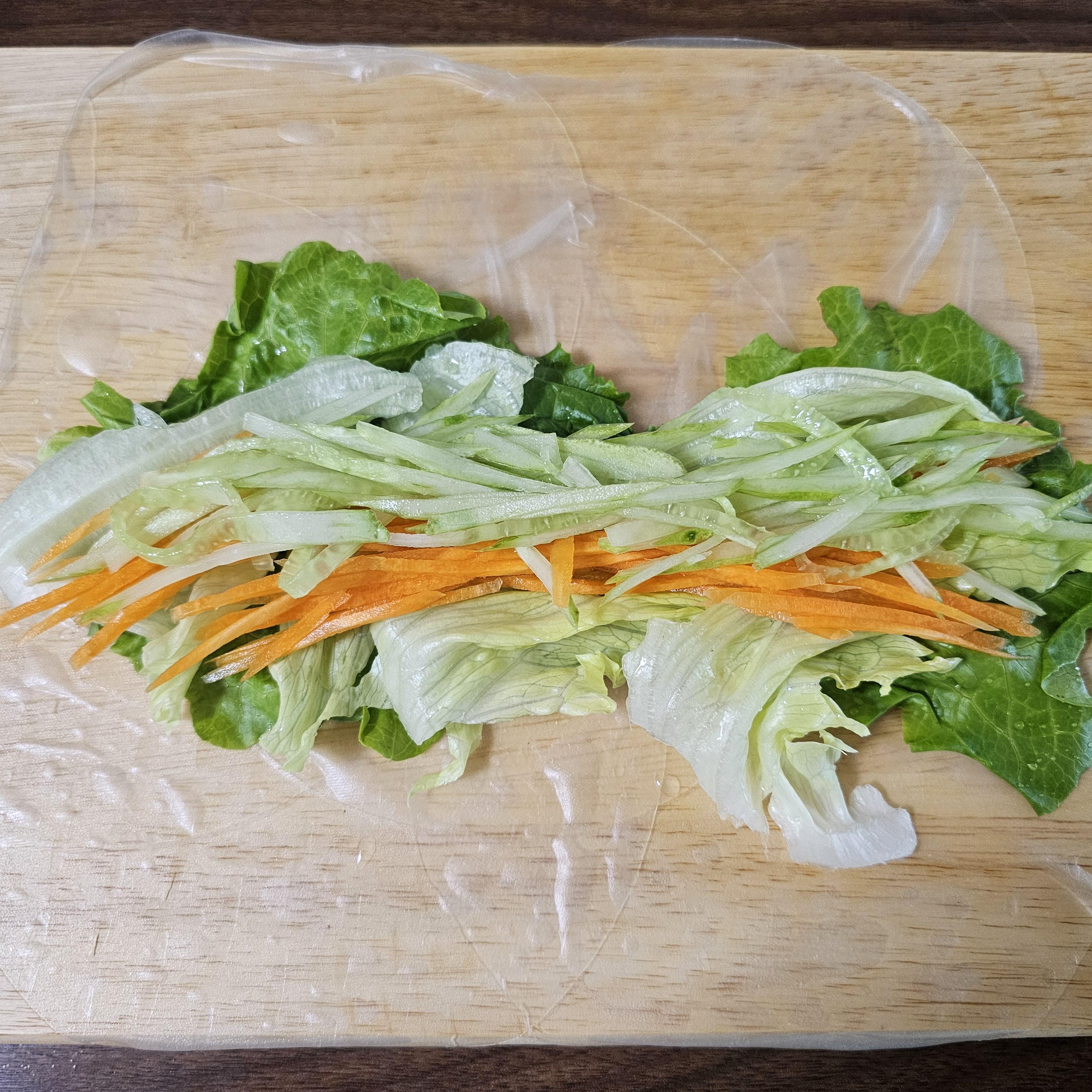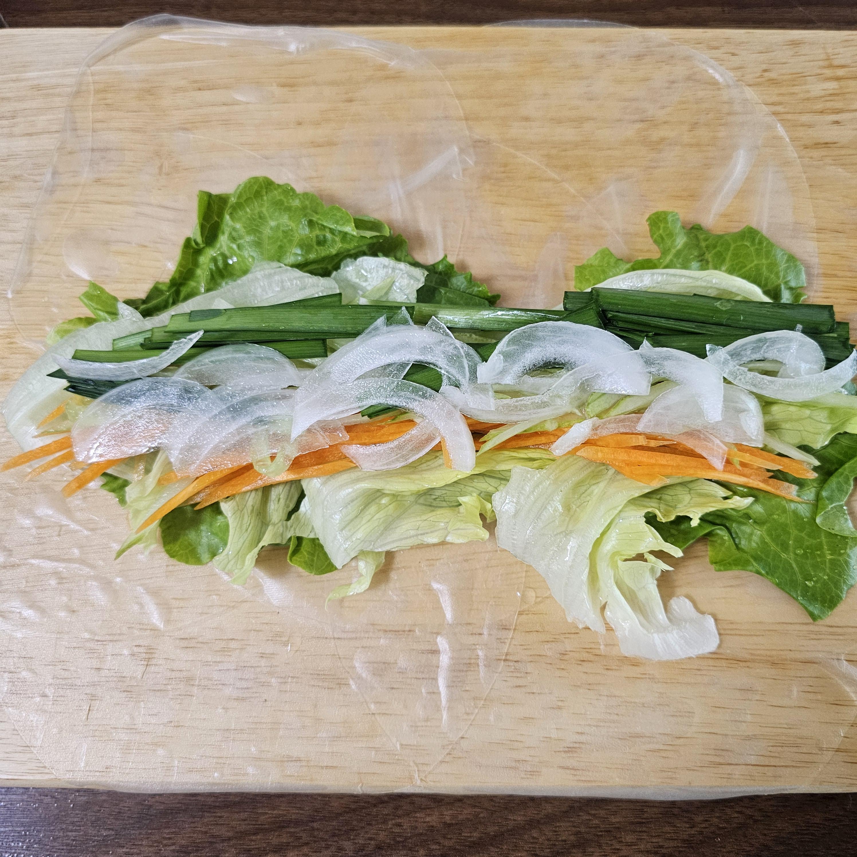 라이스페이퍼, 오리고기, 당근, 오이, 양파, 부추, 양상추, 상추