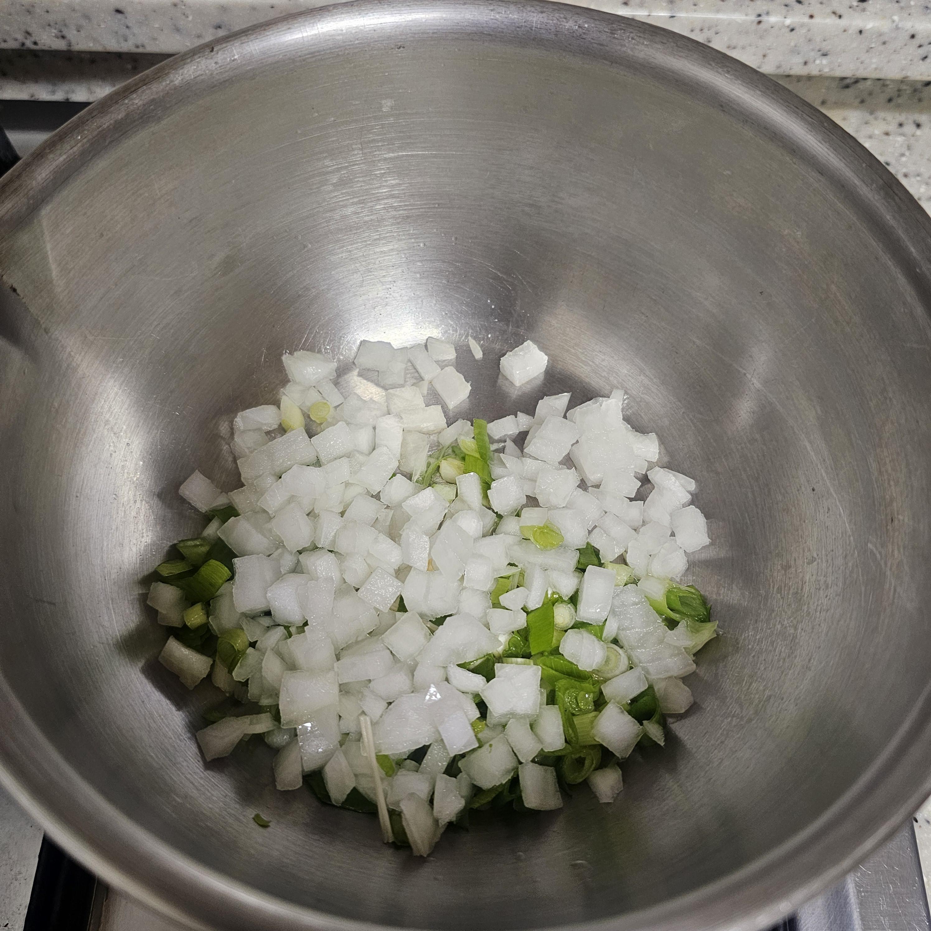 기름을 두르고 파와 양파를 넣고 같이 볶아줍니다.