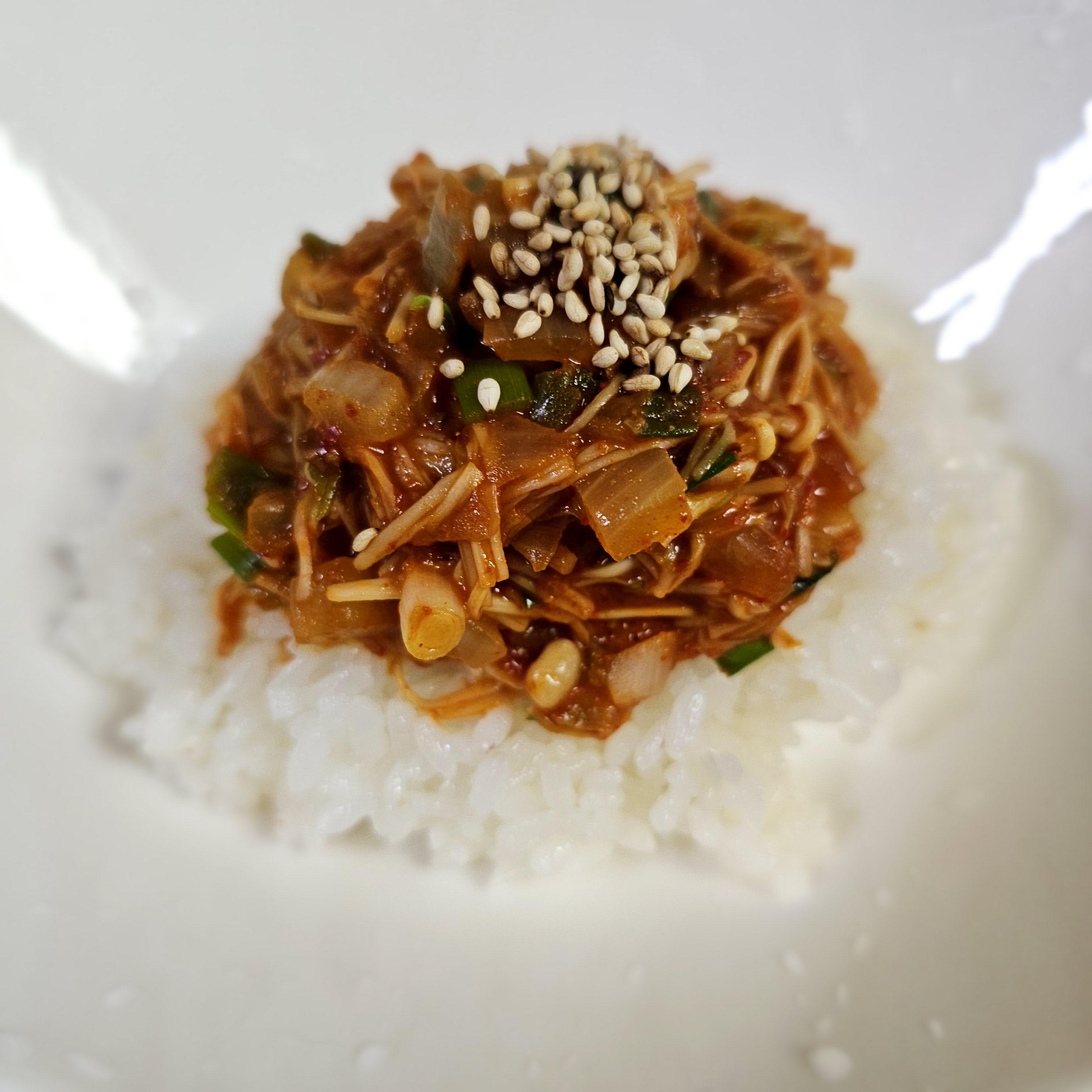 아삭아삭한 양파의 식감과 팽이버섯 식감으로 정말 맛있는 덮밥을 드실 수 있습니다~