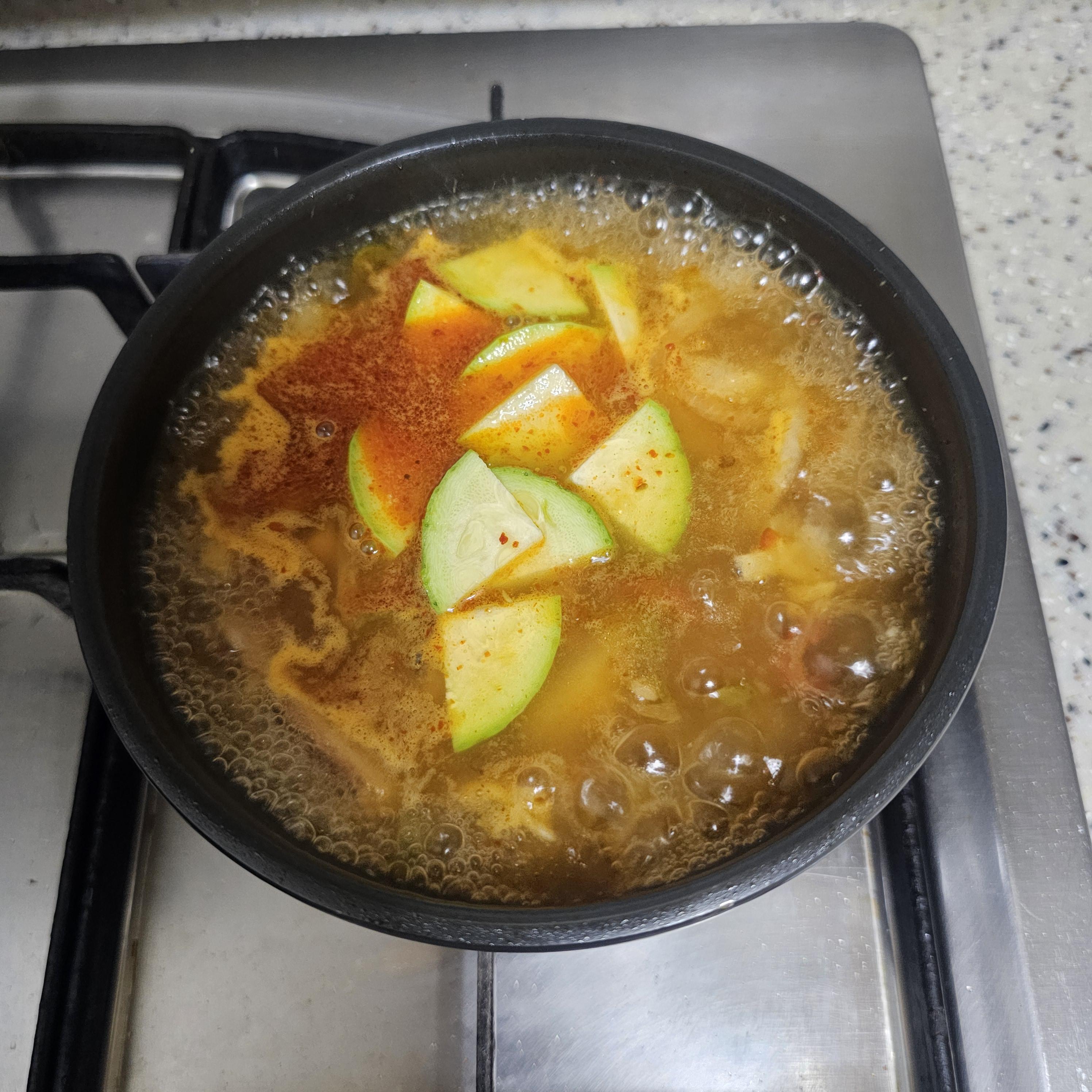 육수가 없으면 물과 코인육수를 넣어줍니다.