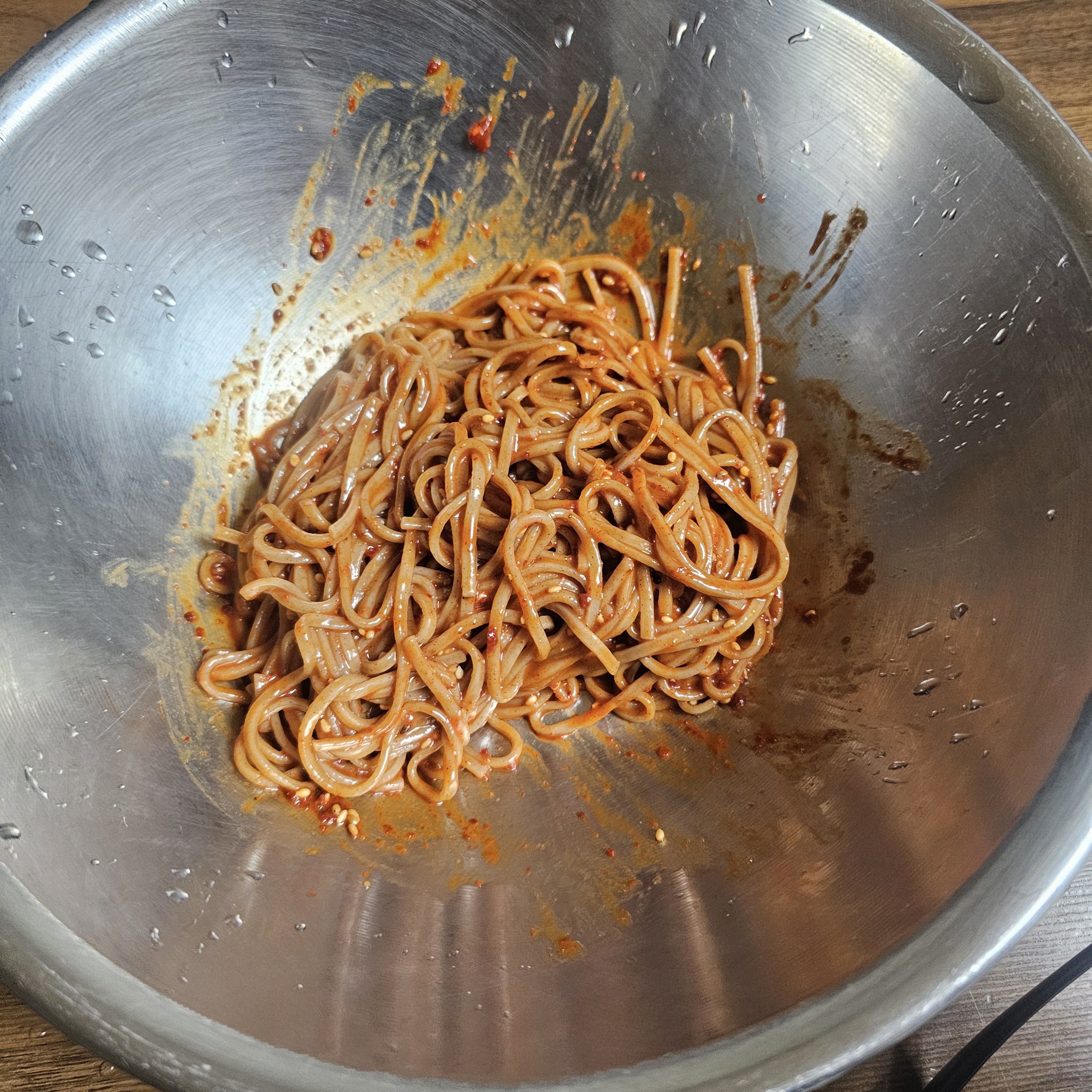 메밀면이라 소화도 잘 되고 매콤한 비빔면을 참치로 잡아줘 고소한 맛으로 먹을 수 있어요!