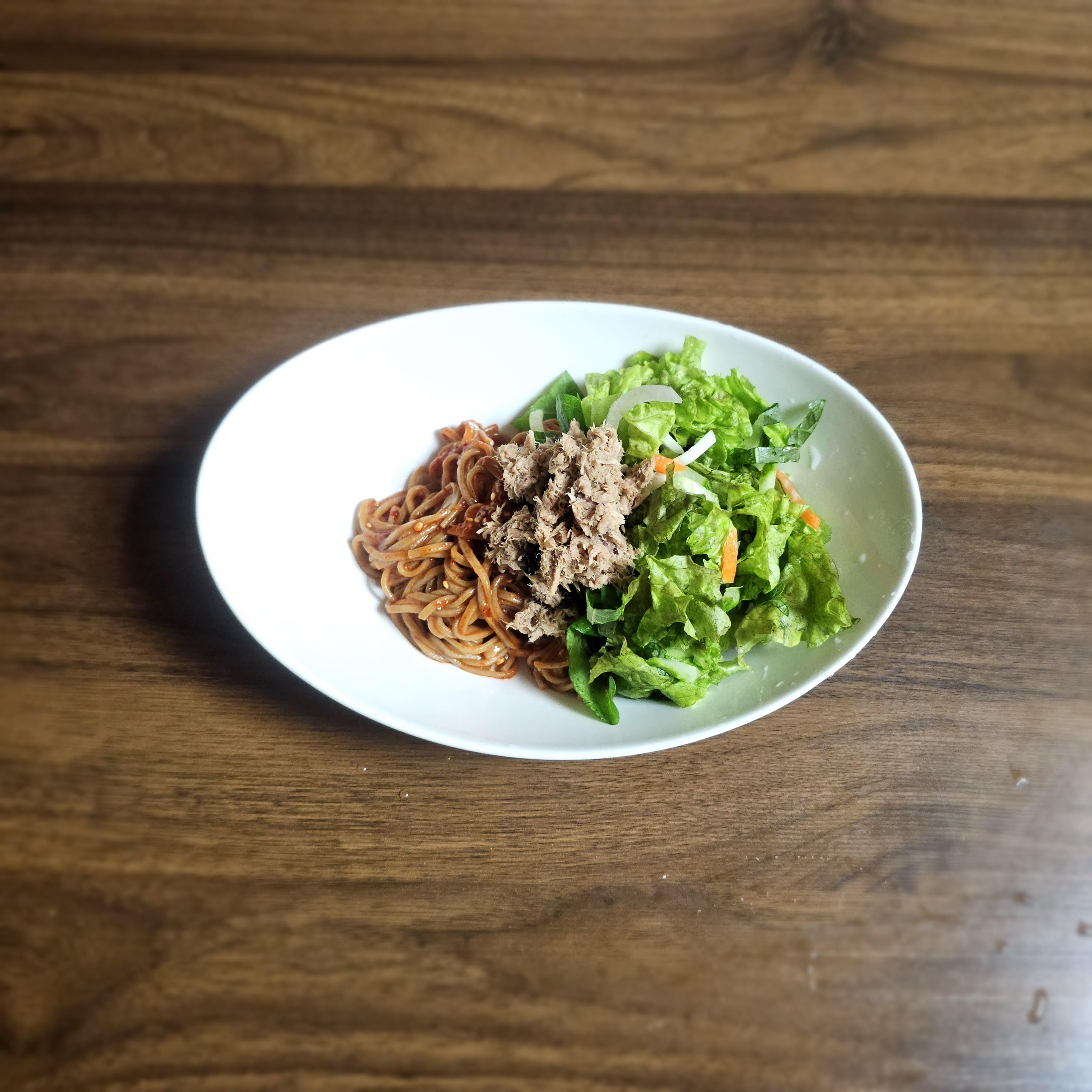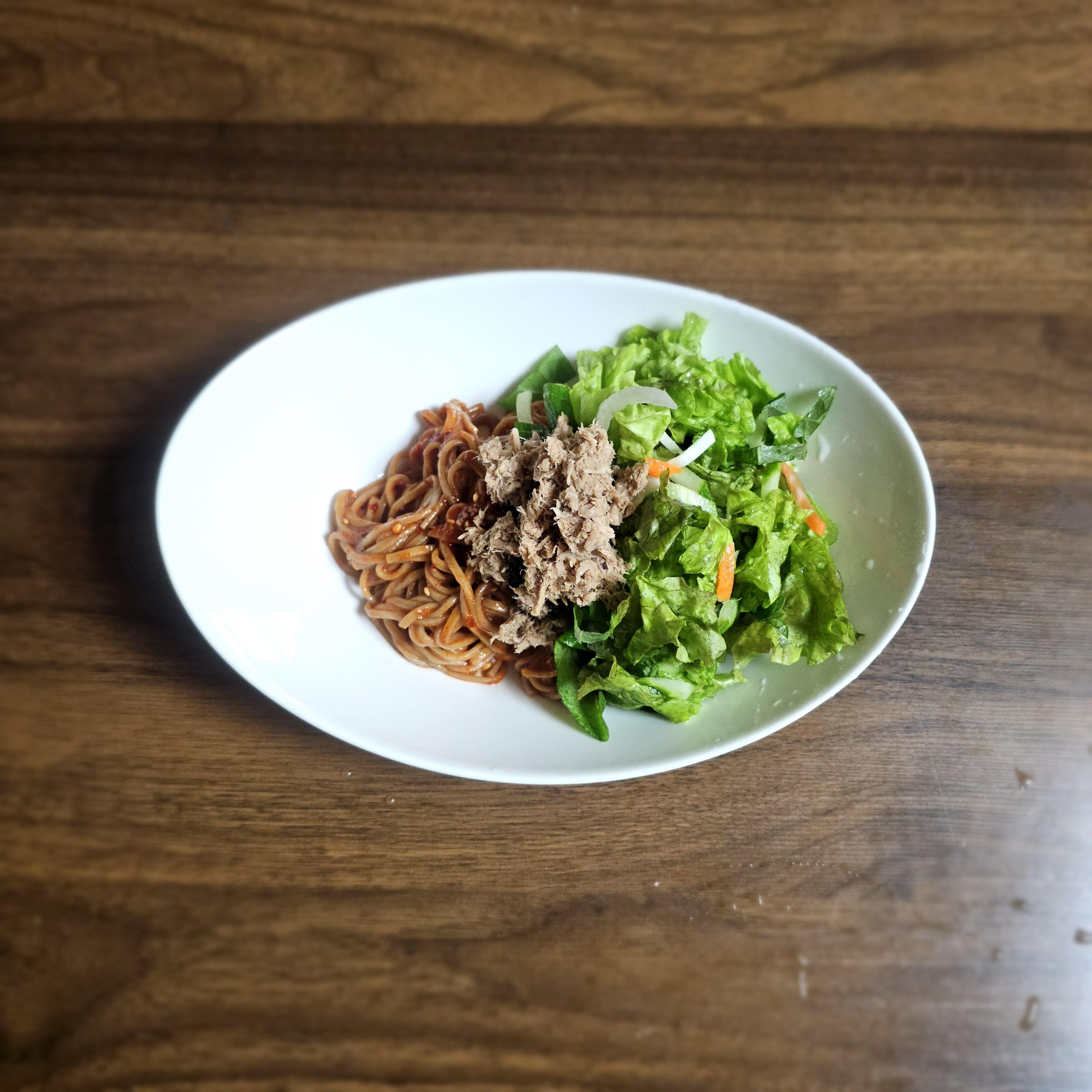 집에 참치와 야채가 있어 건강한 비빔 국수를 만들어 봤어요~