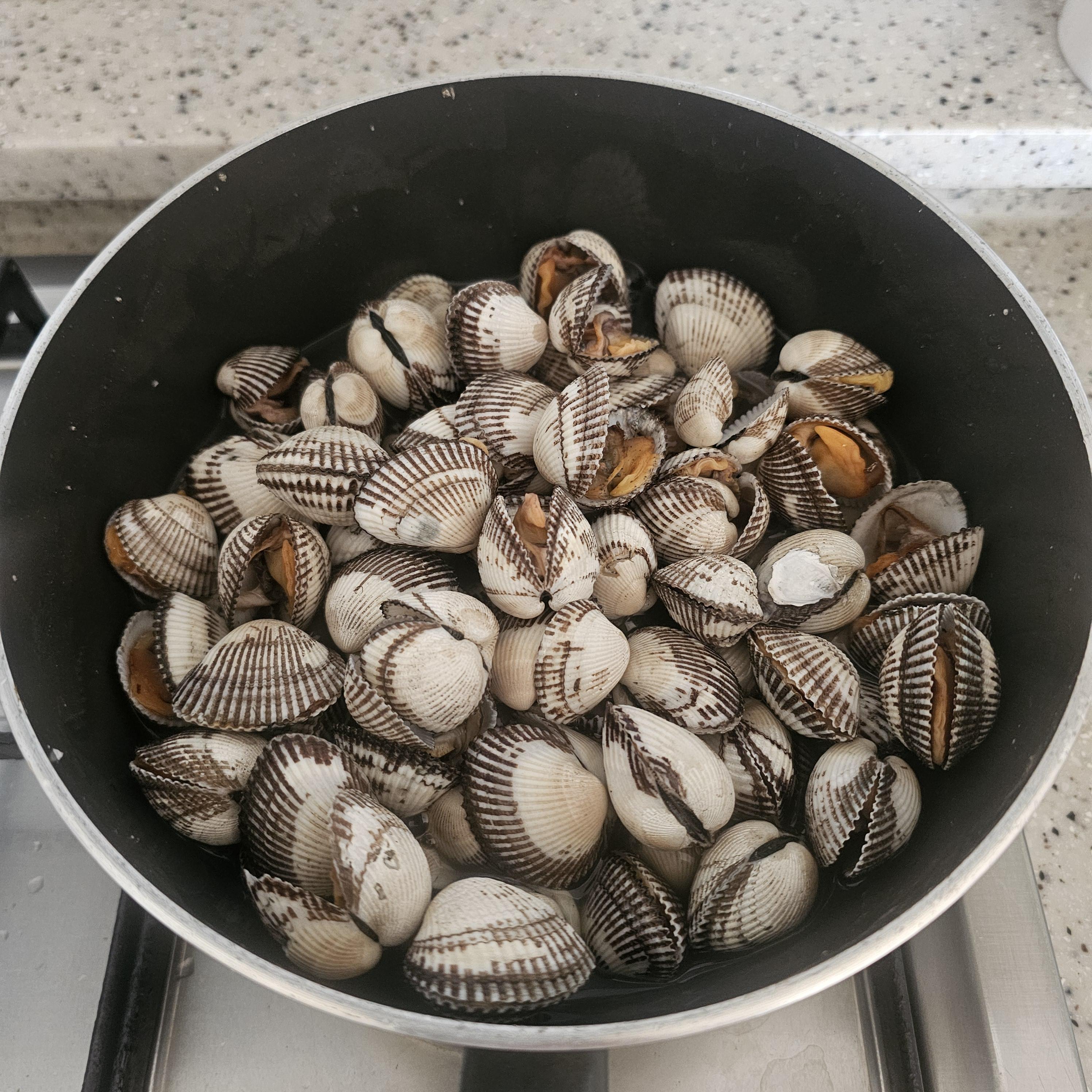 물을 넣어준 뒤 꼬막을 삶아주세요.