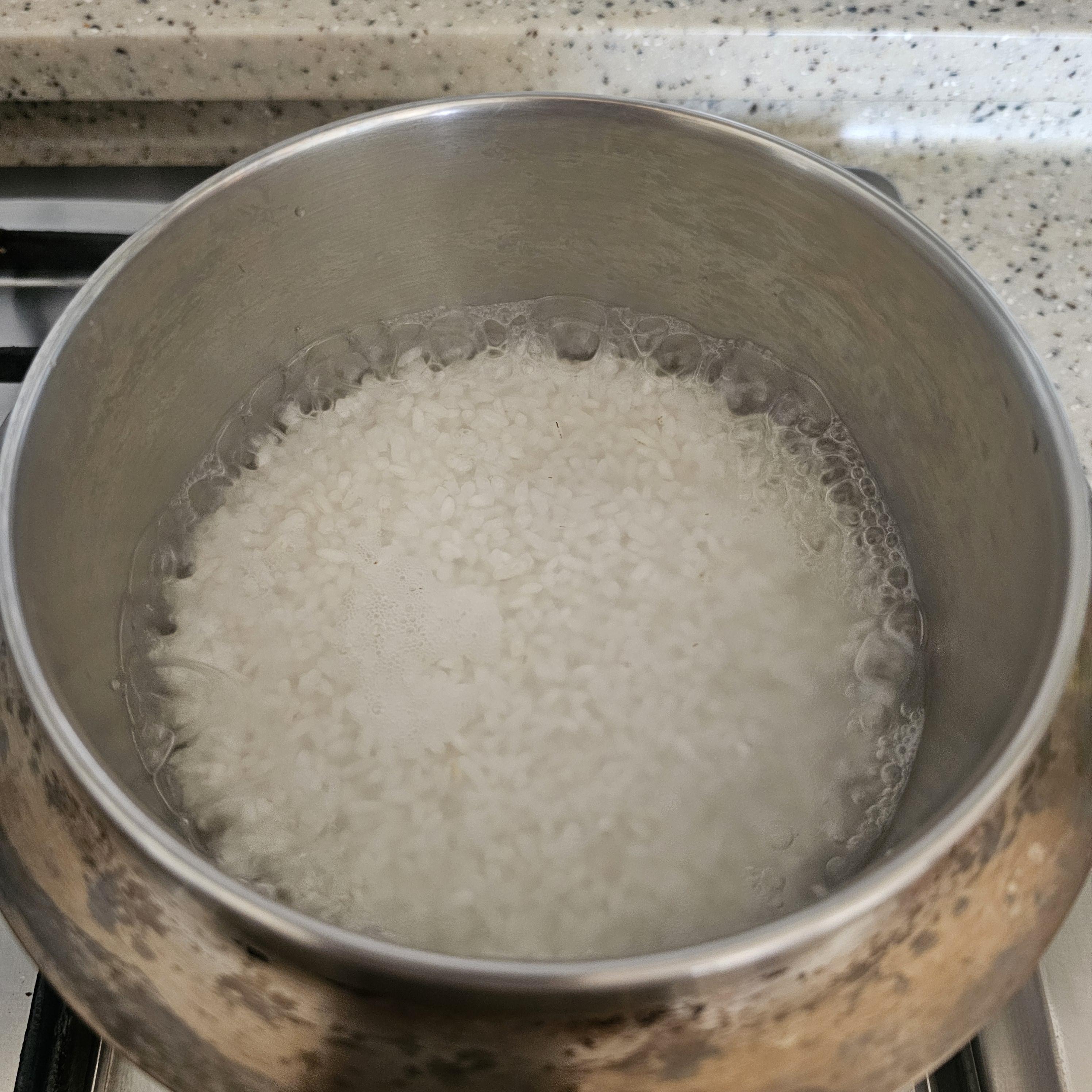 쌀만 잠기게 자작하게 물 넣어주면 됩니다.