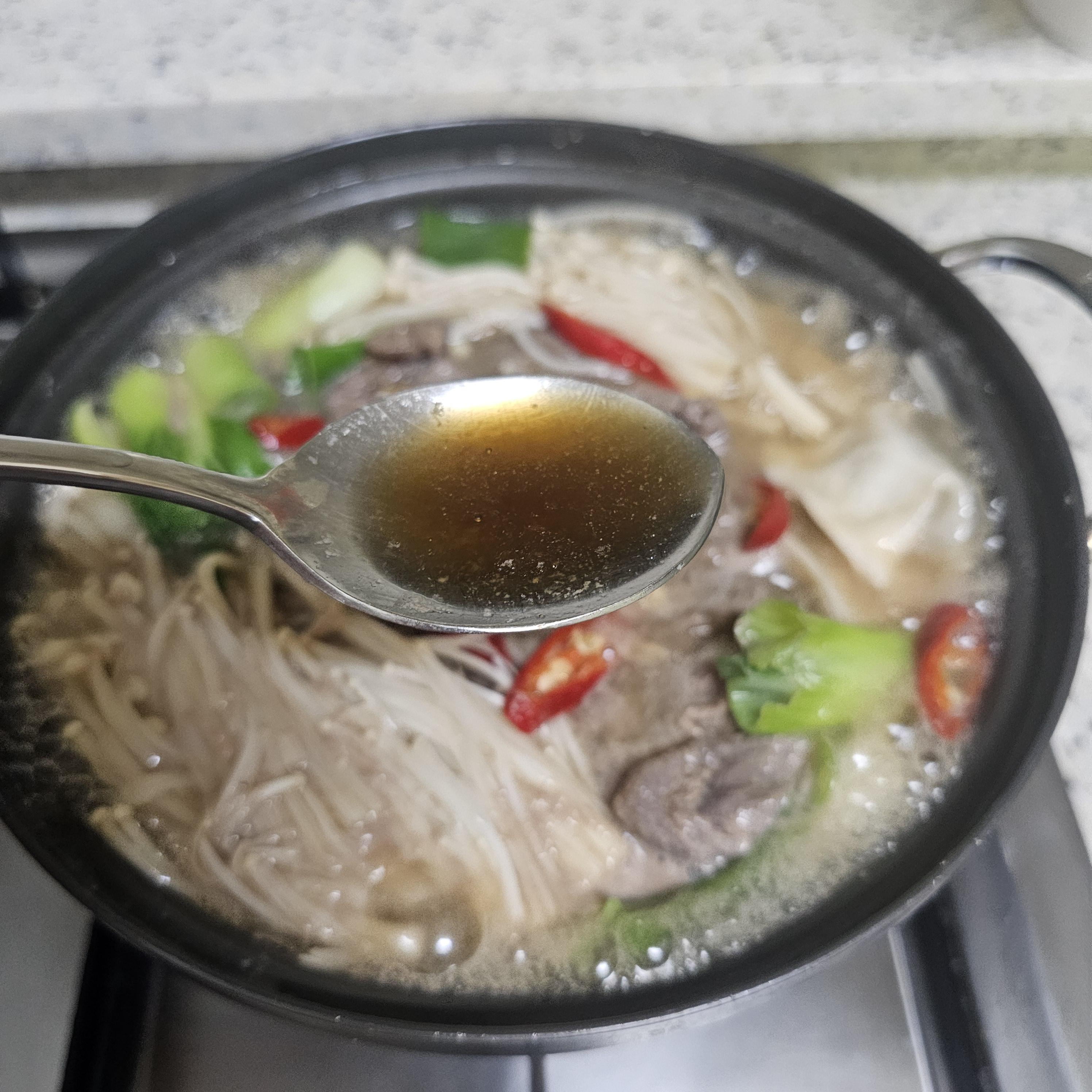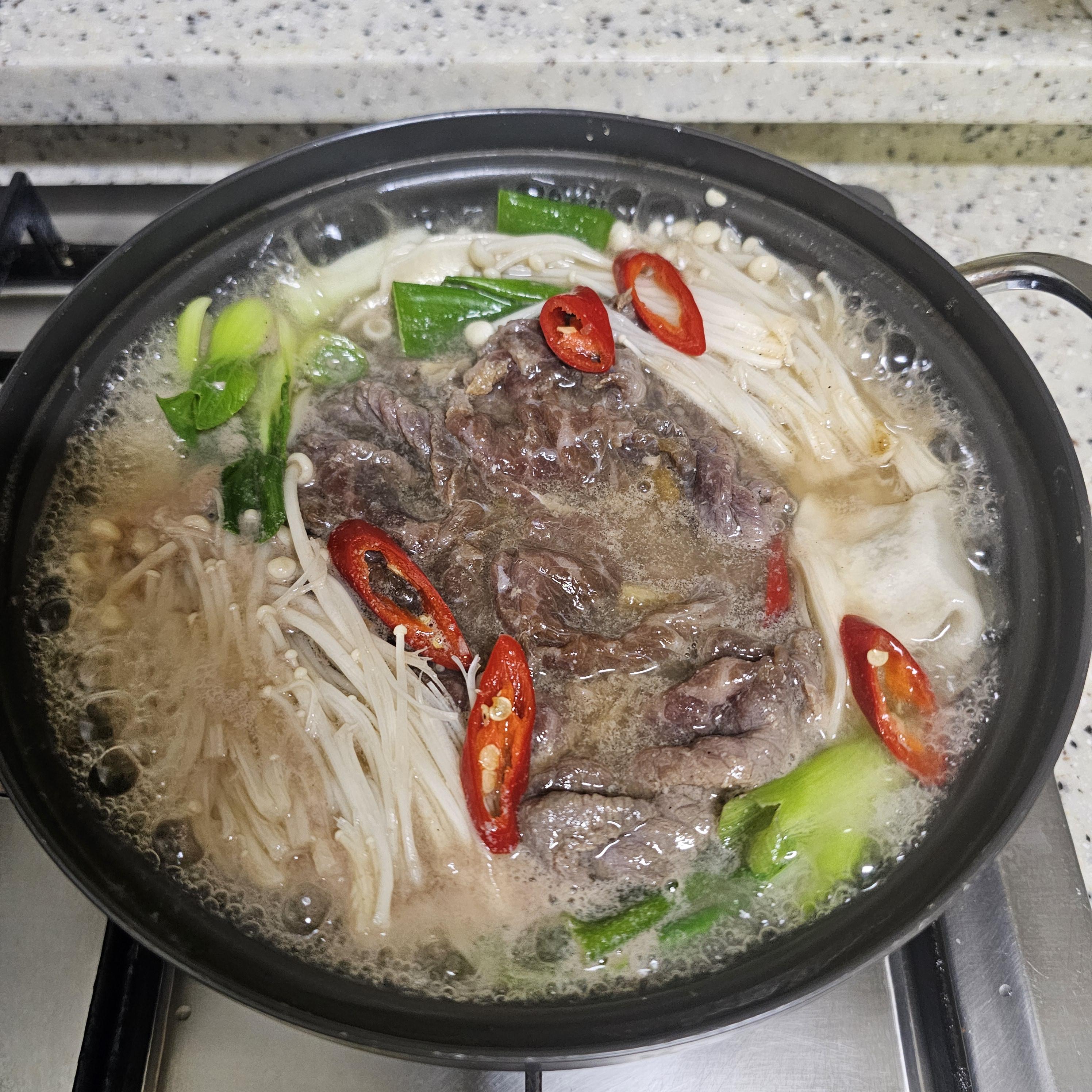 샤브용 육수를 넣어도 되고 저는 코인육수를 녹여서 넣어주었어요!