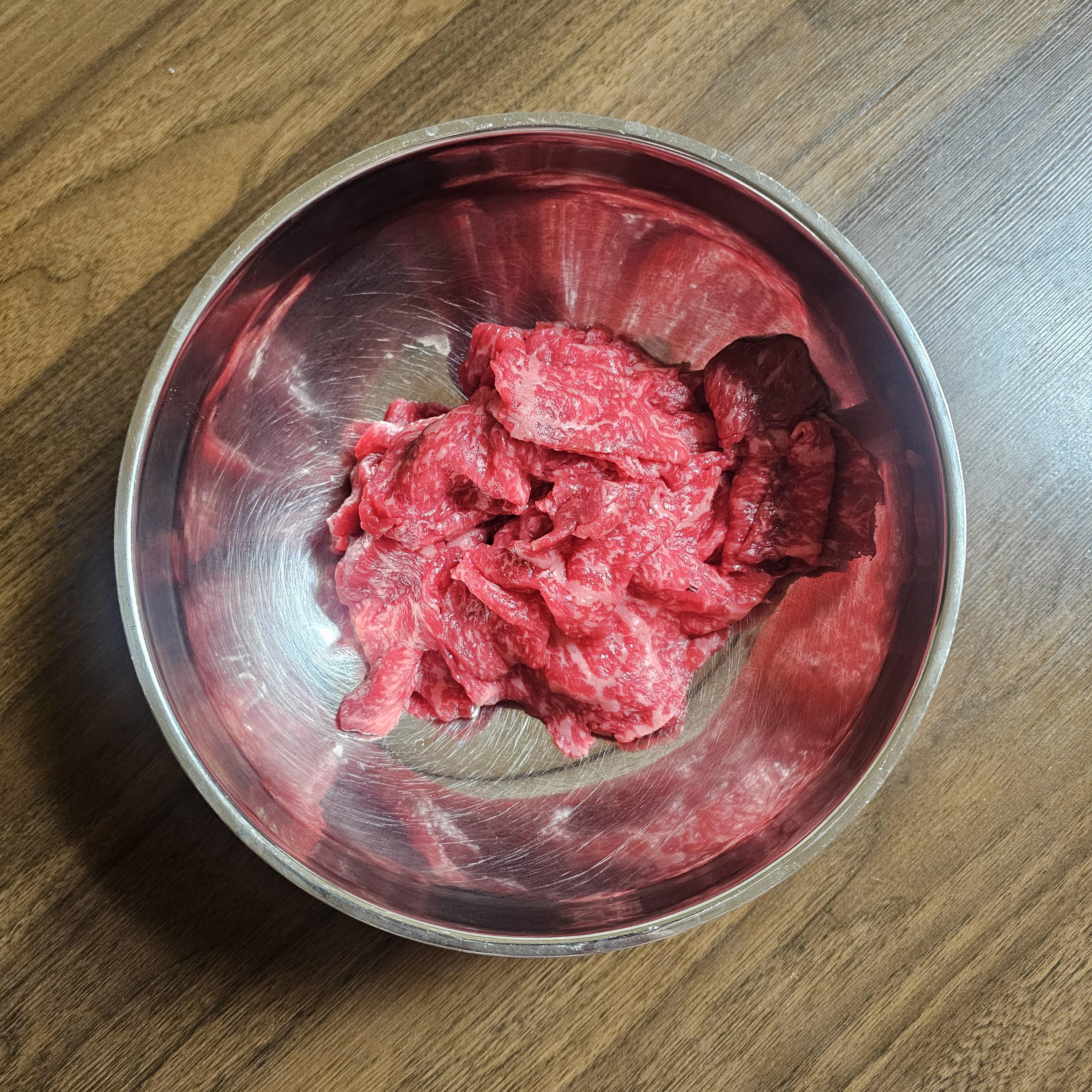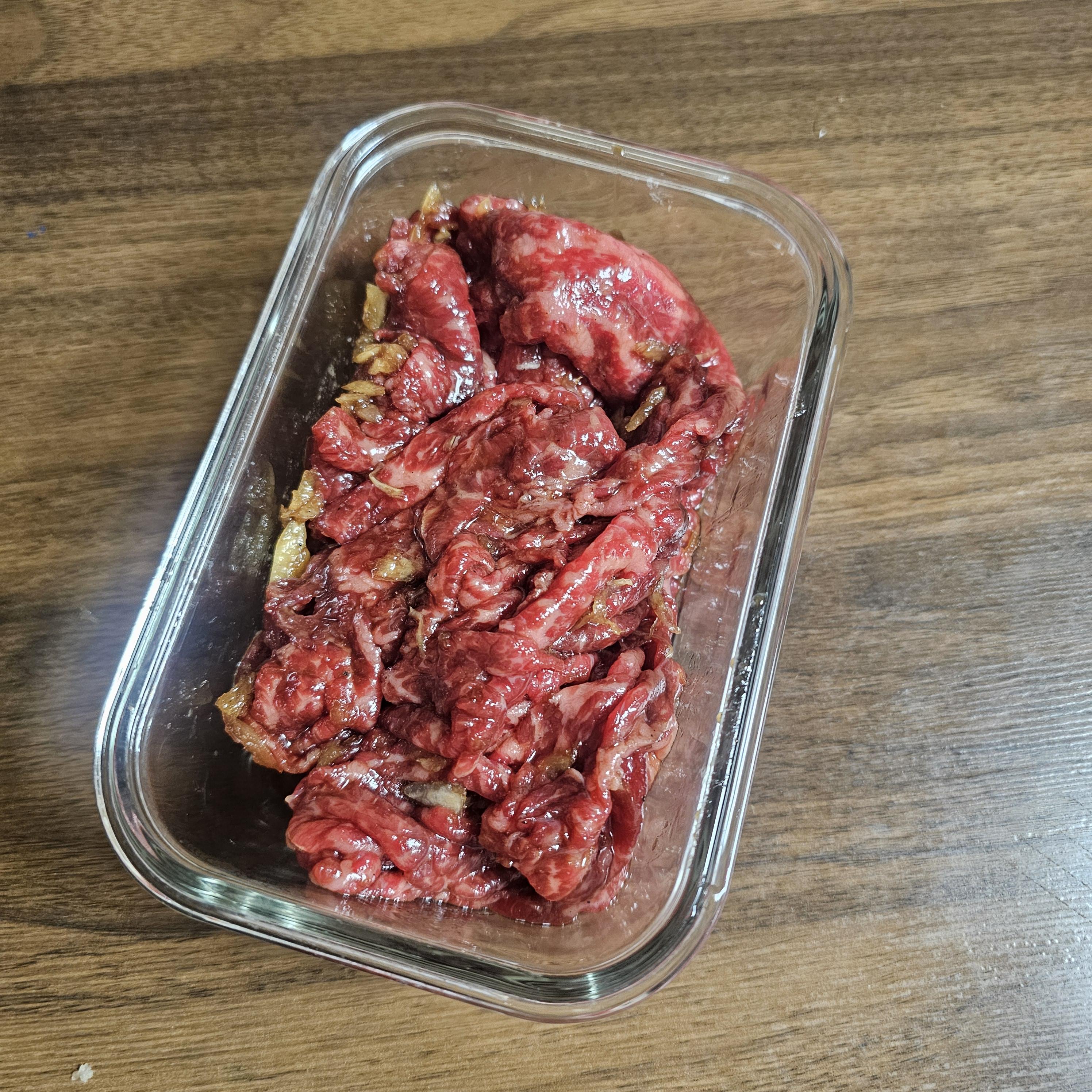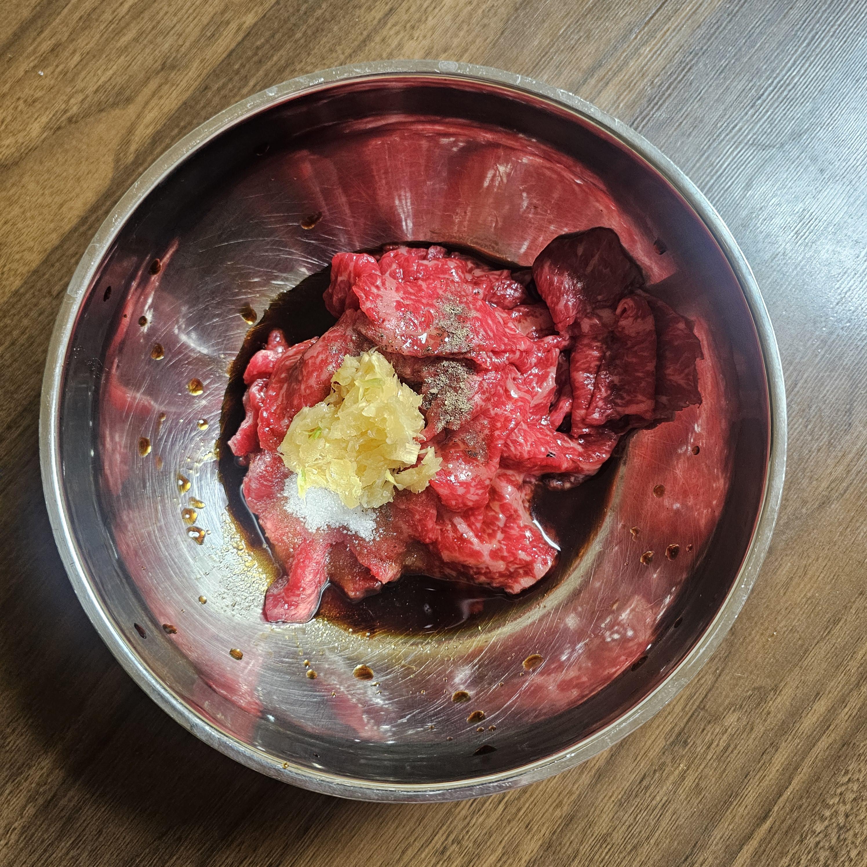 그리고 위에 양념된 소불고기를 얹어주세요.