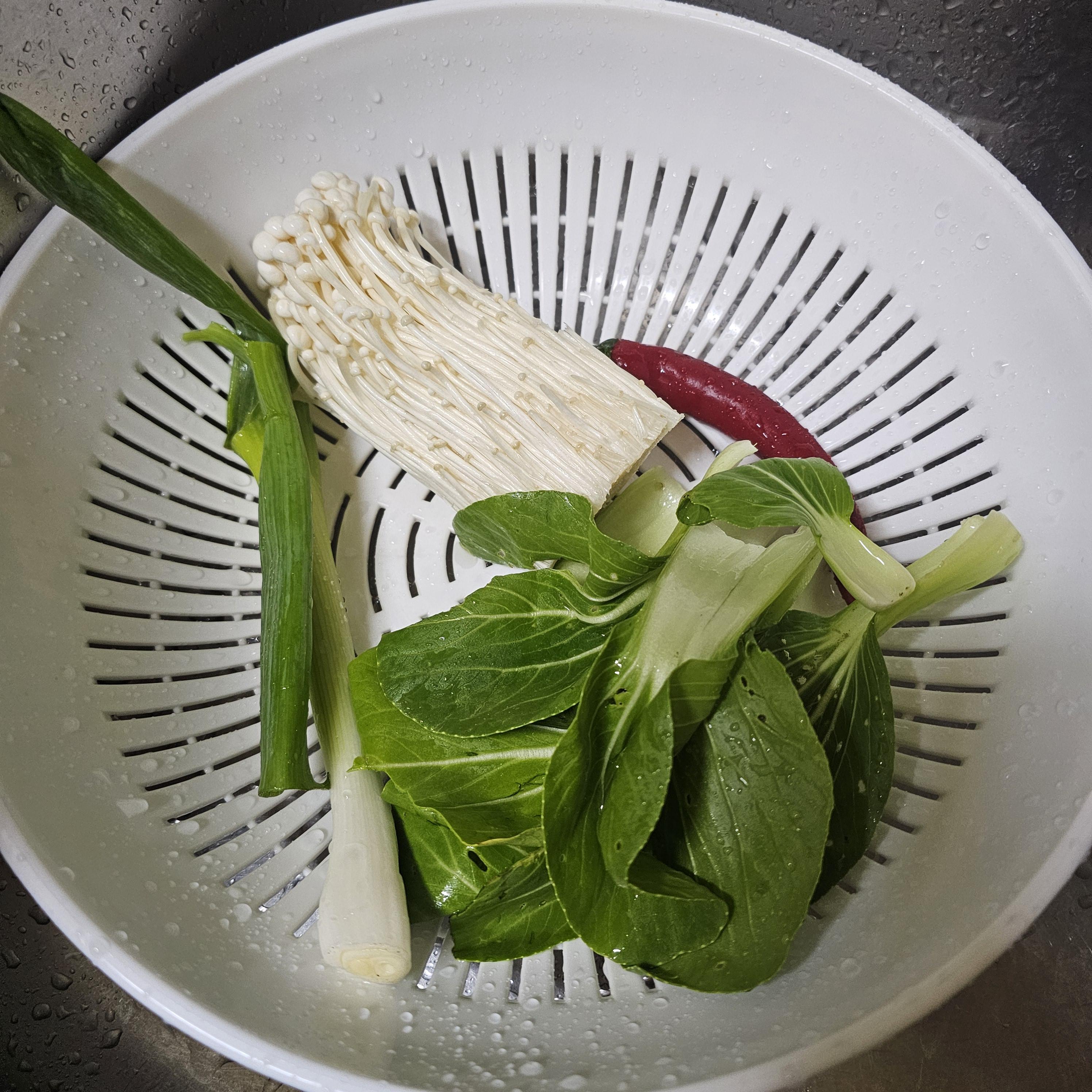 팽이버섯, 대파, 청경채, 홍고추는 깨끗하게 세척해 주세요.