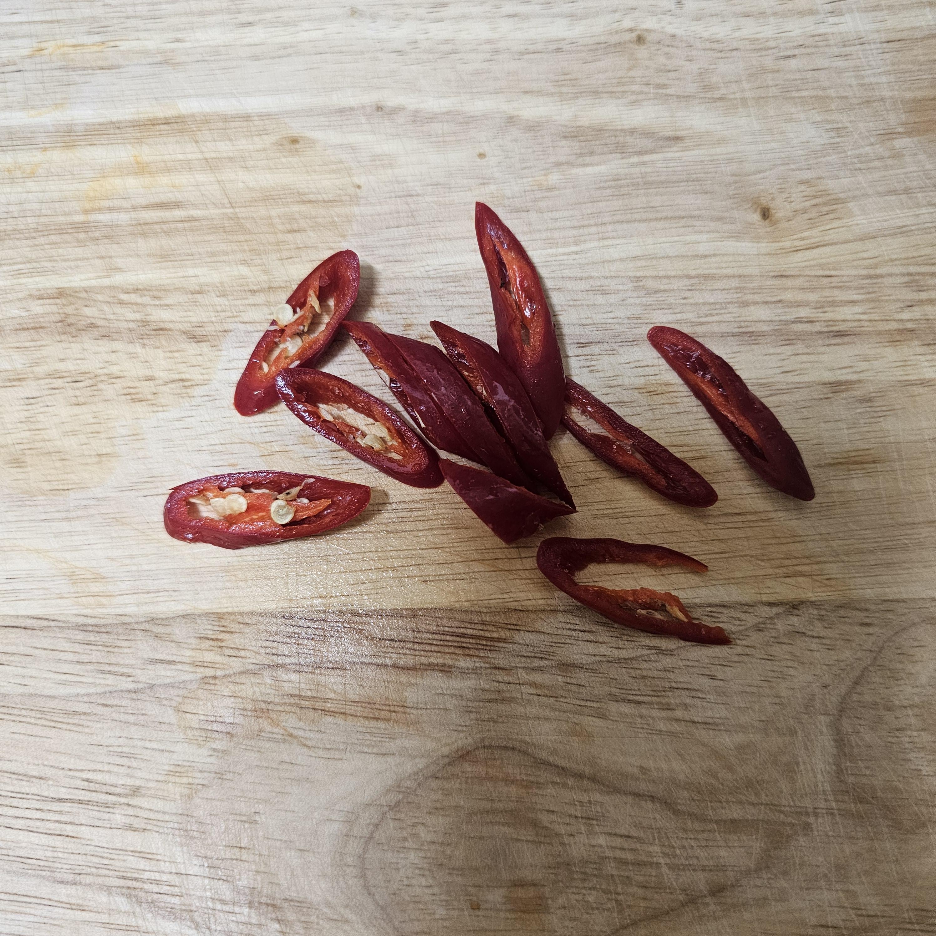 홍고추는 이렇게 어슷 썰기로 썰어주세요.