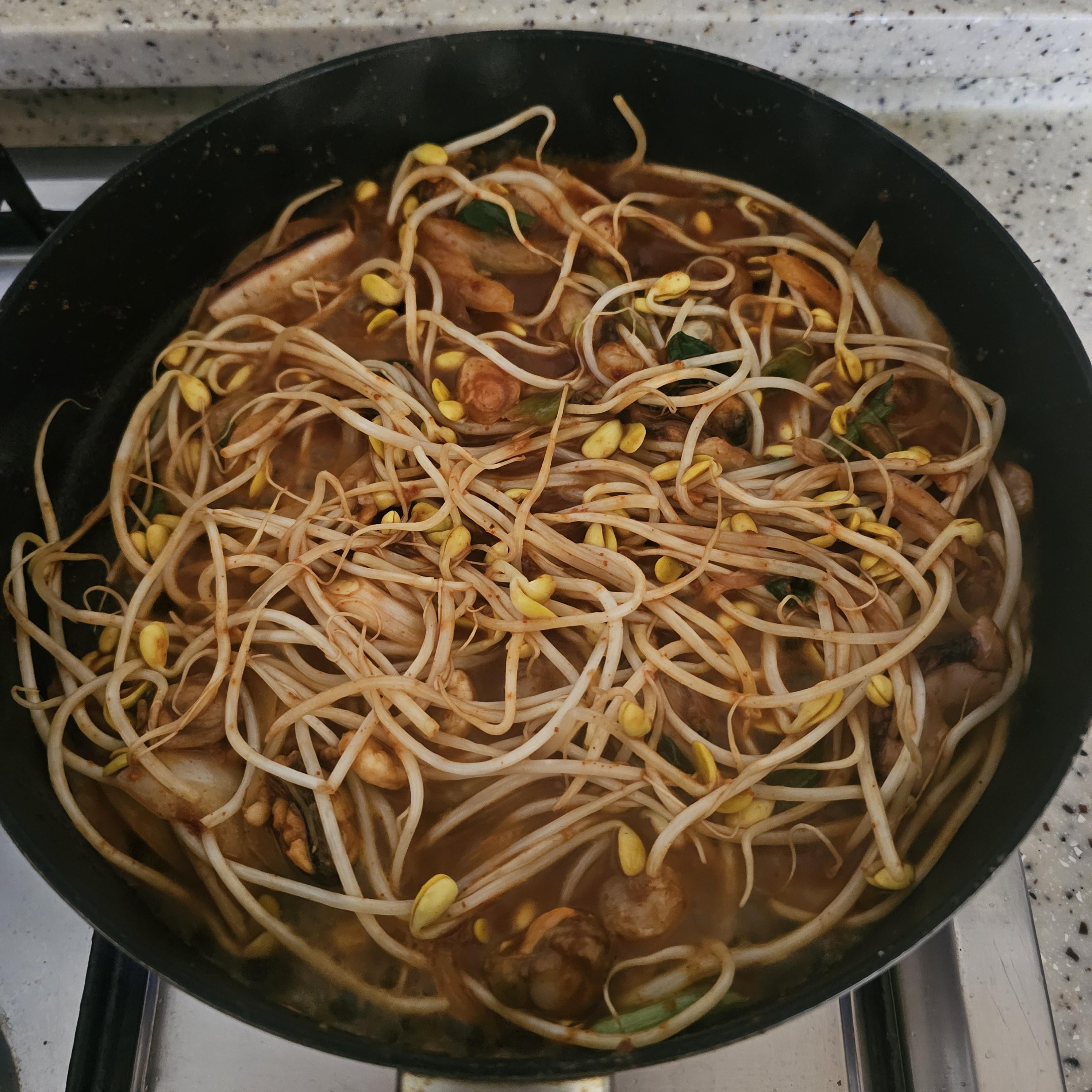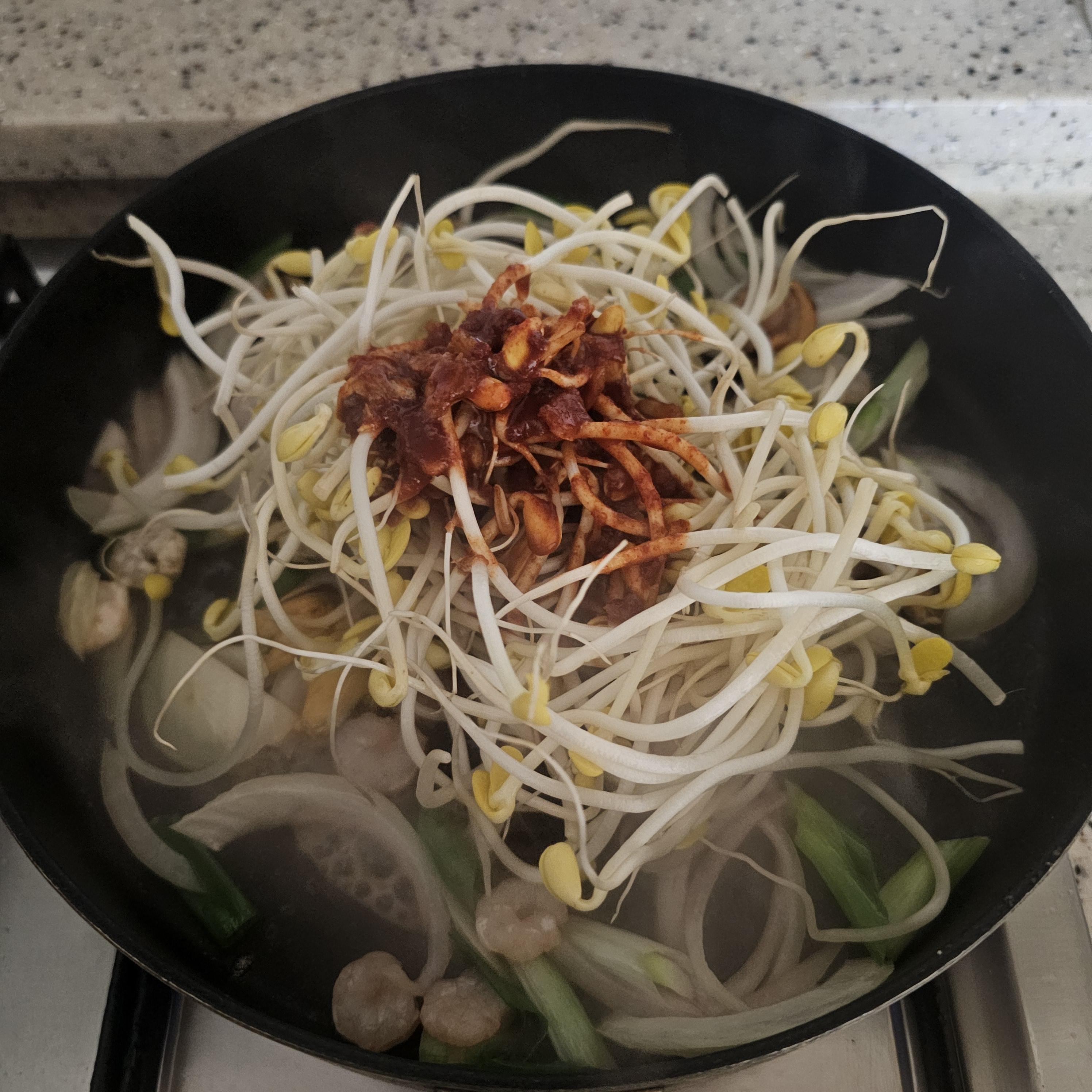 그다음 콩나물과 미리 만든 양념장을 넣어줍니다.