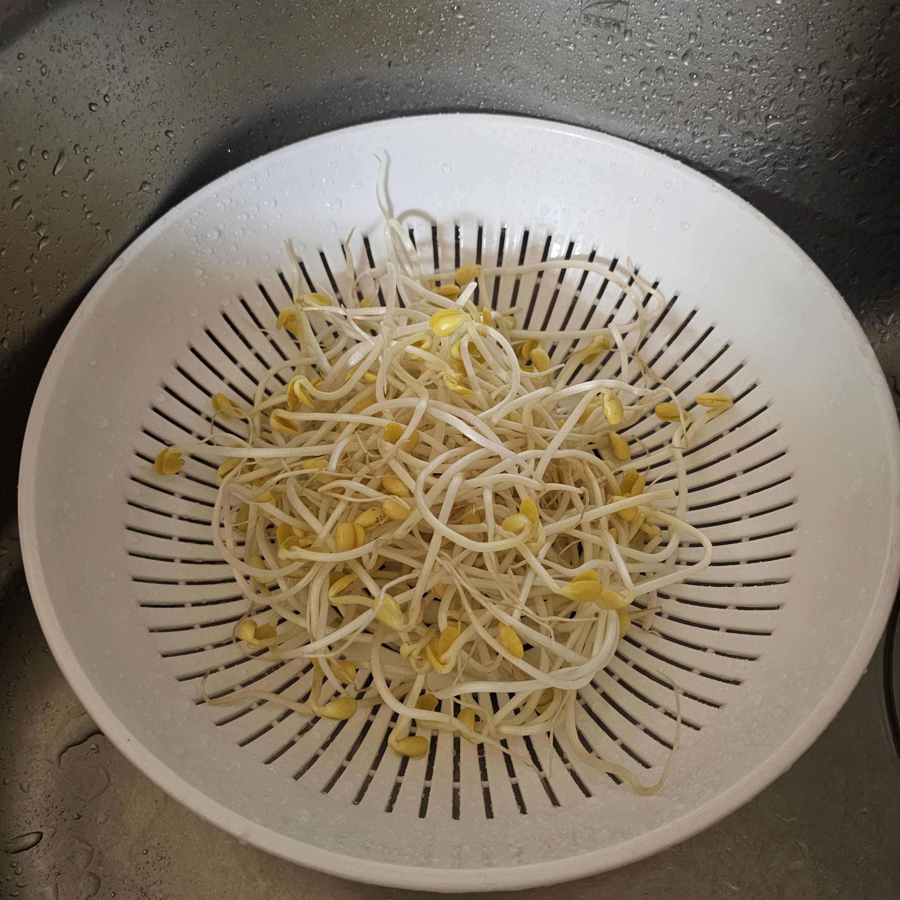 먼저 체에 콩나물을 넣고 흐르는 물에 세척해 주세요.