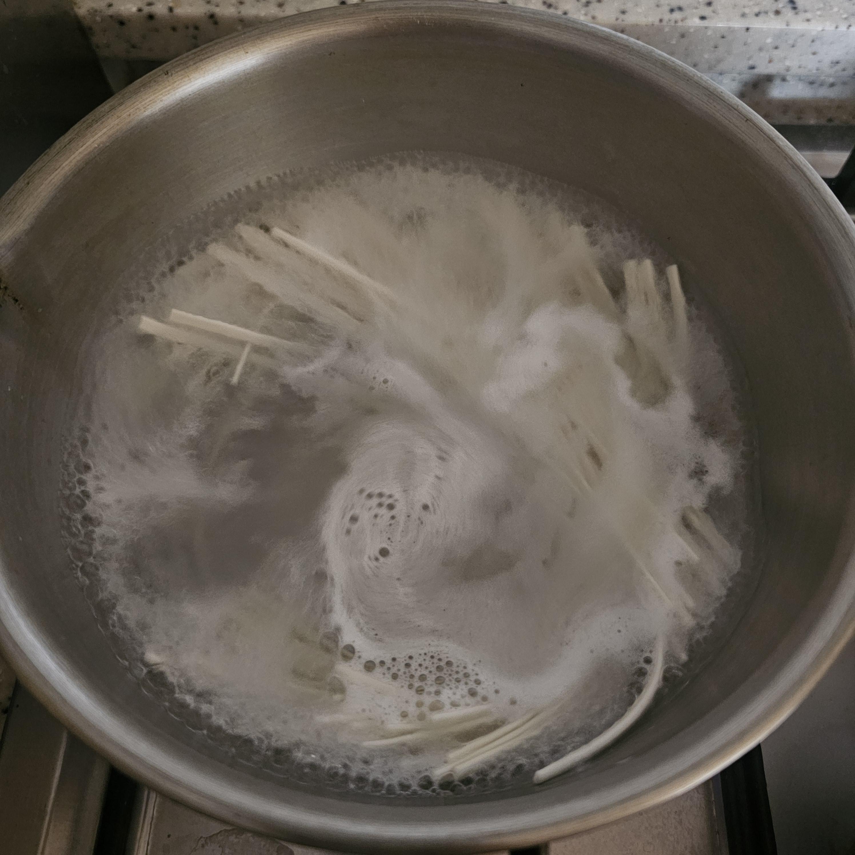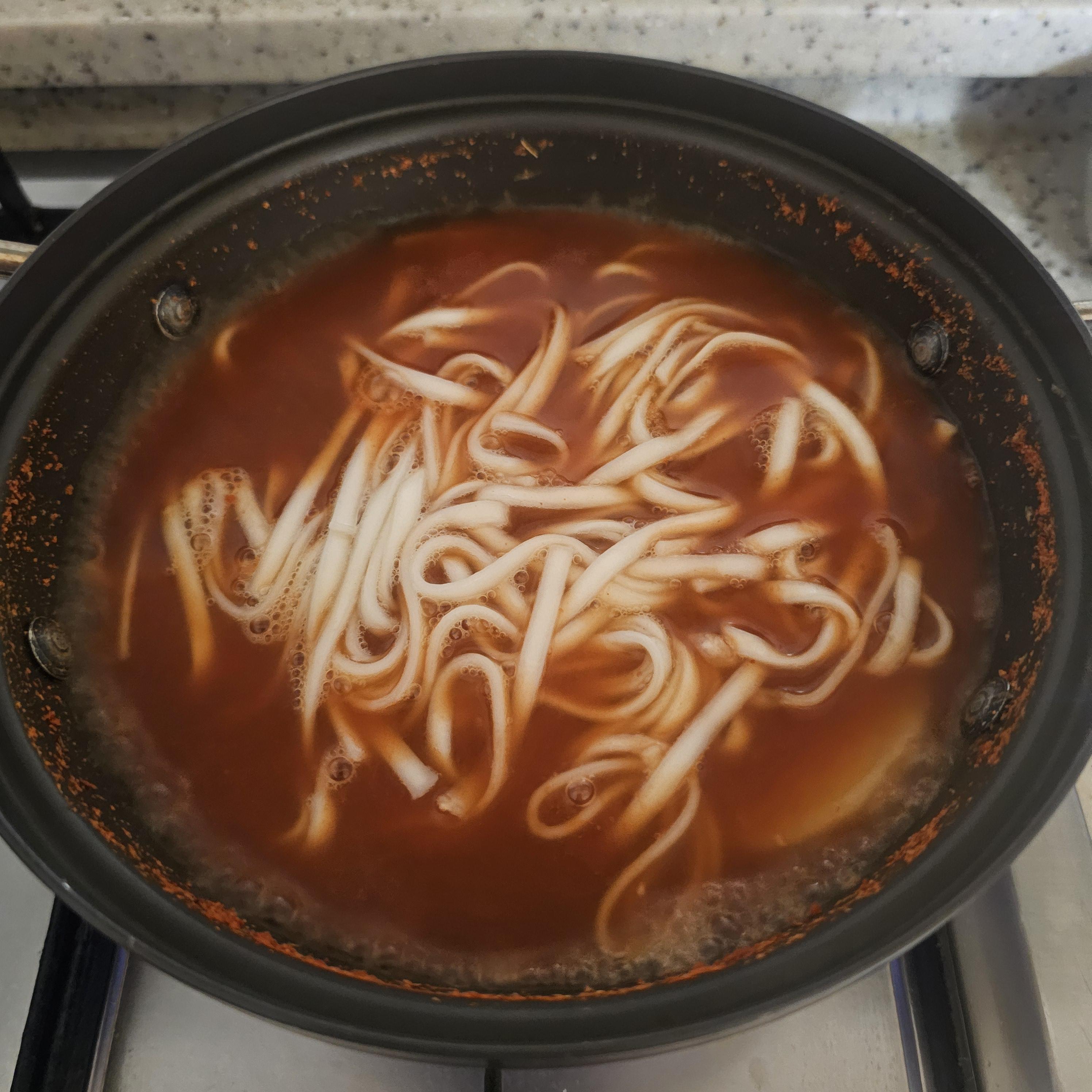그리고 70% 이상 익힌 칼국수 면을 넣어줍니다.