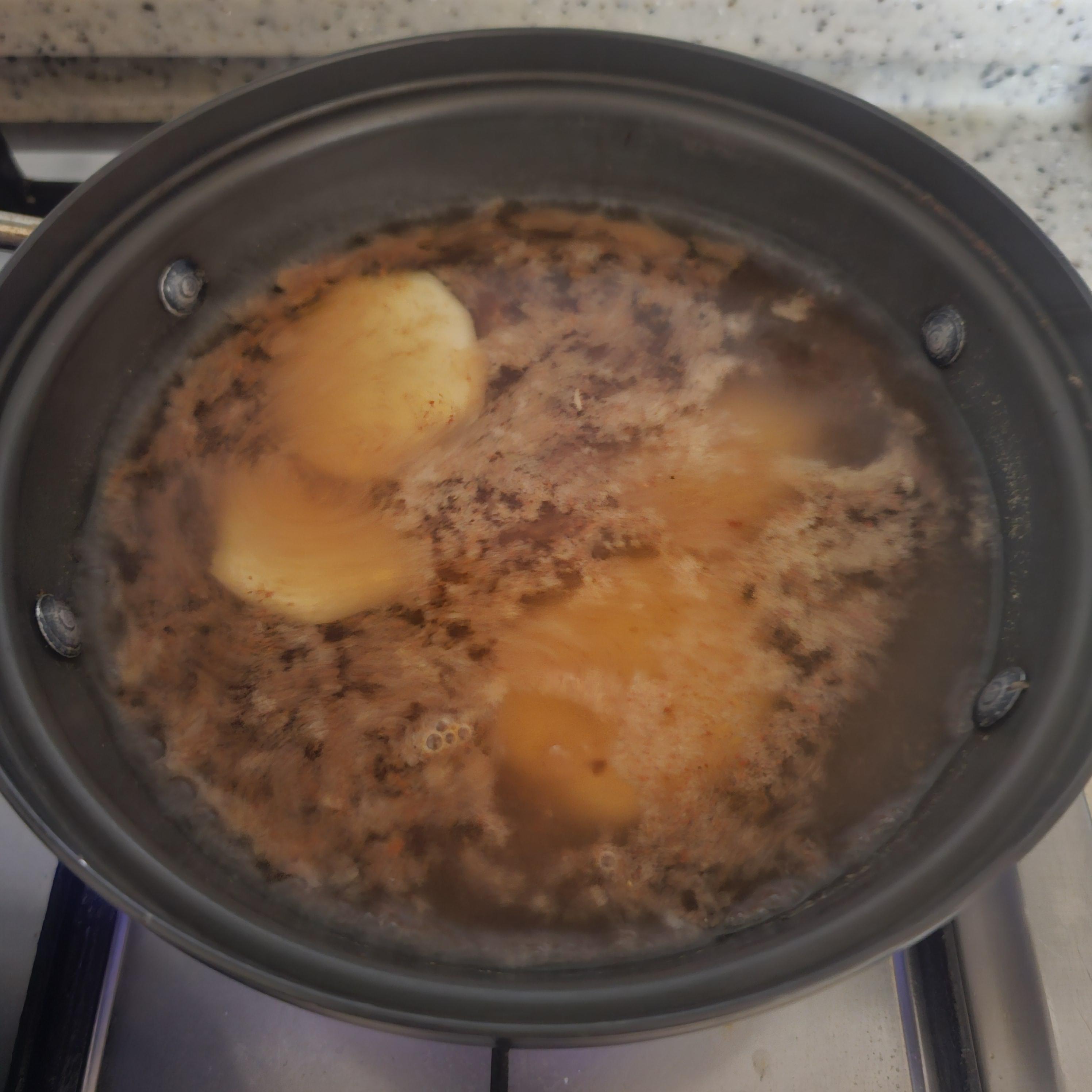 팔팔 끓으면 감자와 미리 만들어 놓은 양념장을 넣어주세요.