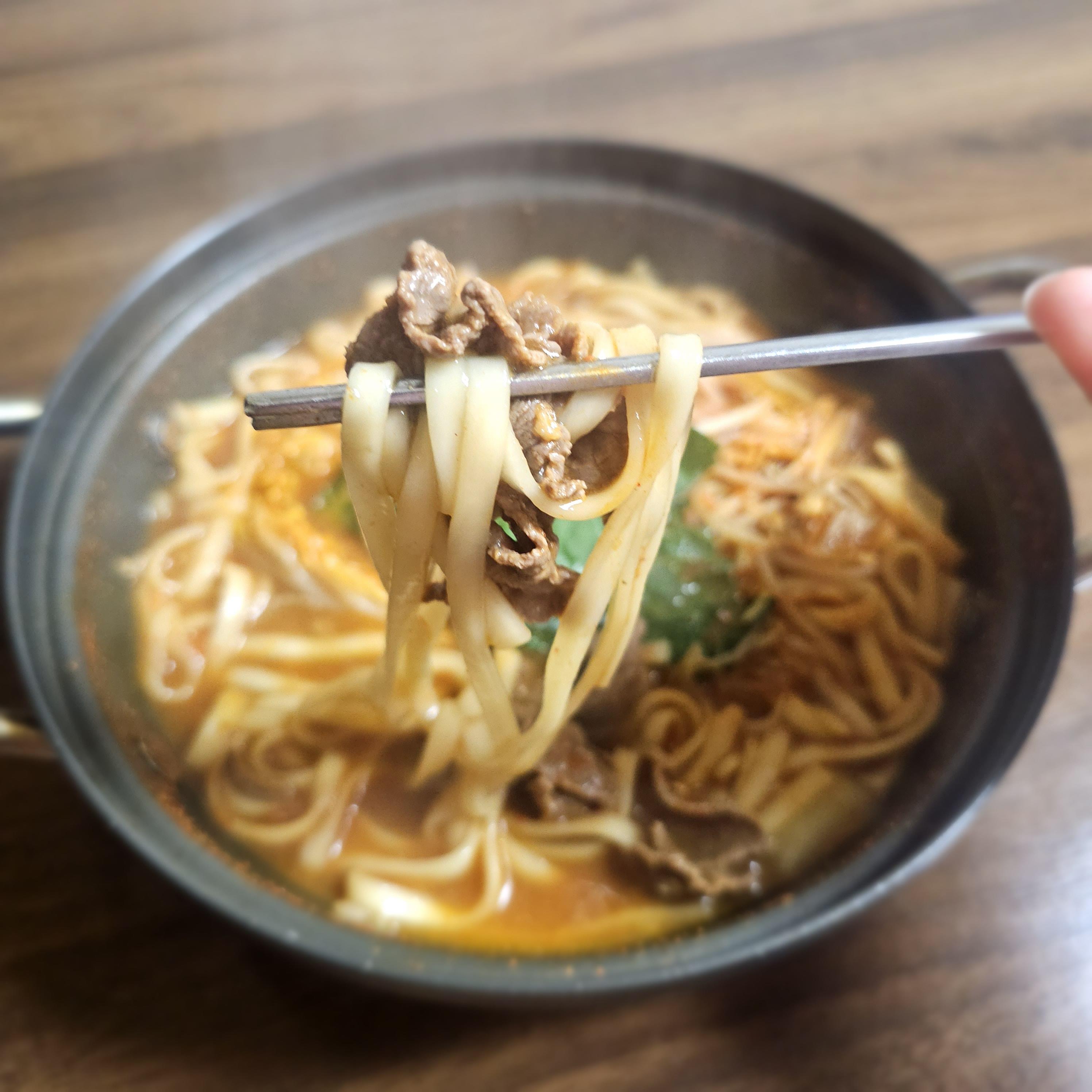 이렇게 맛있는 소고기 샤브 칼국수가 완성되었습니다.