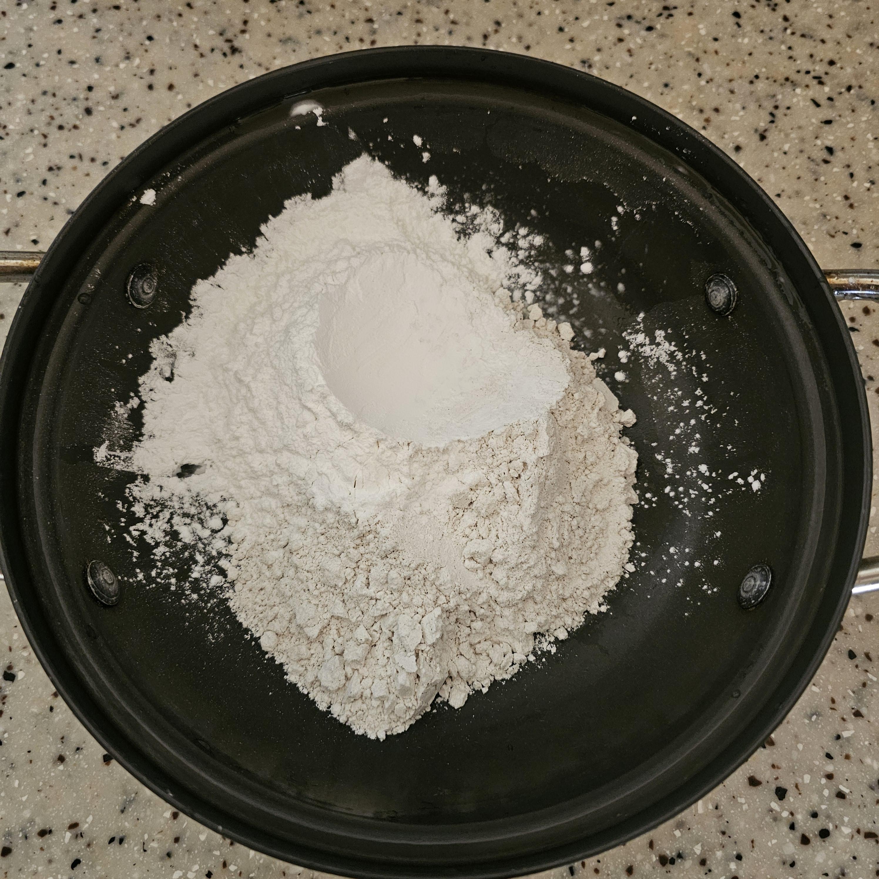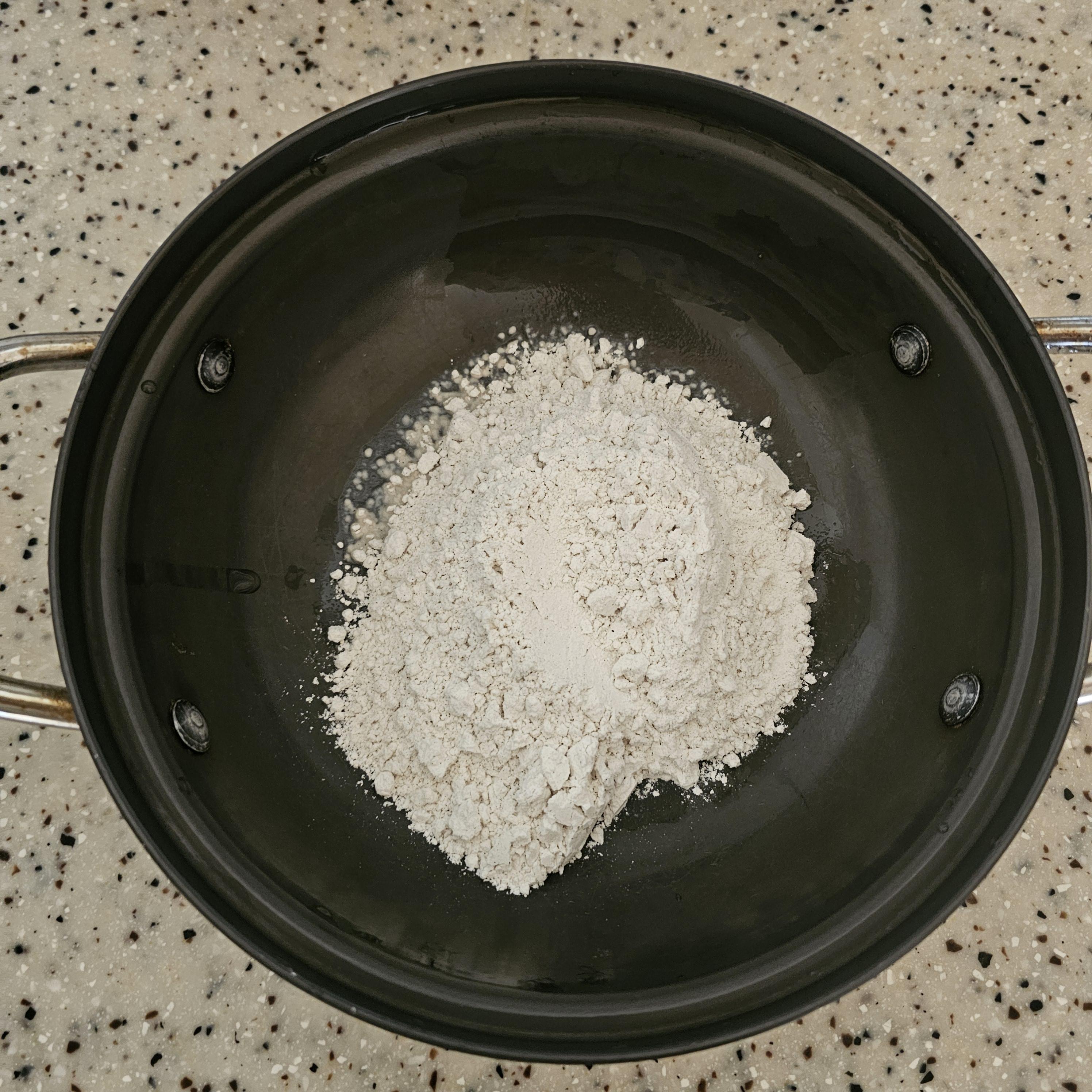 메밀가루 2와 감자전분 1 비율로 덜어줍니다.