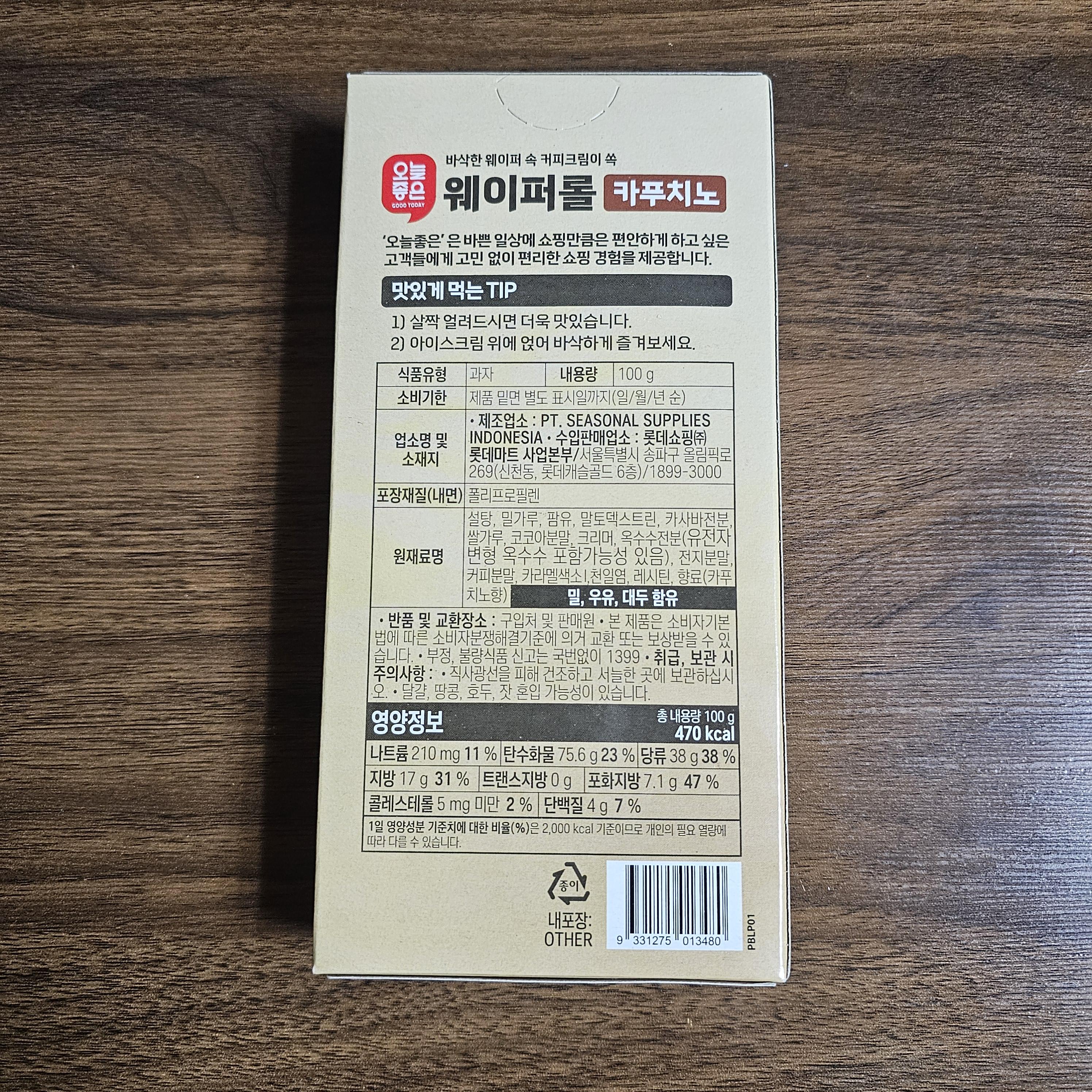 오늘 좋은 웨이퍼롤 카푸치노 리뷰 / 바삭한 웨이퍼 속 커피 크림이 쏙