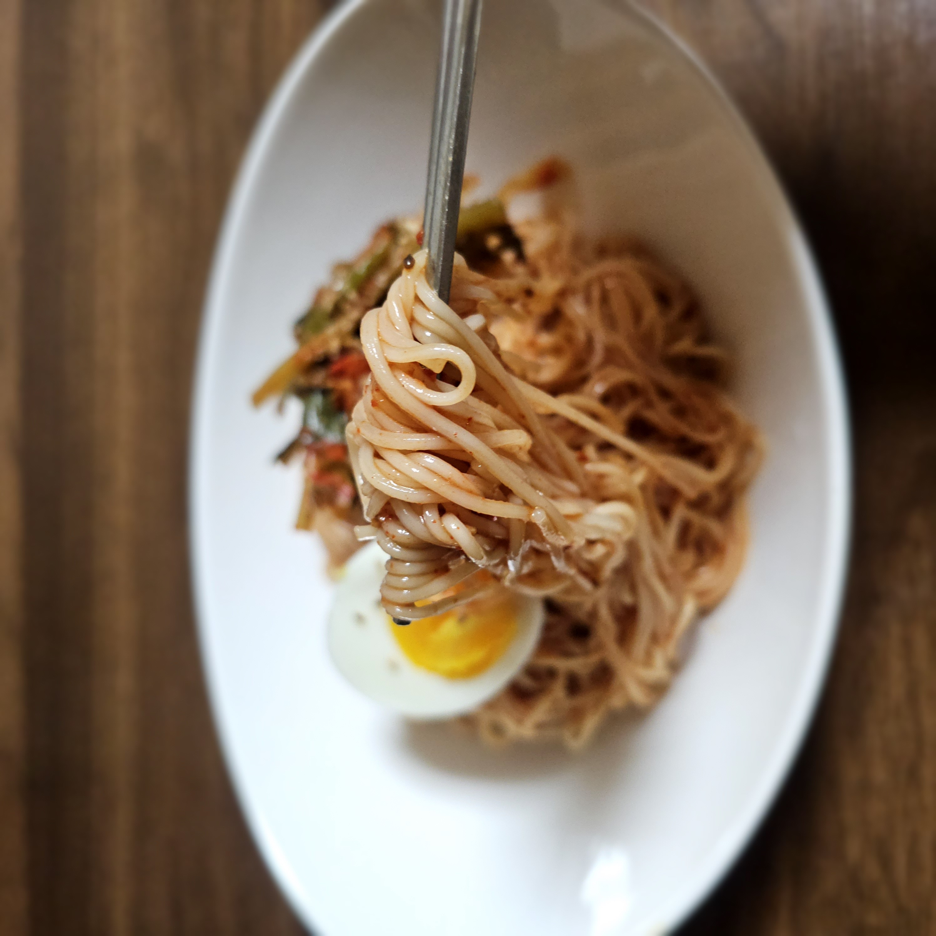겨울인데 갑자기 시원한 열무비빔국수를 먹고 싶어 즉석에서 바로 만들어 먹었어요~