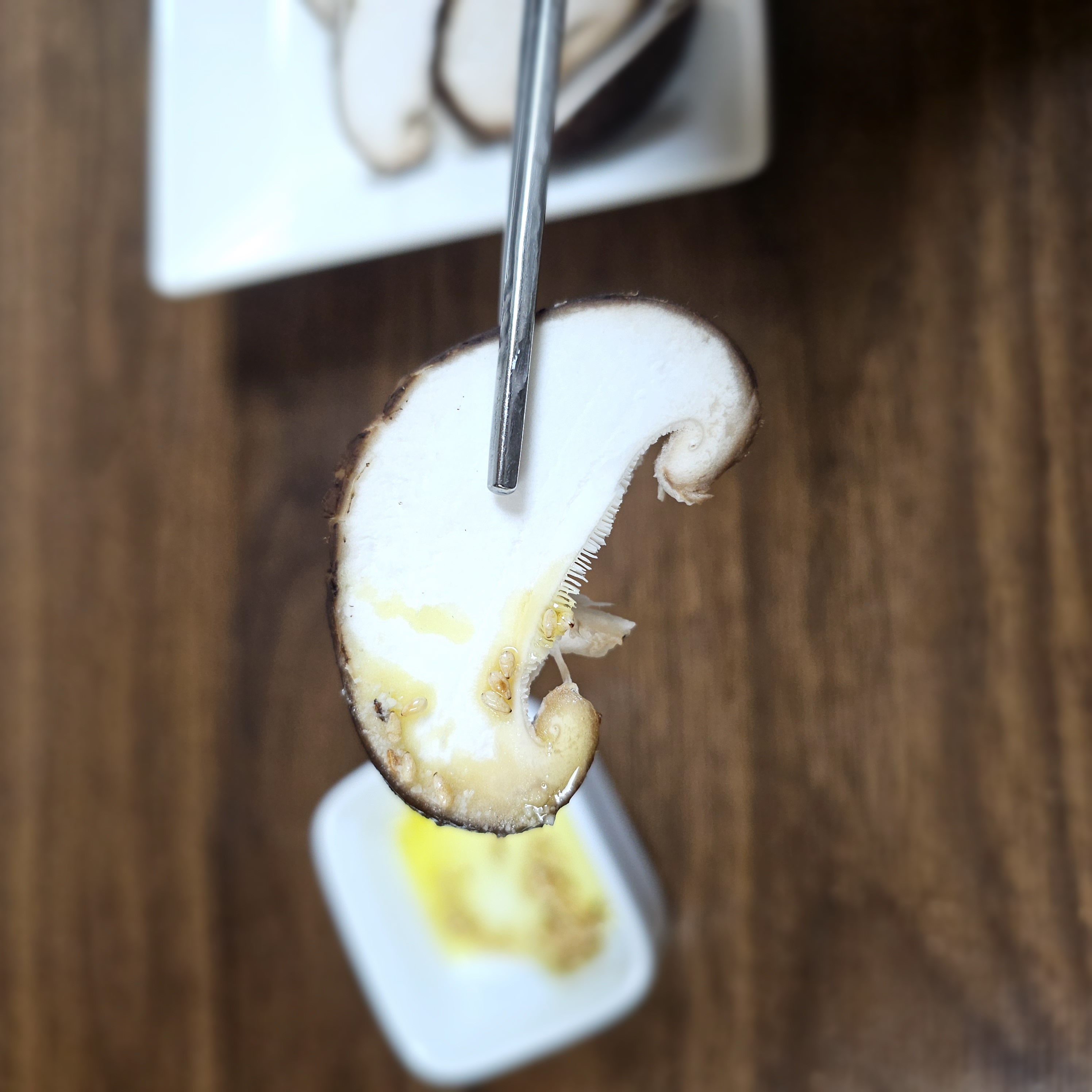 그리고 살짝 묻혀서 찍어먹으면 굉장히 고소한 표고버섯의 맛을 느껴볼 수 있어요.