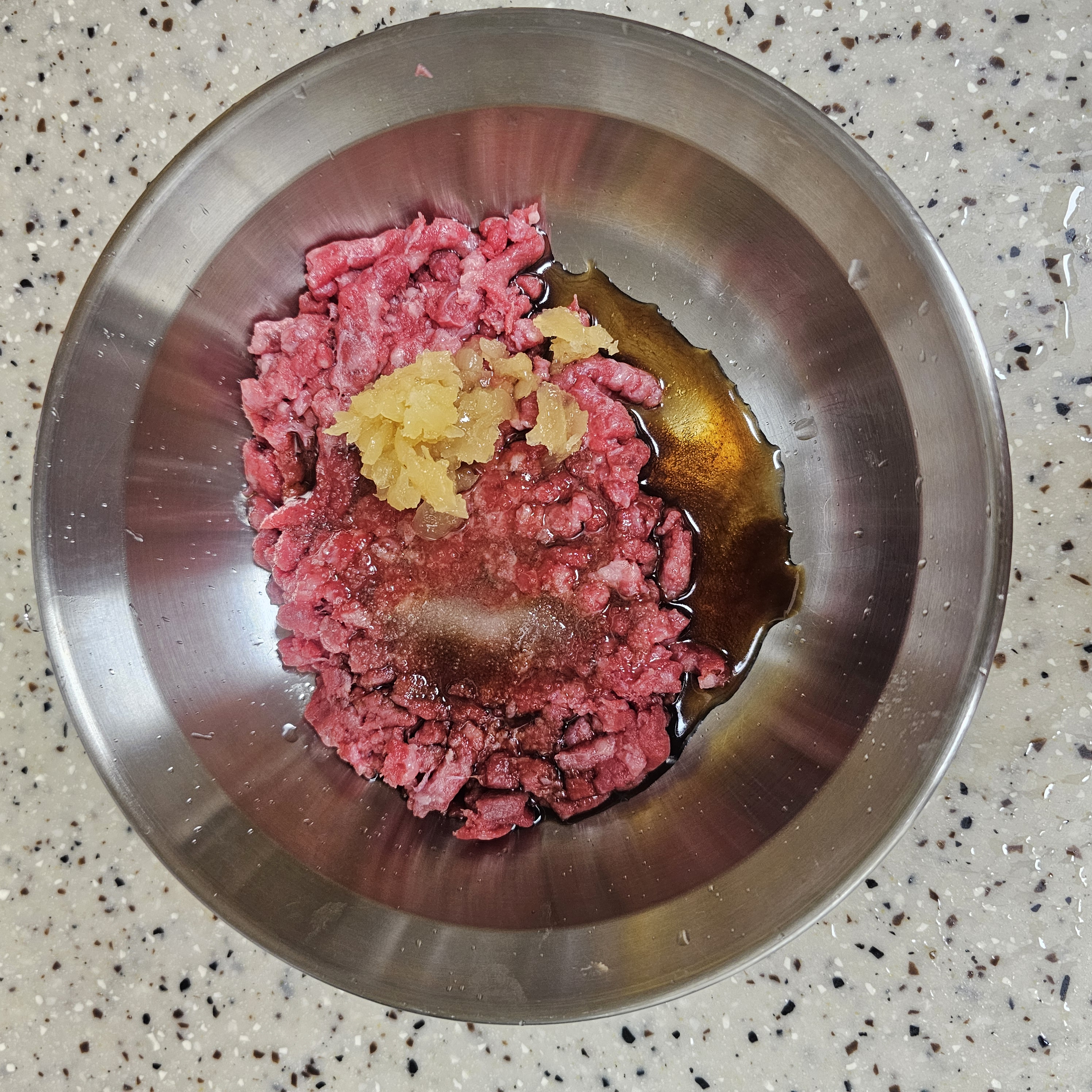 간장 2, 들기름 1, 설탕 1, 맛술 1, 다진 마늘 1을 넣어 밑간을 해줍니다.