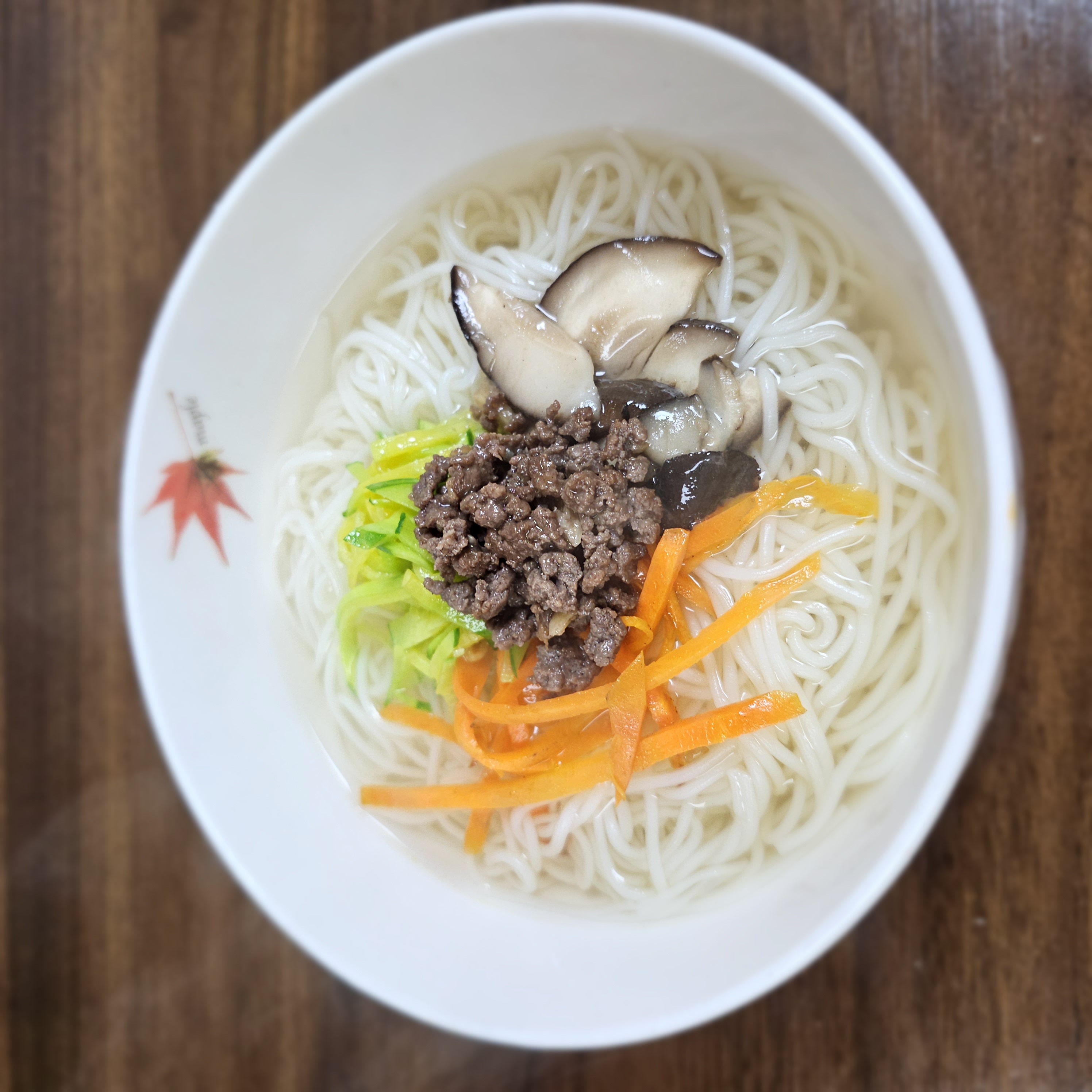 모든 재료를 넣어 이렇게 맛있는 잔치국수가 완성되었습니다.