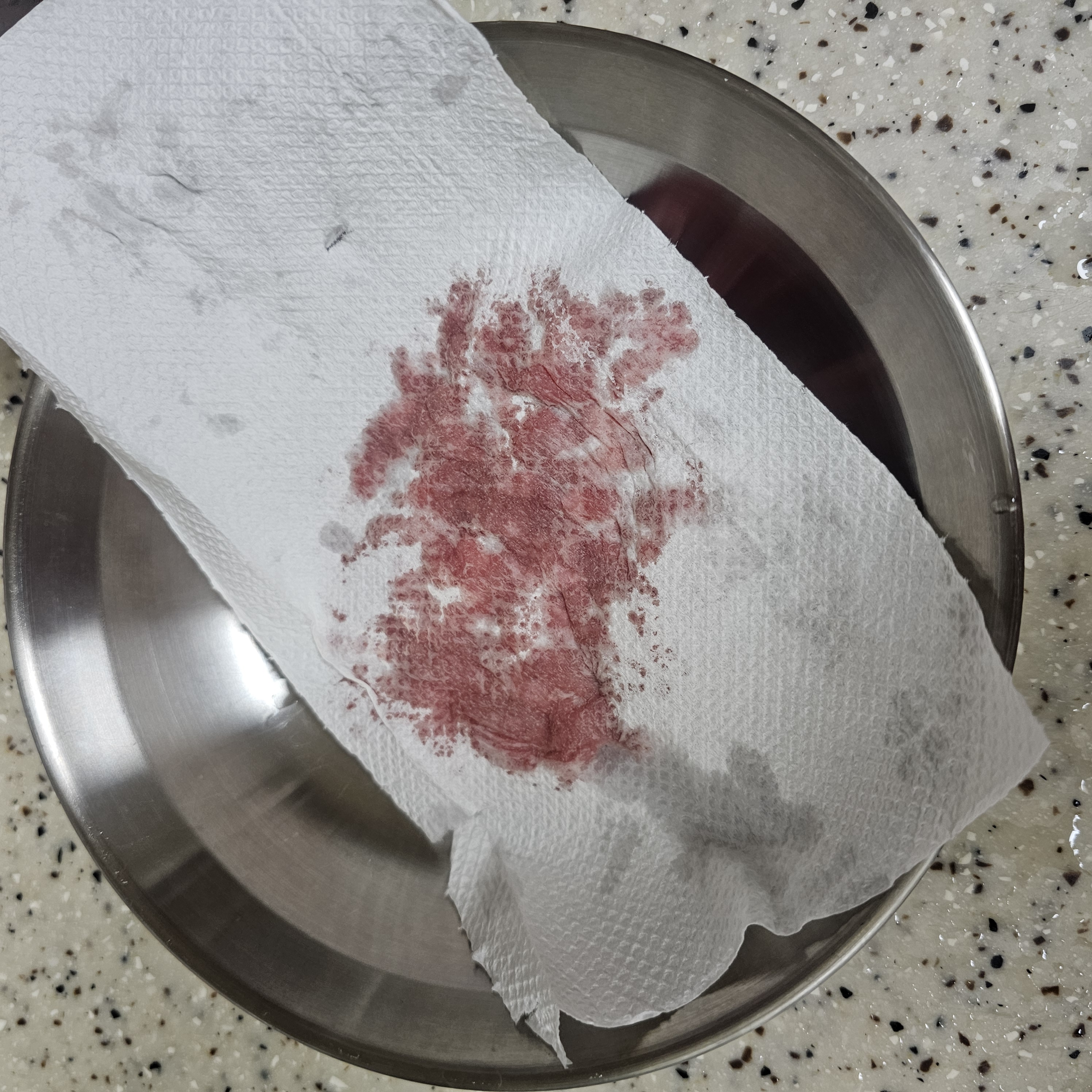 먼저 키친타월로 핏기를 제거해 줍니다.