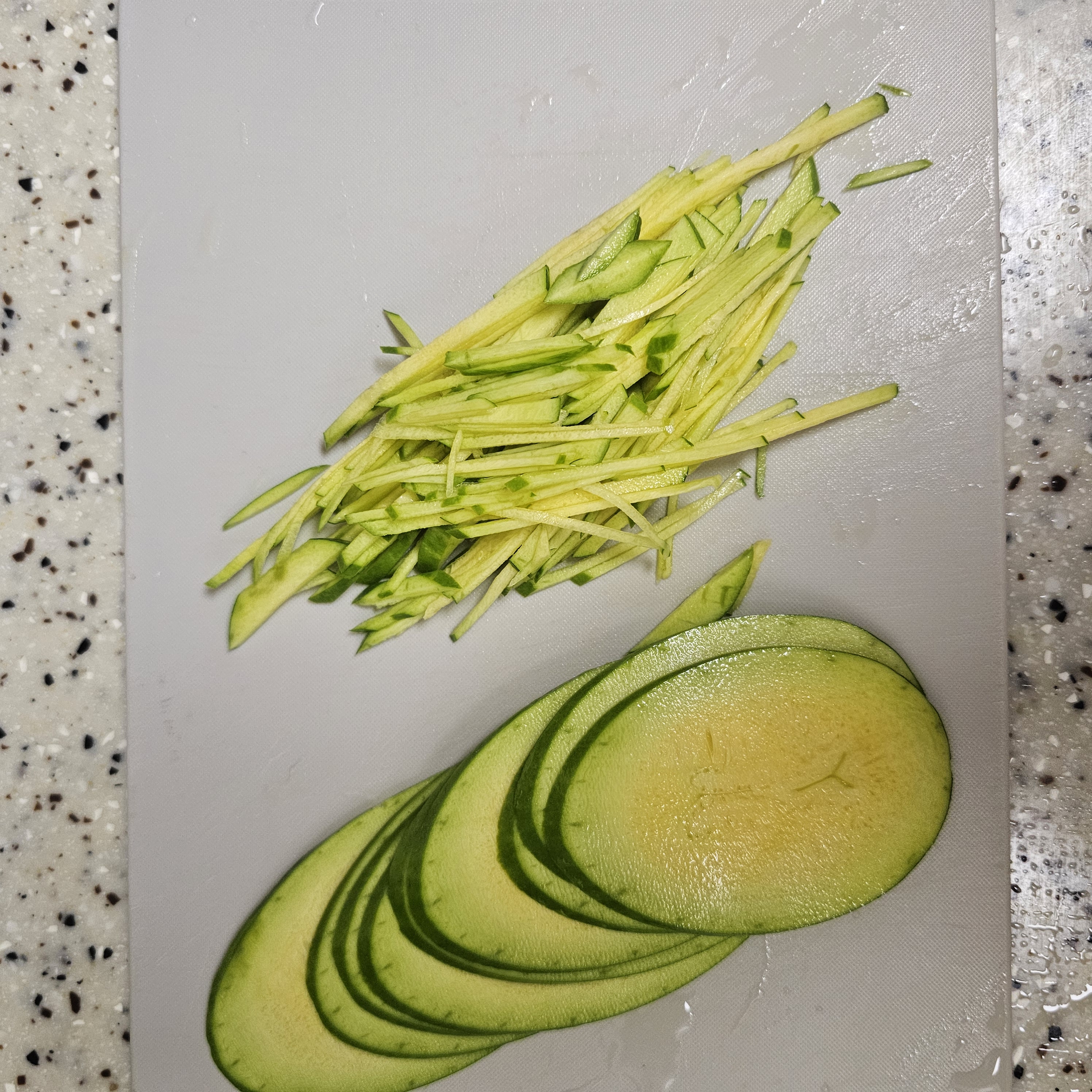 이렇게 국수 고명을 얇게 썰어줍니다.