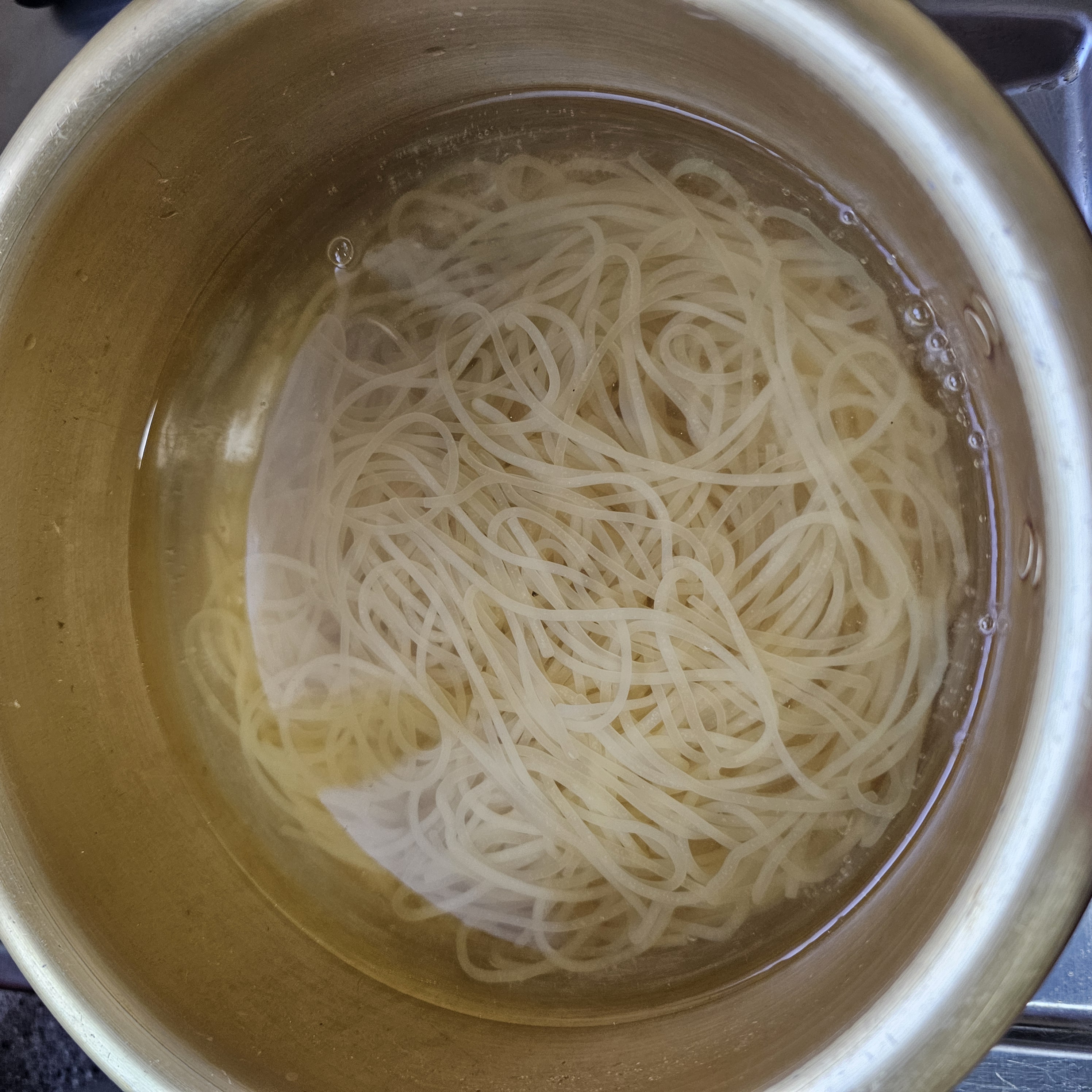 끓는 물에 쫄면 사리를 넣고 끓여줍니다.