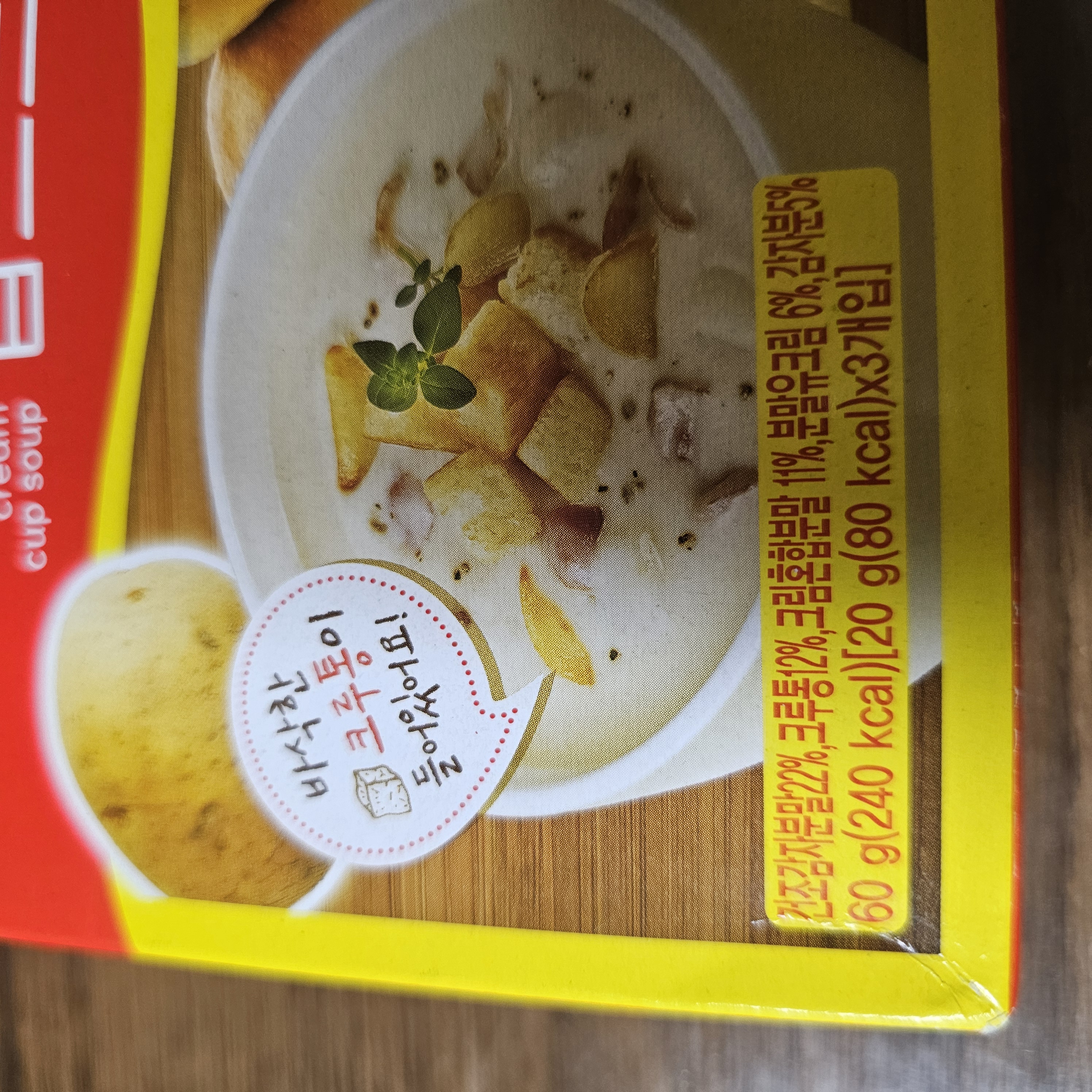 건조감자분말 22%, 크루통 12%, 크림혼합분말 11%, 분말유크림 6%, 감자분 5%