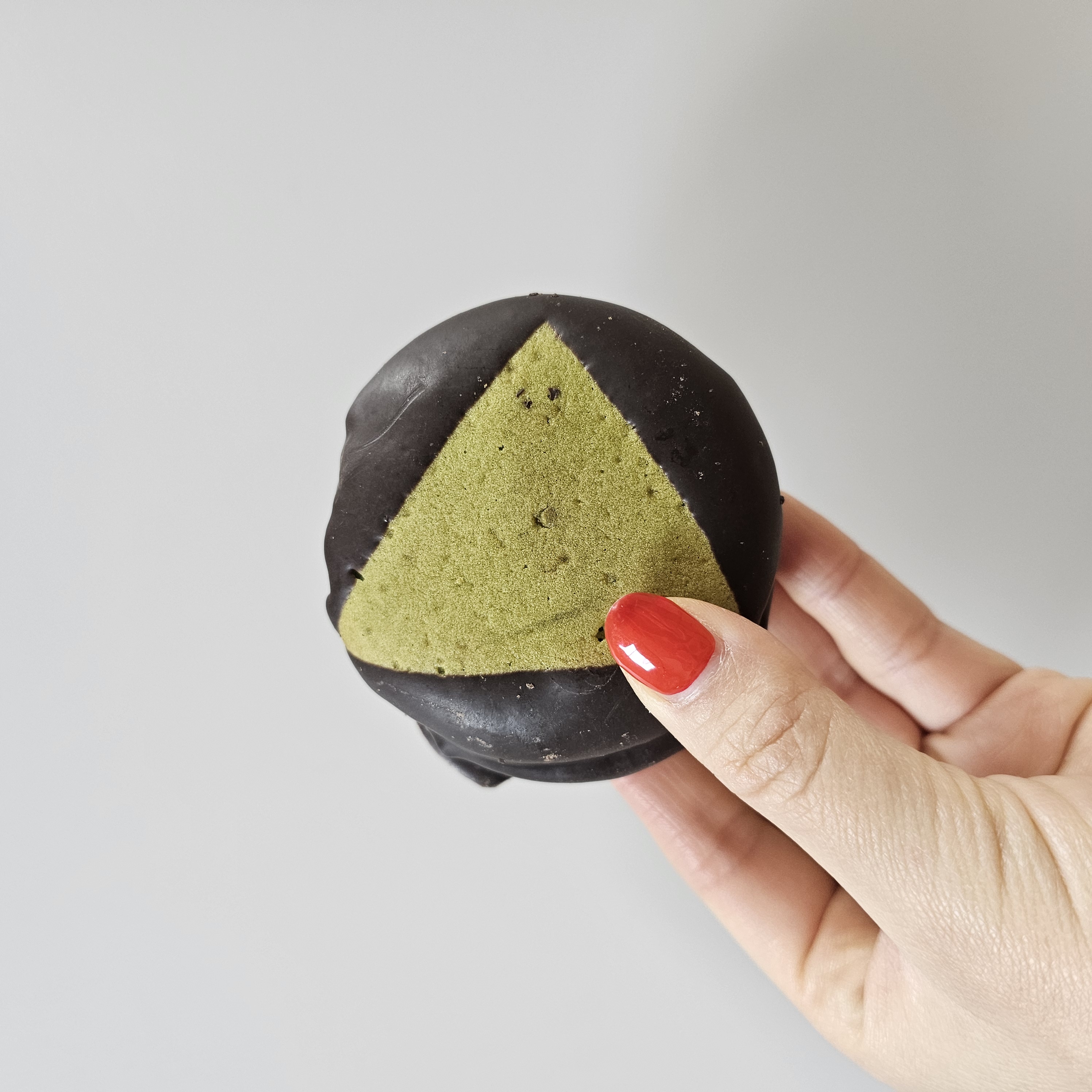 말차맛이라 가운데 녹색 세모모양이 있어요.