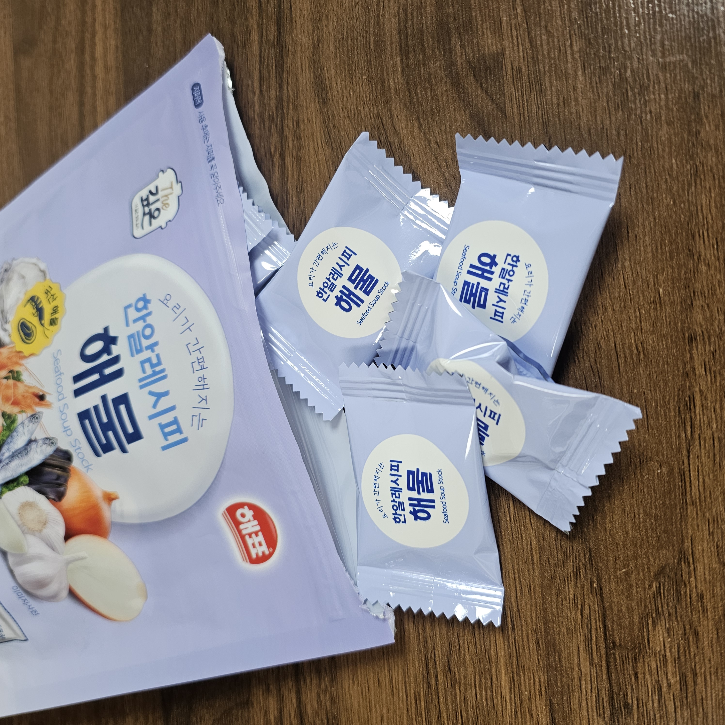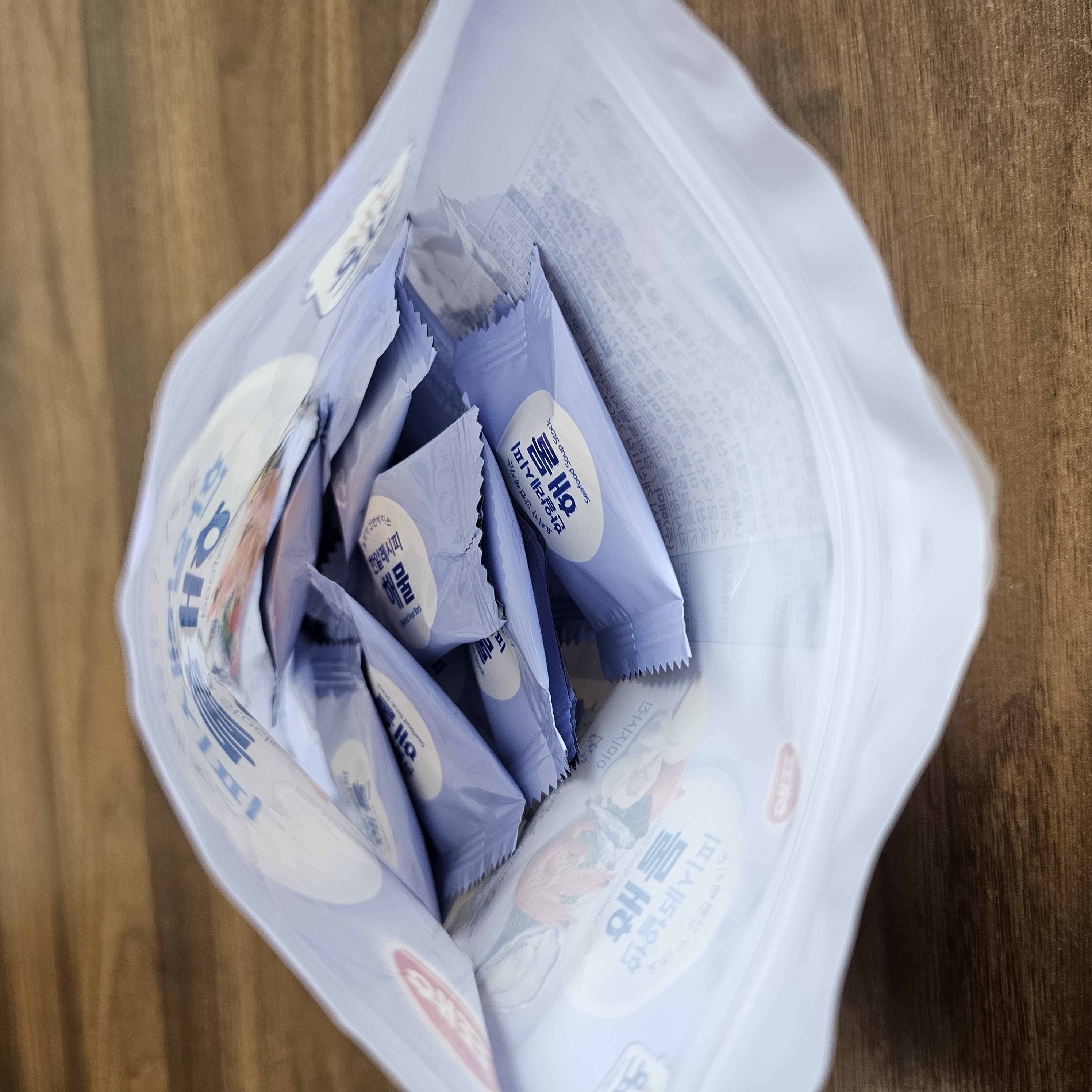 뜯어서 확인했더니 동그란 모양의 코인 육수입니다.
