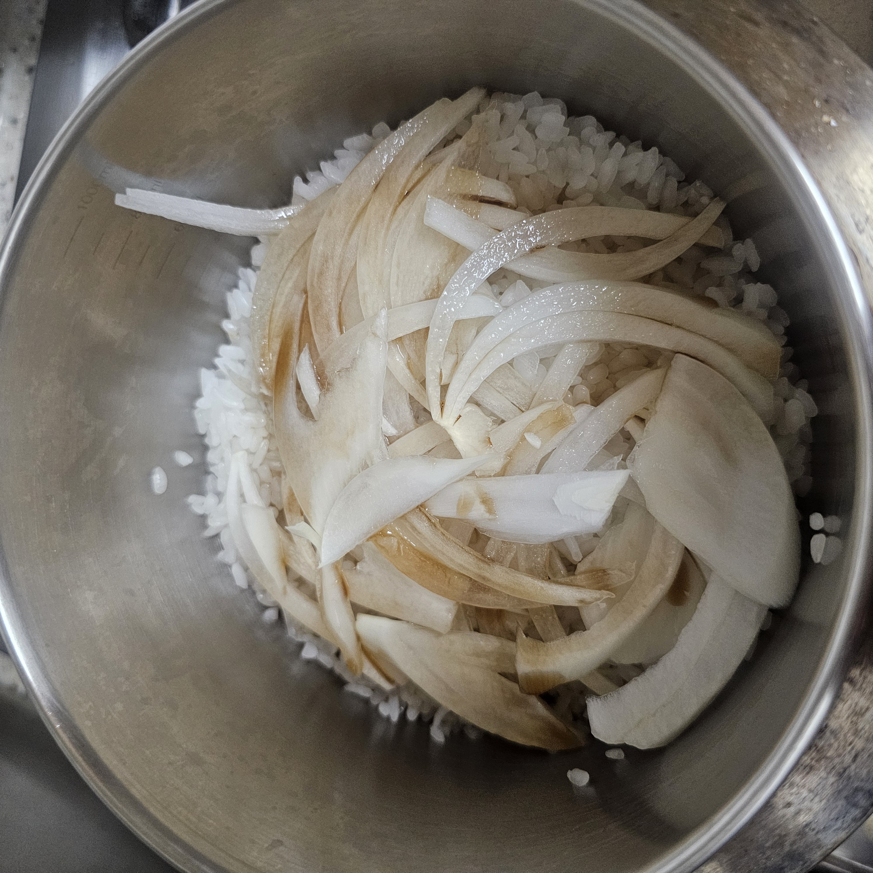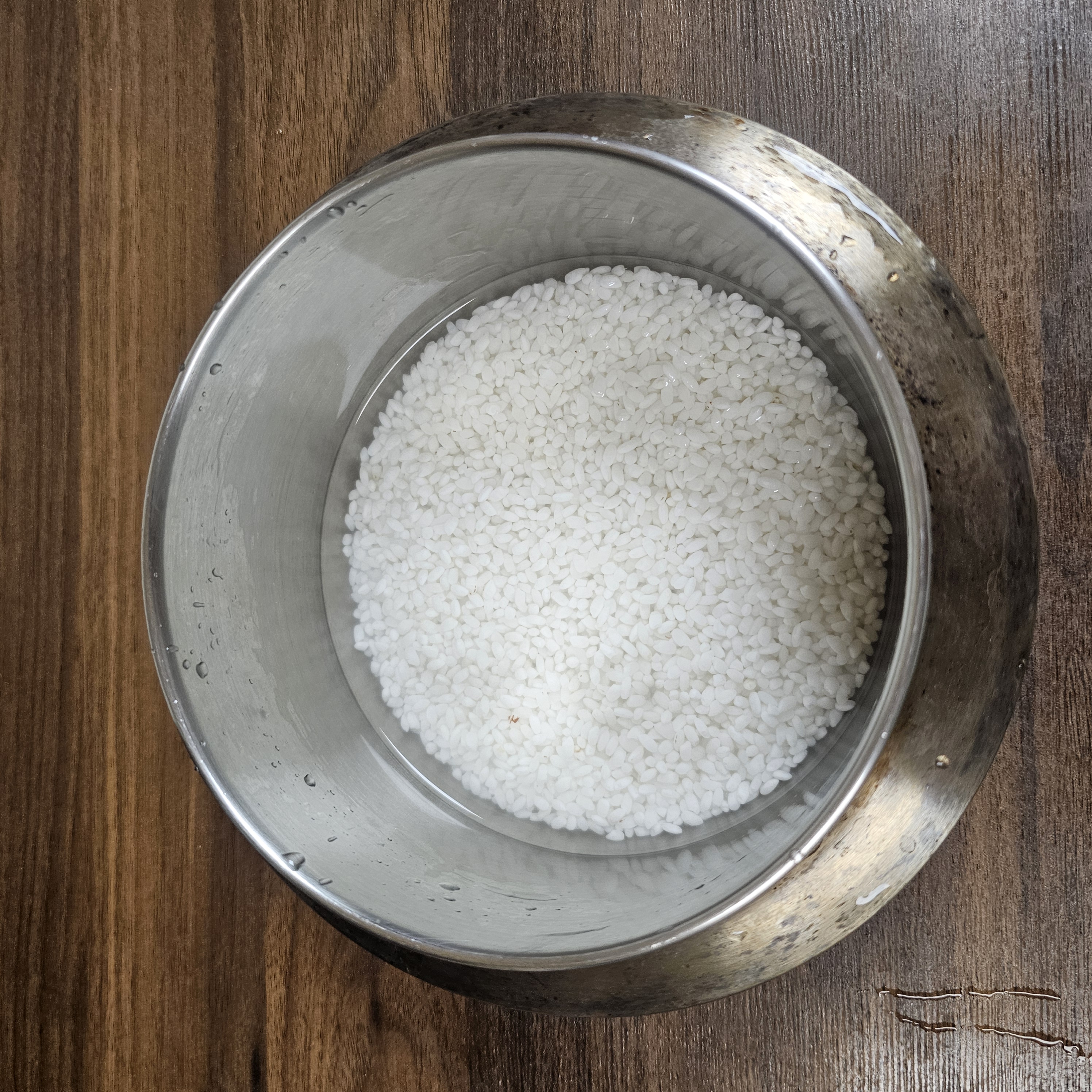 (불린 쌀이라 물 너무 많이 넣으면 밥이 질어져요~)
