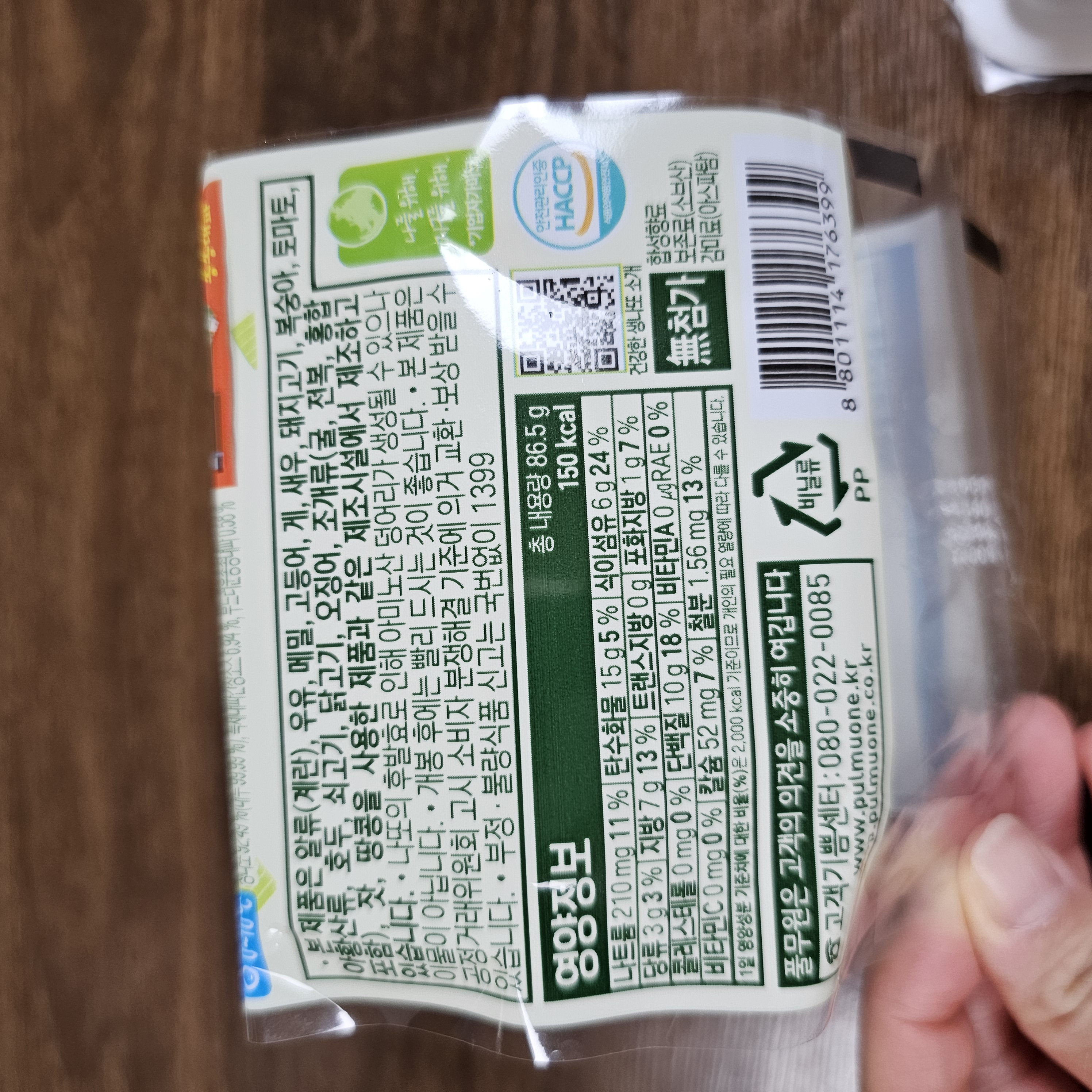 86.5g에 150kcal입니다,