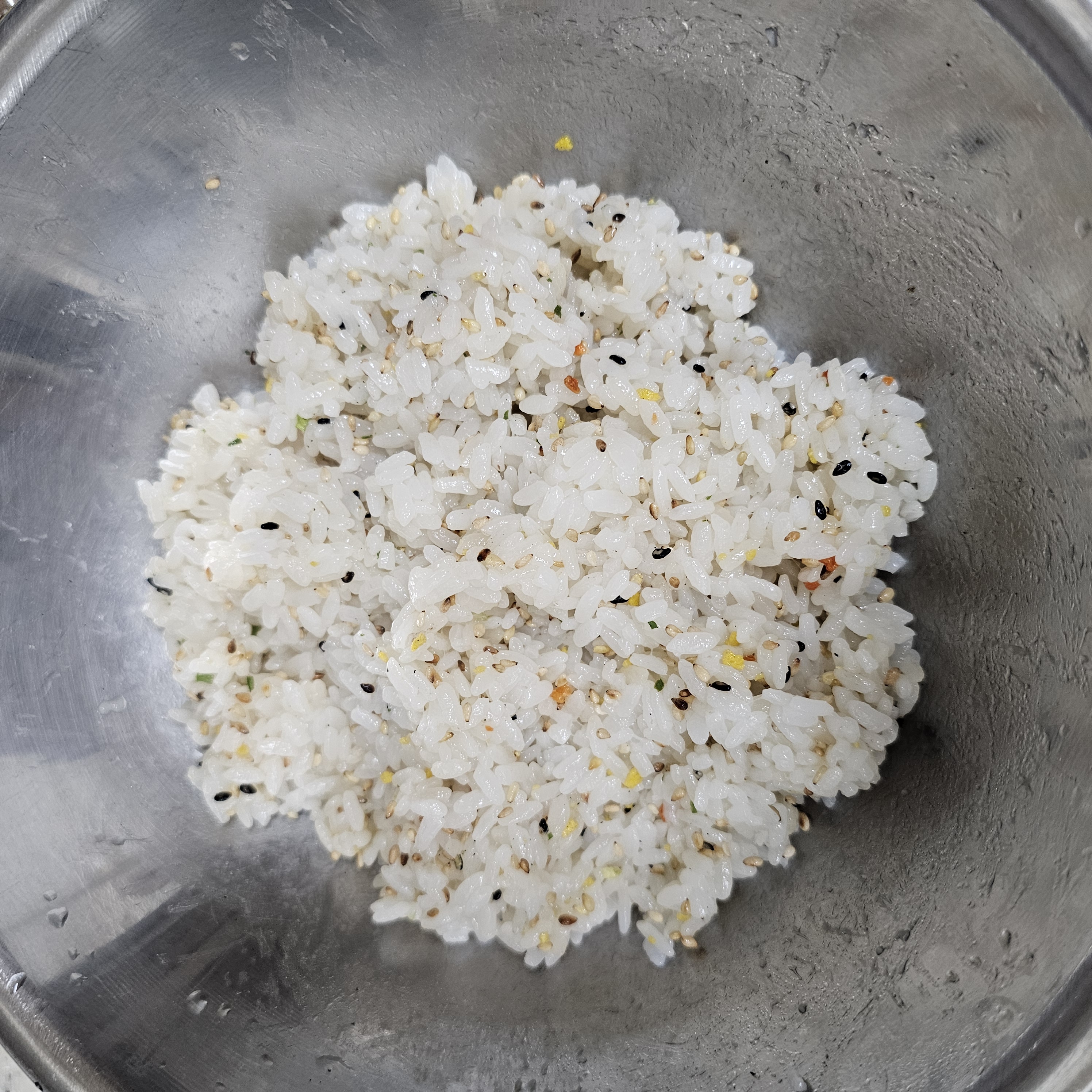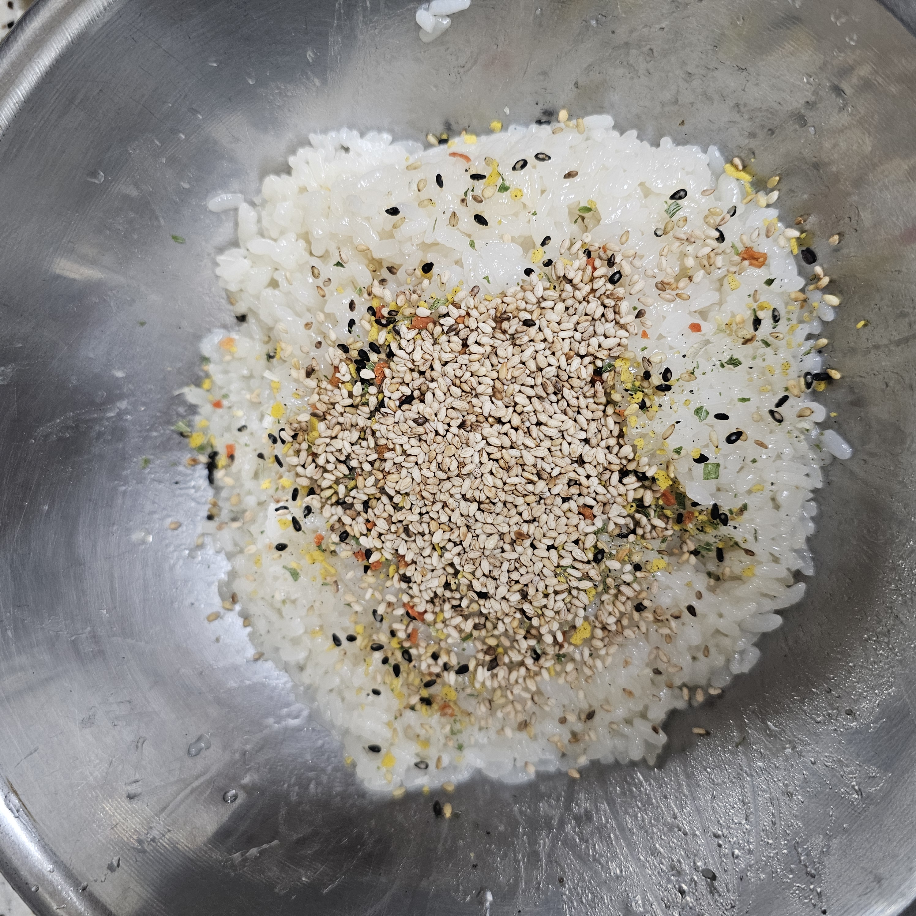 소스와 참기름을 넣은 후 밥을 섞어주고