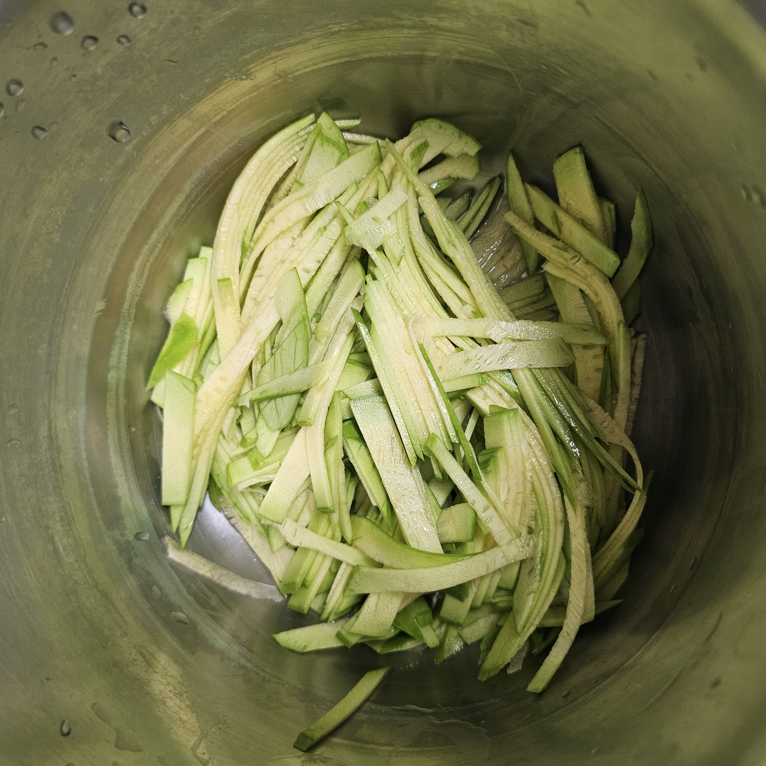 먼저 깨끗하게 세척한 애호박을 얇게 채썰어 주세요