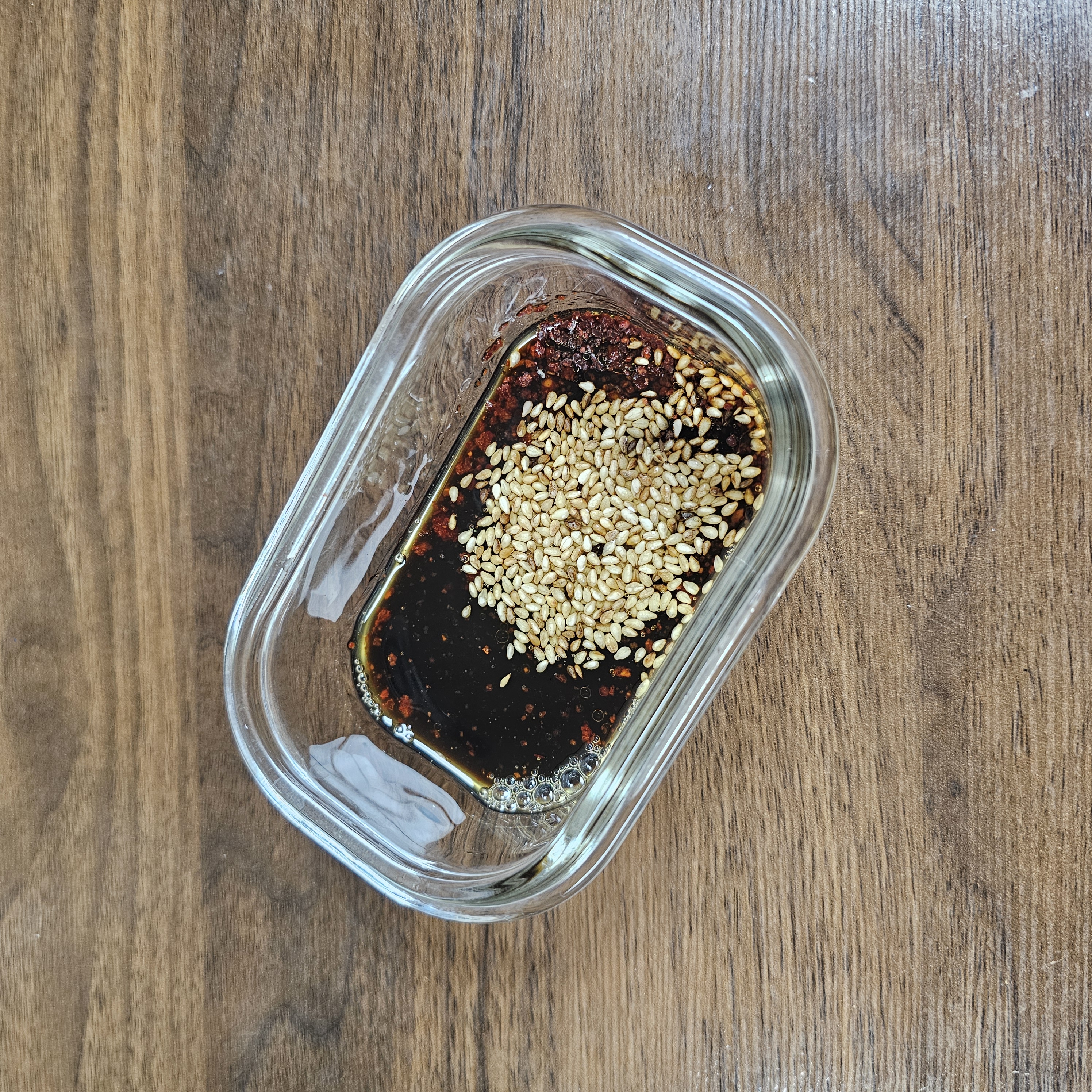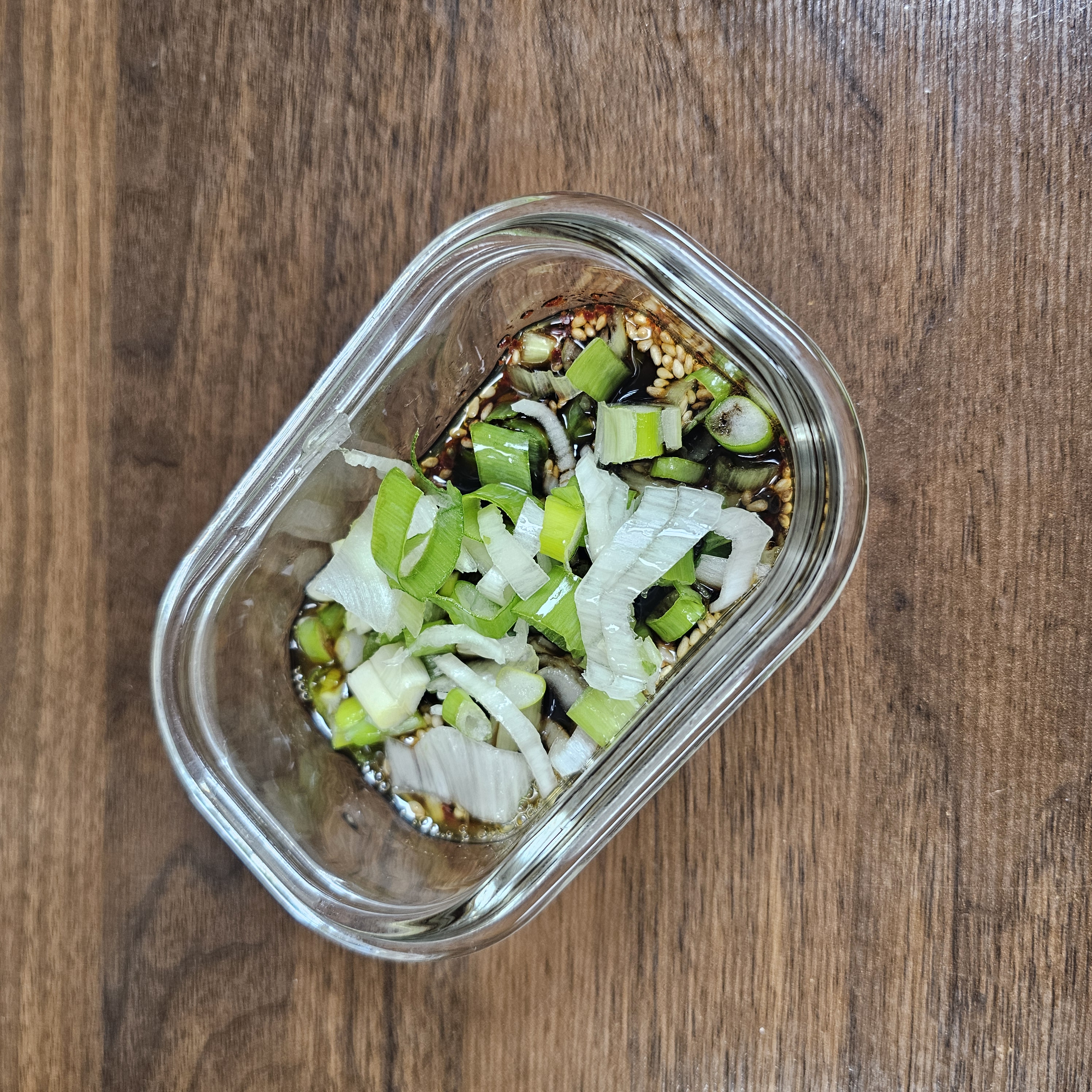 간장 2, 참기름 1, 고춧가루 조금, 깨 조금