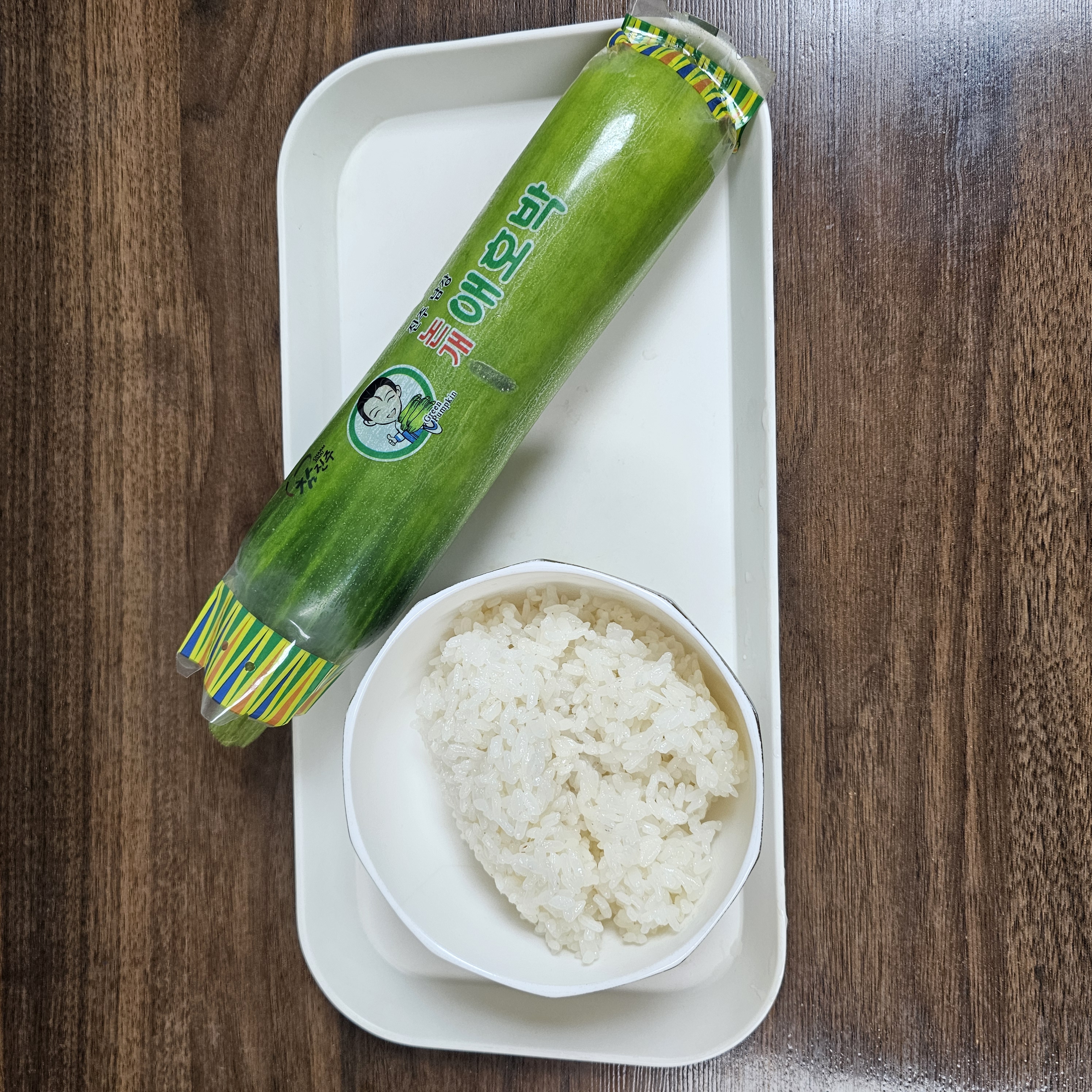 밥 1공기, 애호박 반 개, 물 조금