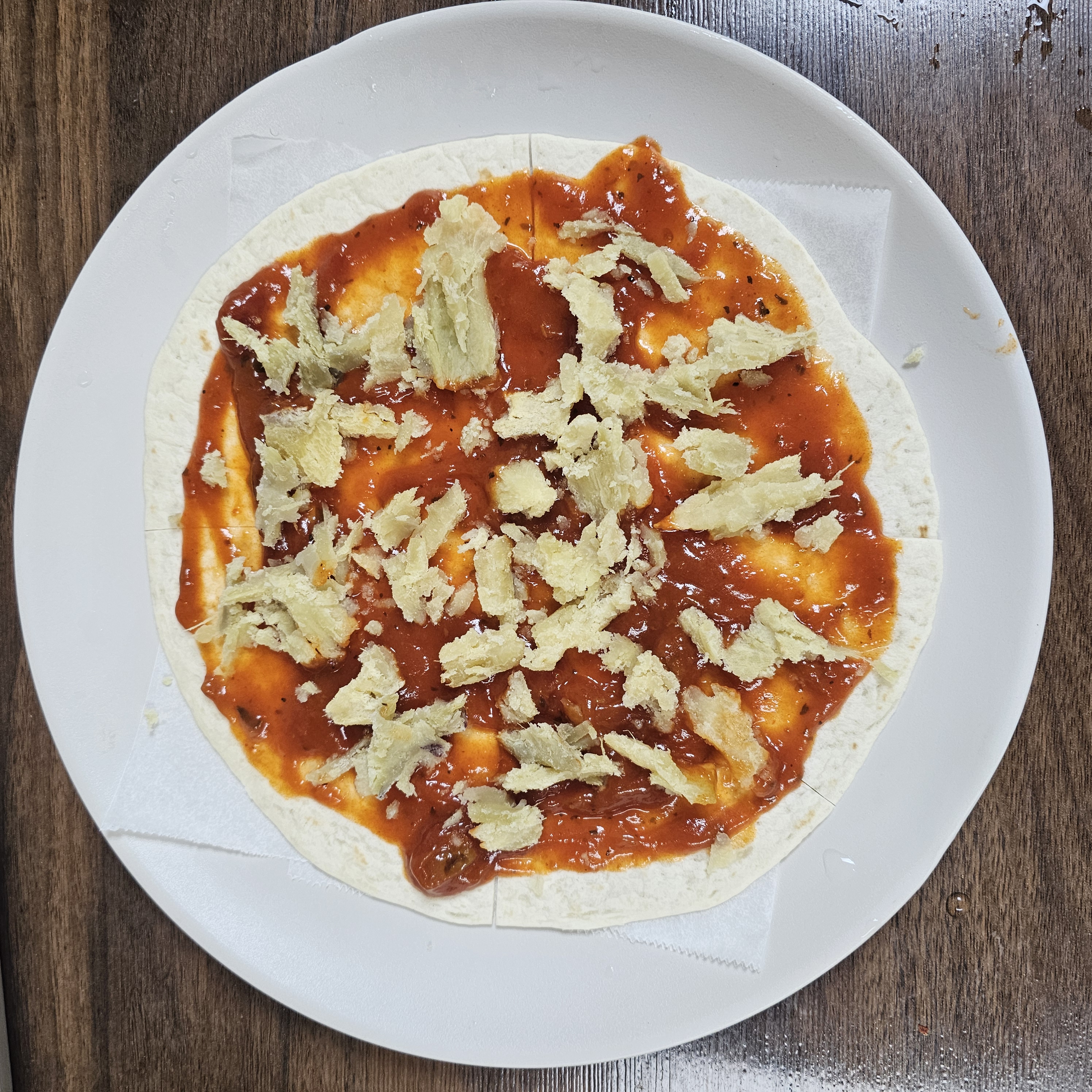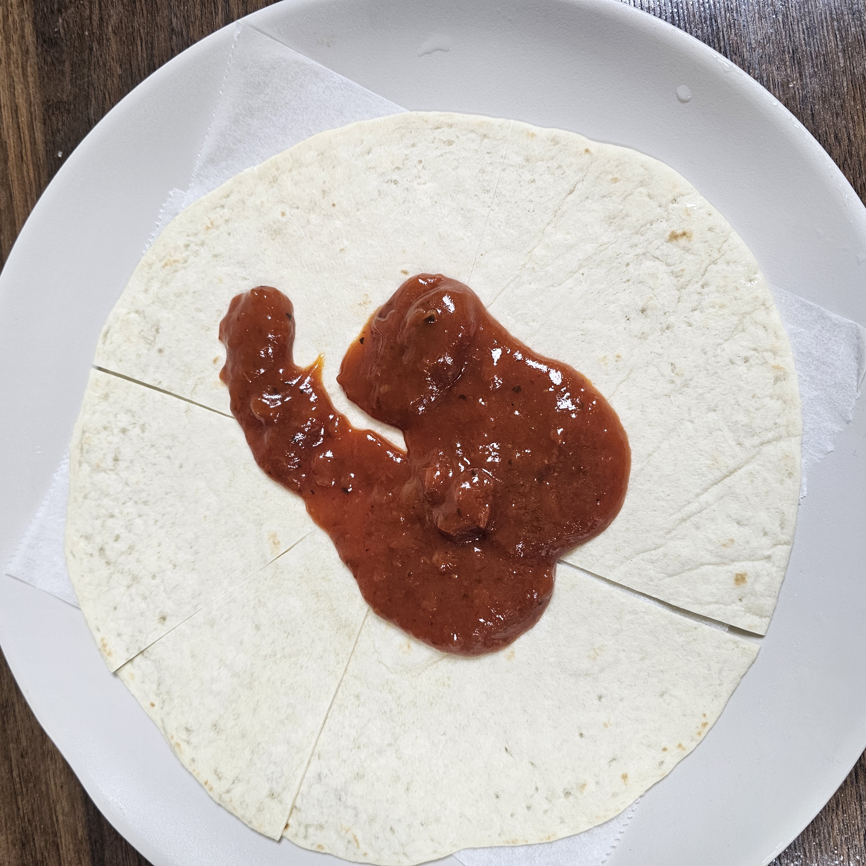 종이호일을 깔고 또띠아를 얹어줍니다.