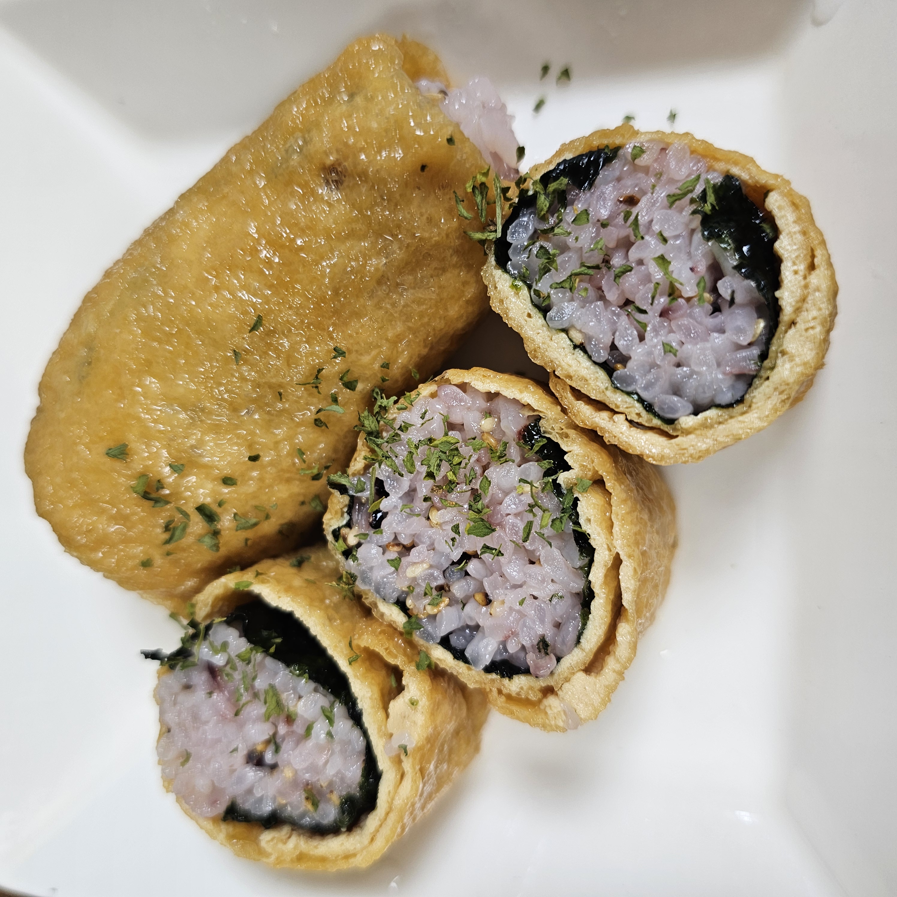 롤 유부가 적당히 부드럽고 처음 먹는 사람들도 부담 없이 먹기 좋아서