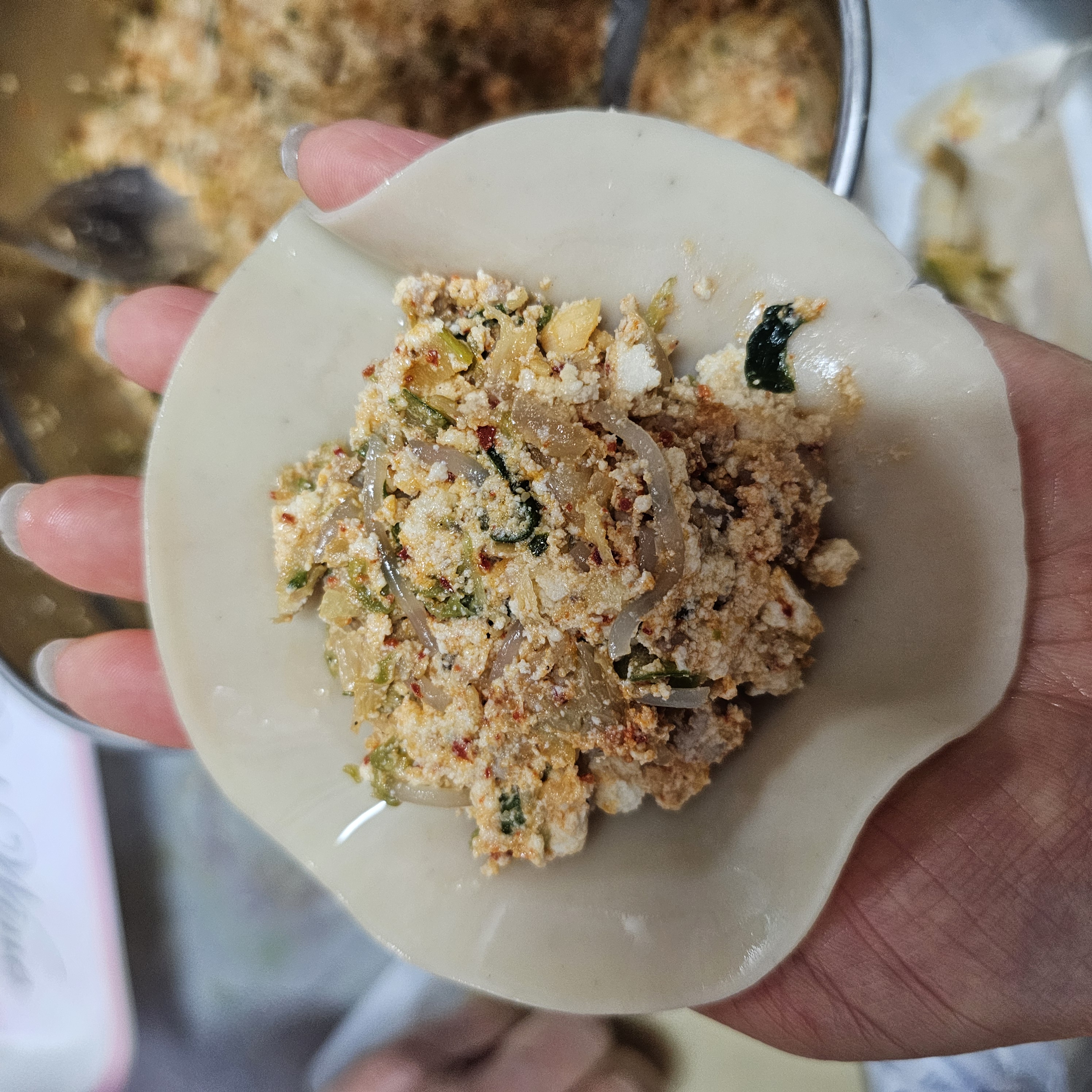 만두피 자체가 어느 정도 두께가 있어 만두소를 듬뿍 넣어도 찢어짐 걱정이 적었어요.