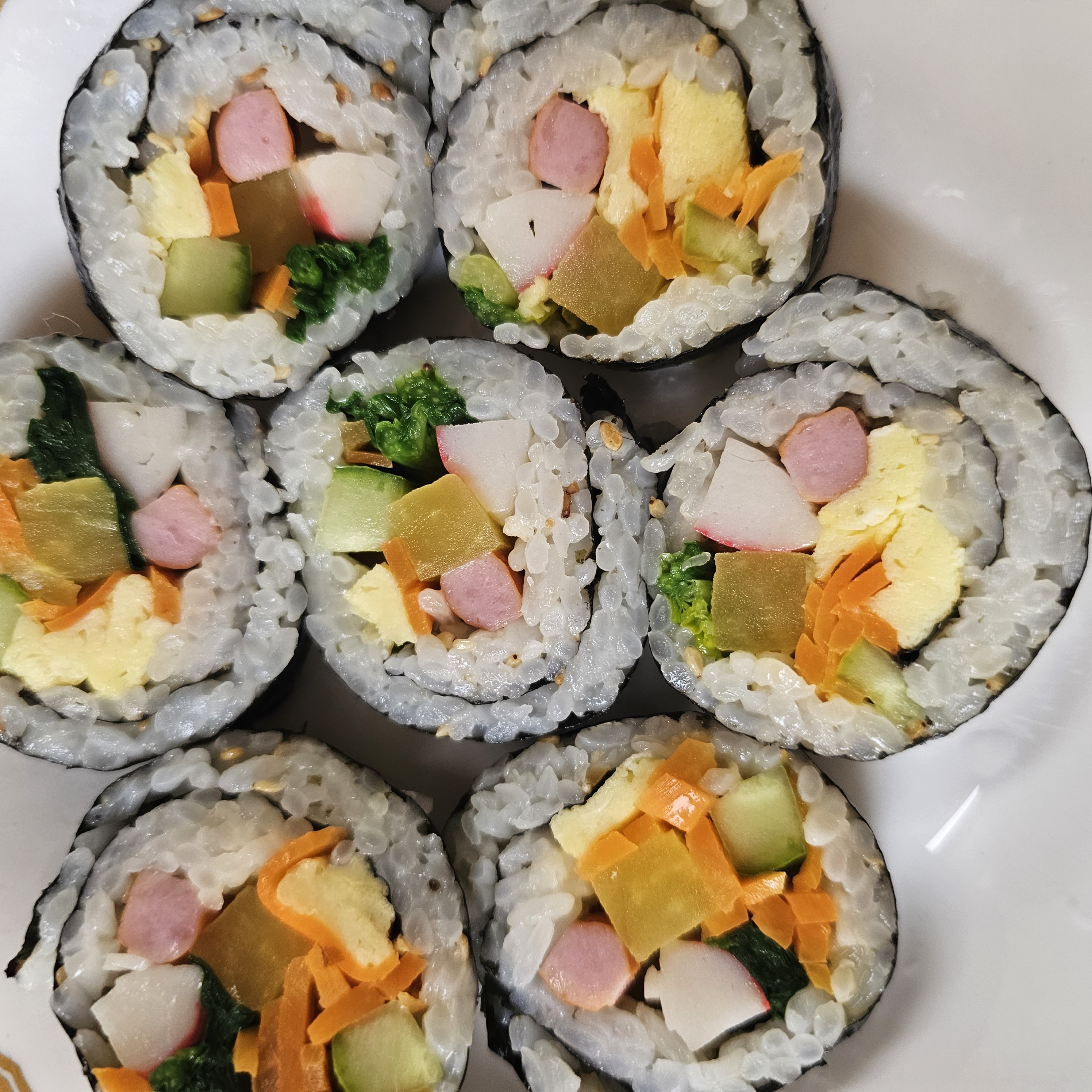 역시 김밥에는 맛살이 들어가야 정말 맛있는 거 같아요!!