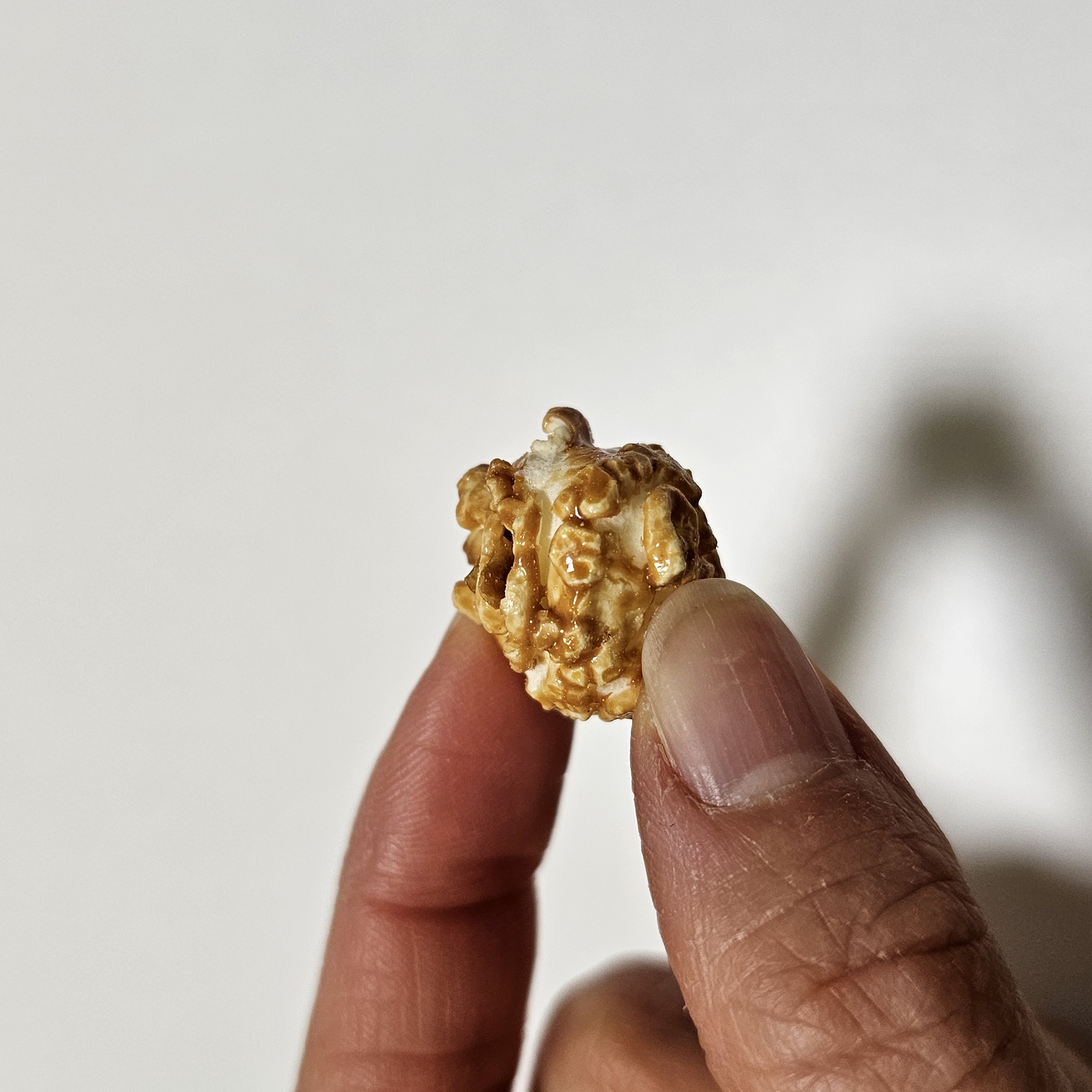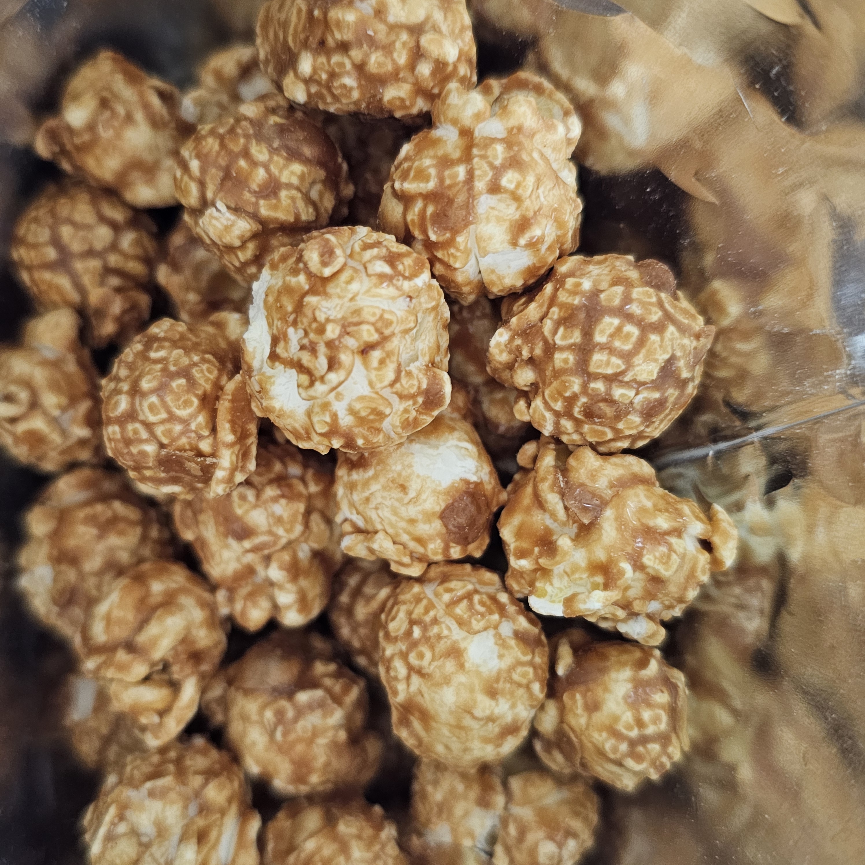 팝콘 표면에 카라멜 시럽이 듬뿍 묻어 있어요~