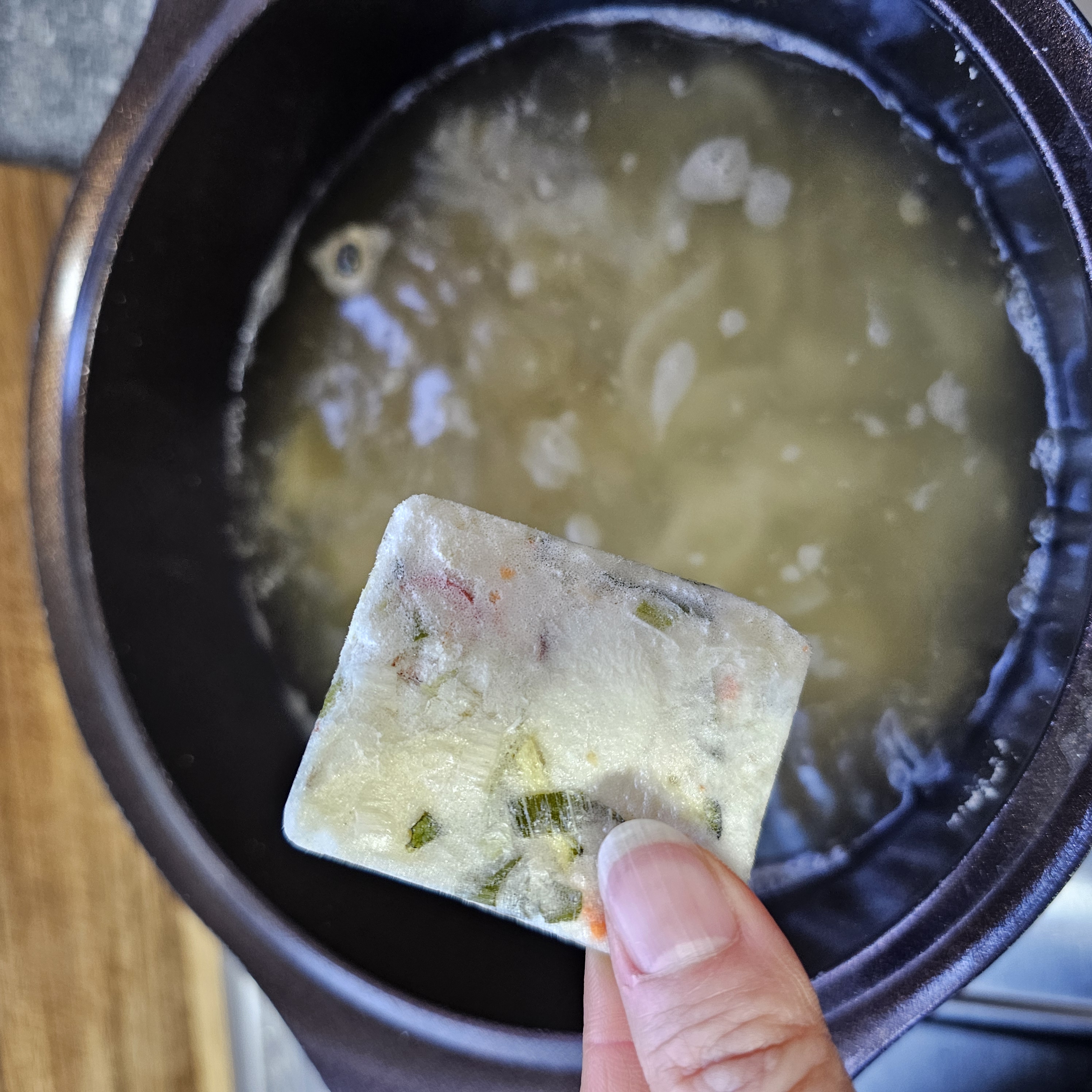 수제비, 분말스프, 감자수제비 건더기 블럭이 담겨 있어요